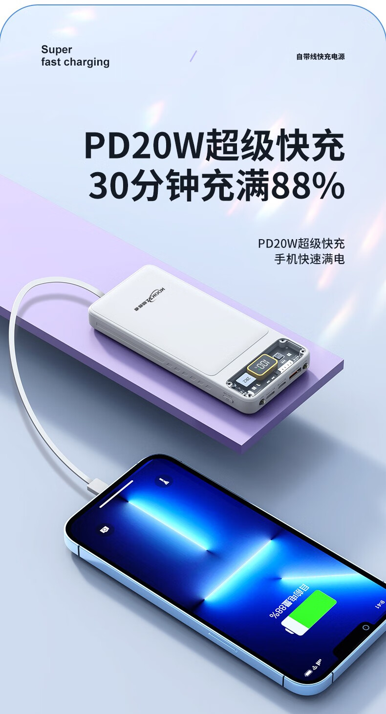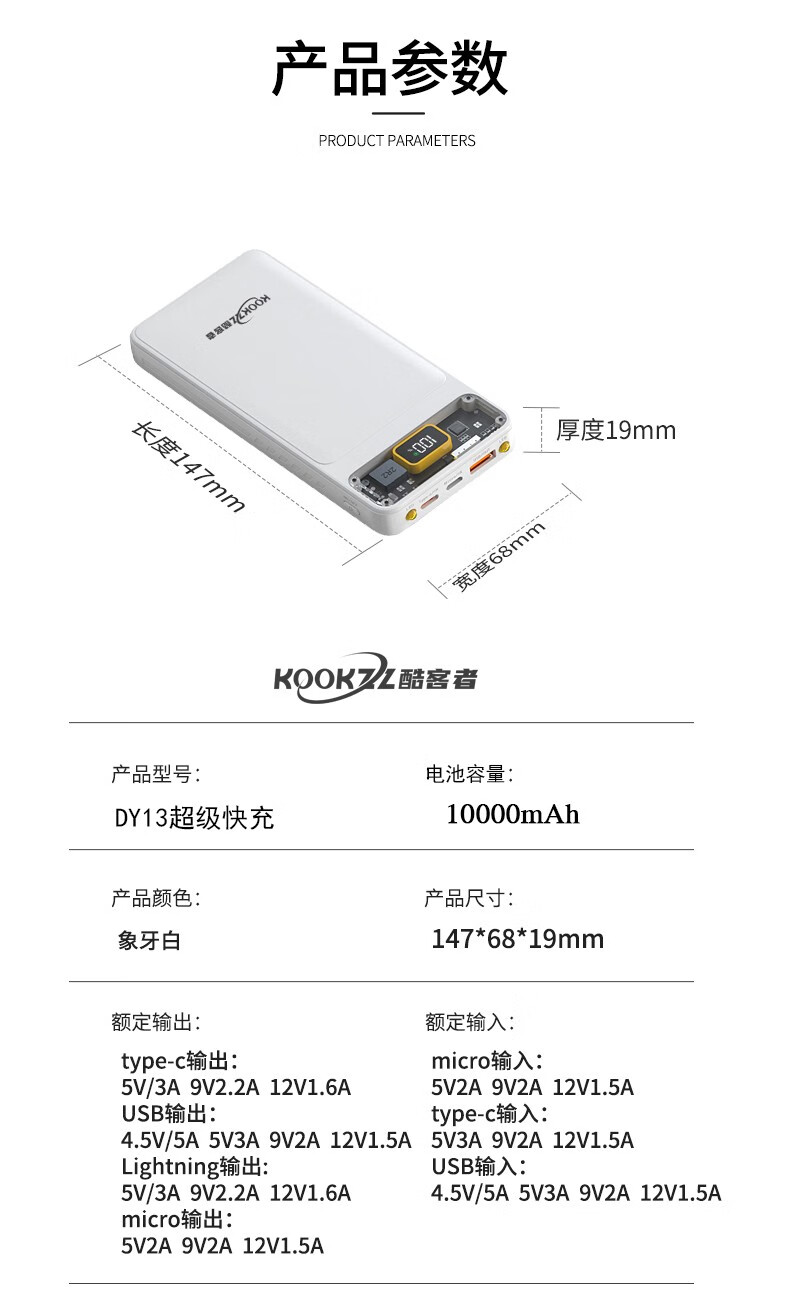 【分仓直发包邮】KOOKZZ酷客者透明超级快充移动电源(可上飞机)DY13