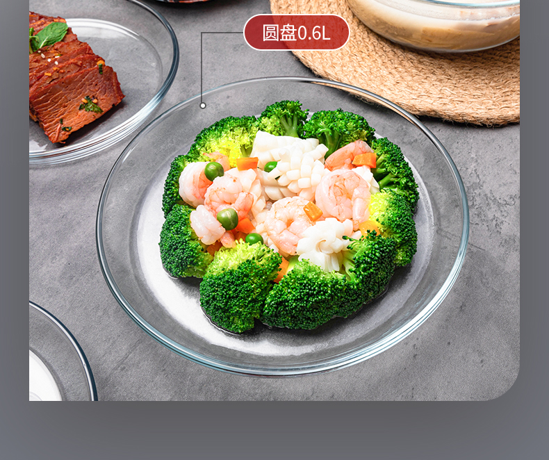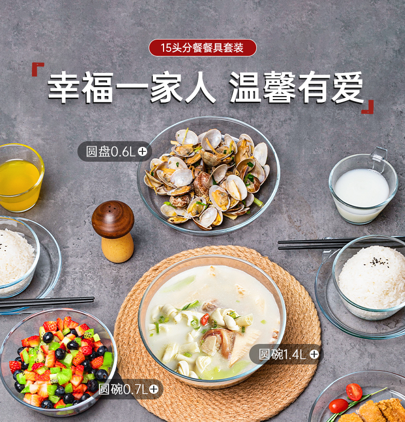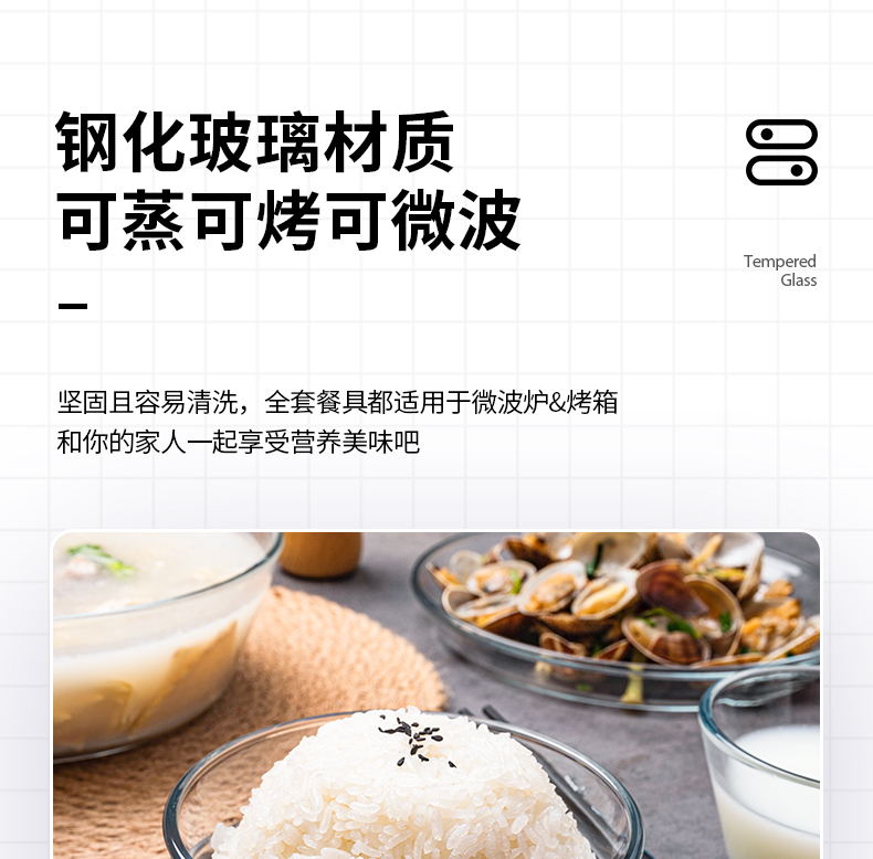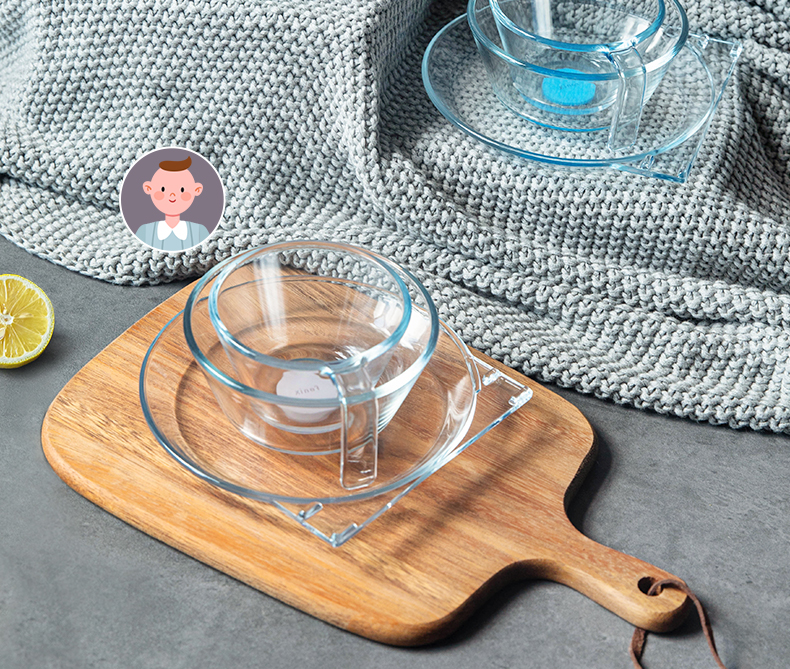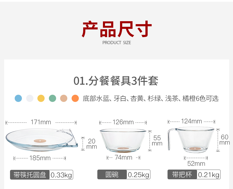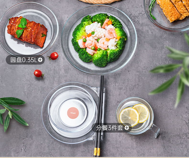 【笑麻麻荟&菲内克斯】钢化玻璃家用耐热分餐制三件套餐碟盘玻璃碗量杯碟子A