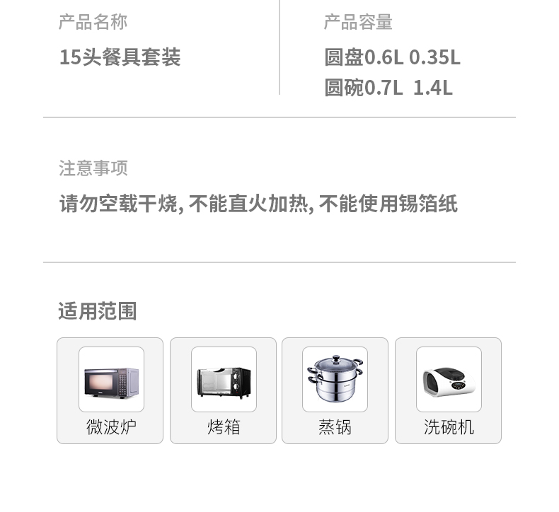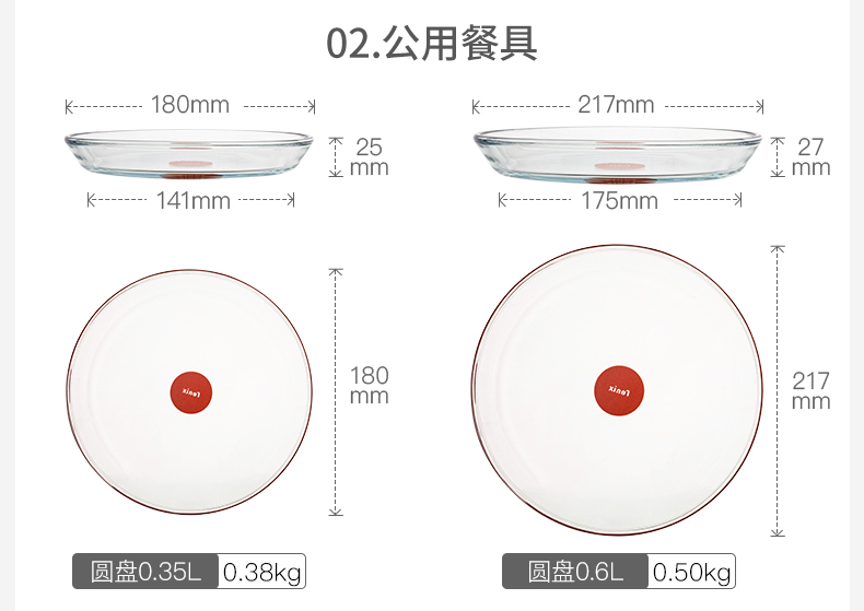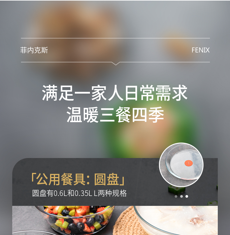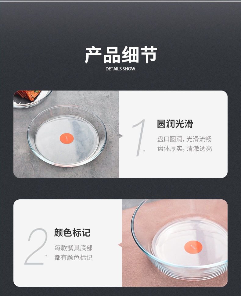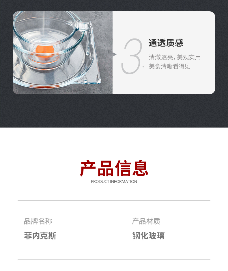 【笑麻麻荟&菲内克斯】钢化玻璃家用耐热分餐制三件套餐碟盘玻璃碗量杯碟子A