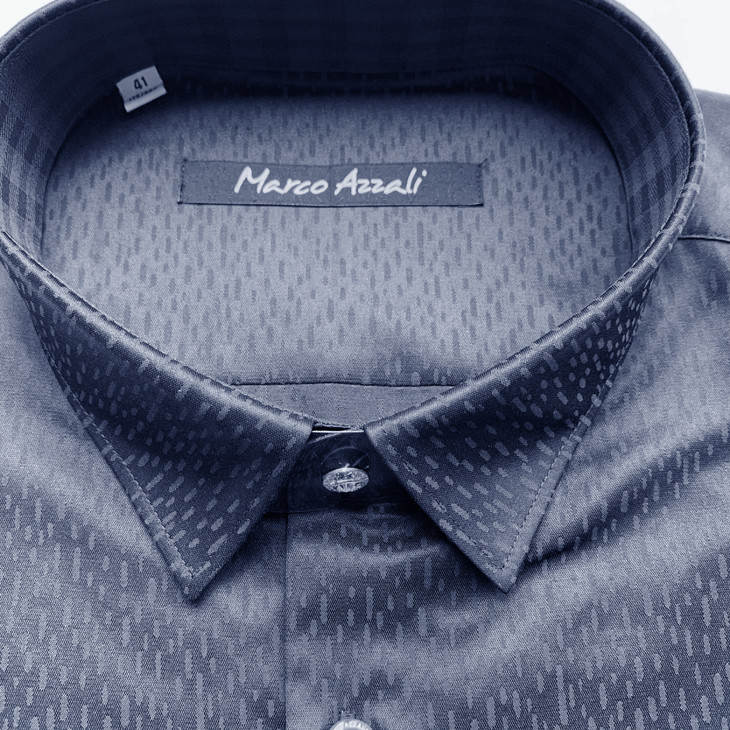 Marco Azzali 藏青暗提花长袖衬衫 C3813100