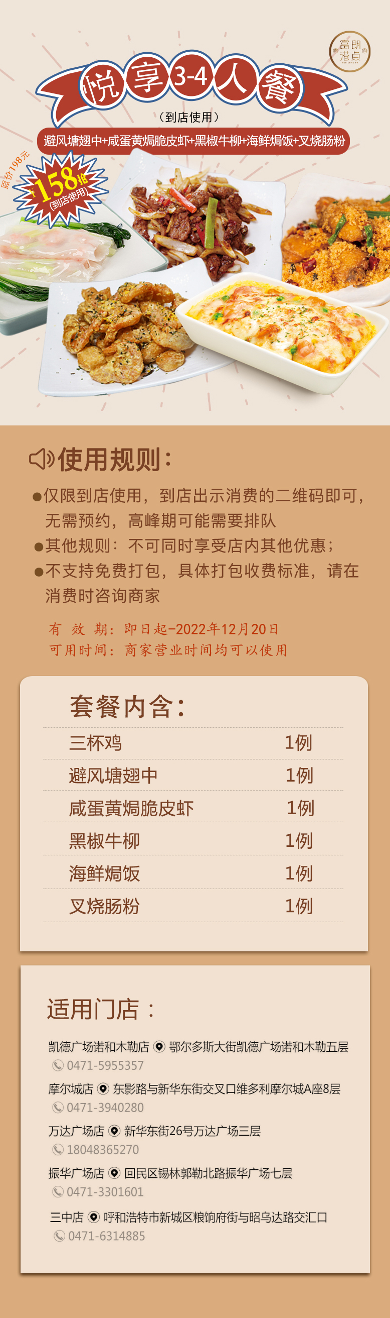 富朗港点乐享3-4人餐(到店使用)