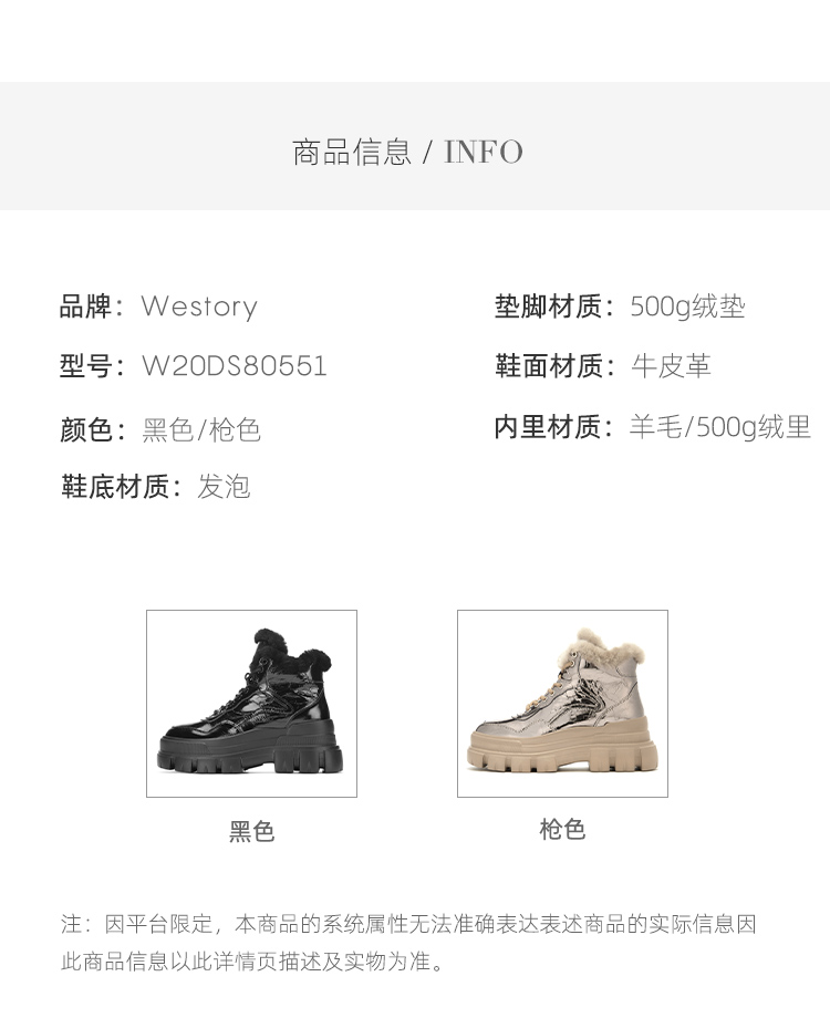 westory马丁靴女英伦风冬加绒2020年新款百搭潮内增高W20DS80551