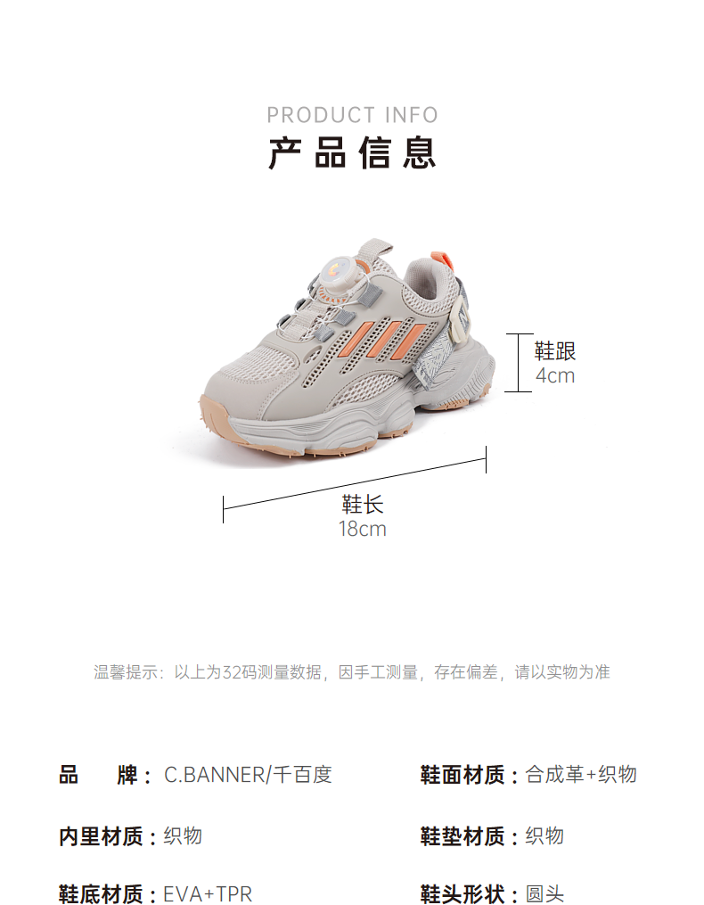千百度童鞋厚底老爹鞋男女童网面洋气增高透气运动鞋A25150908