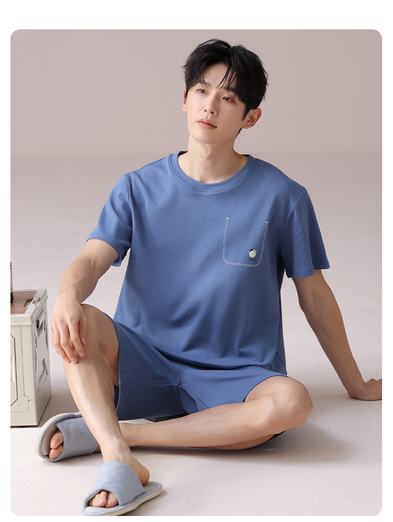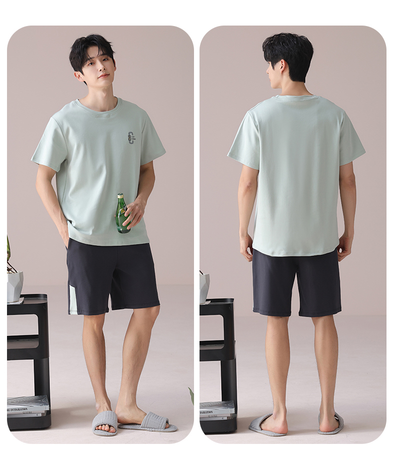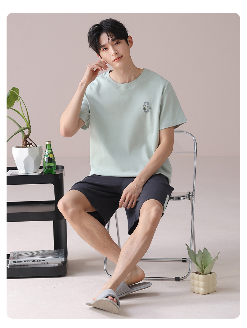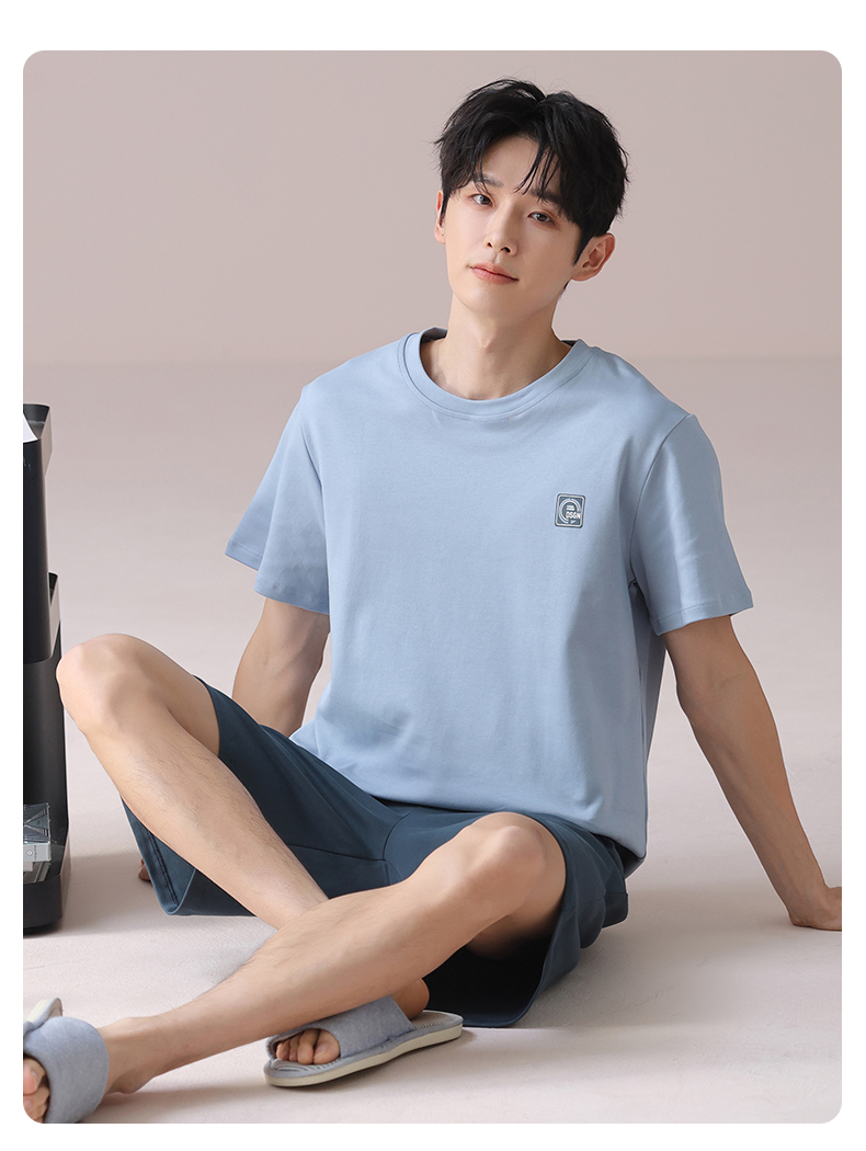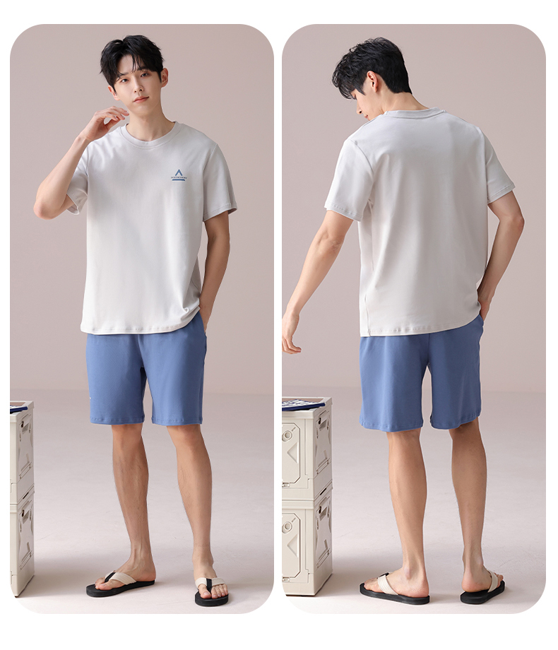 I'd爱帝男士短袖套装夏季纯棉简约拼色家居套装