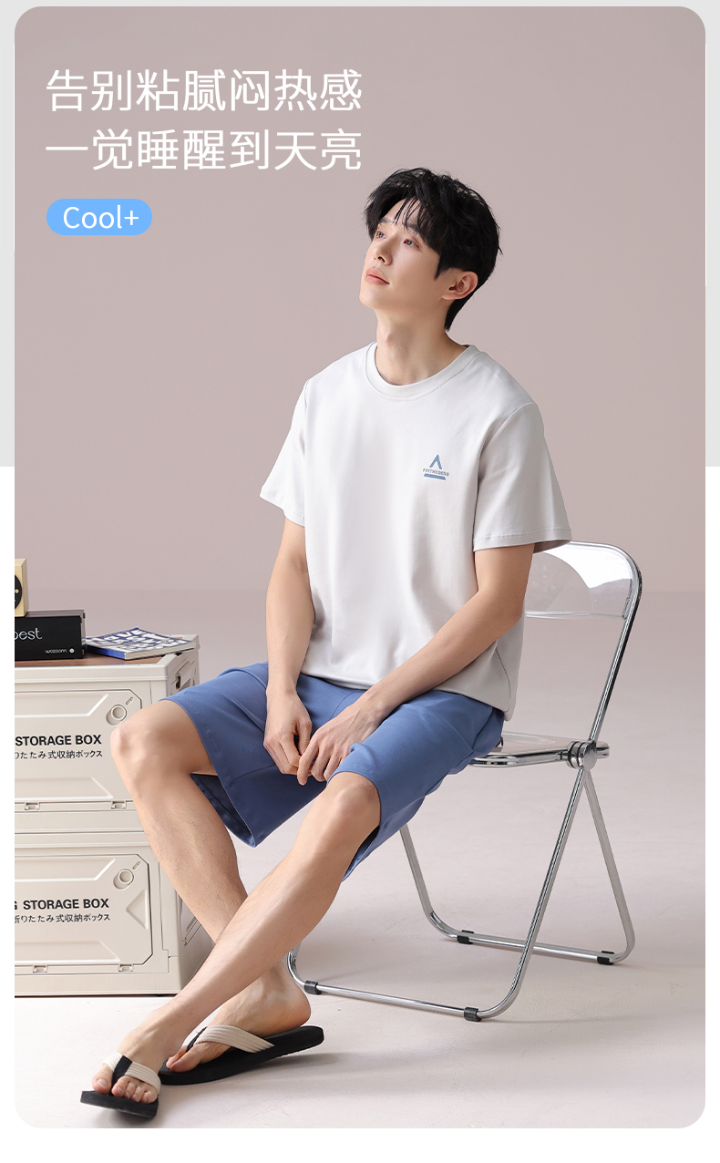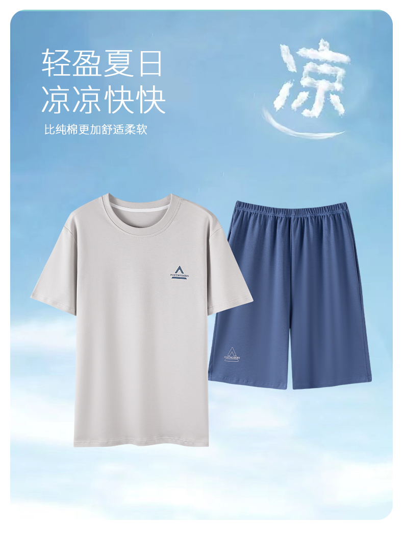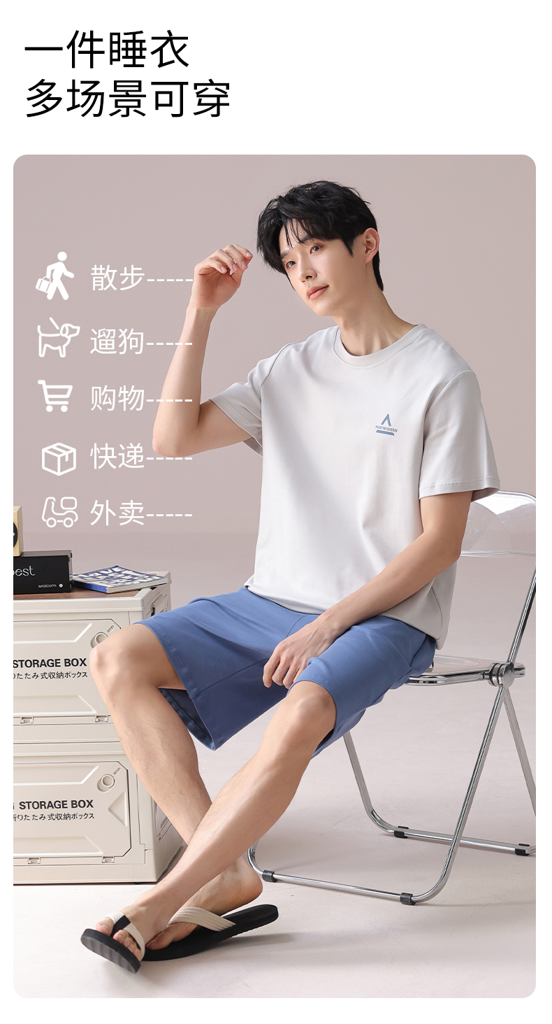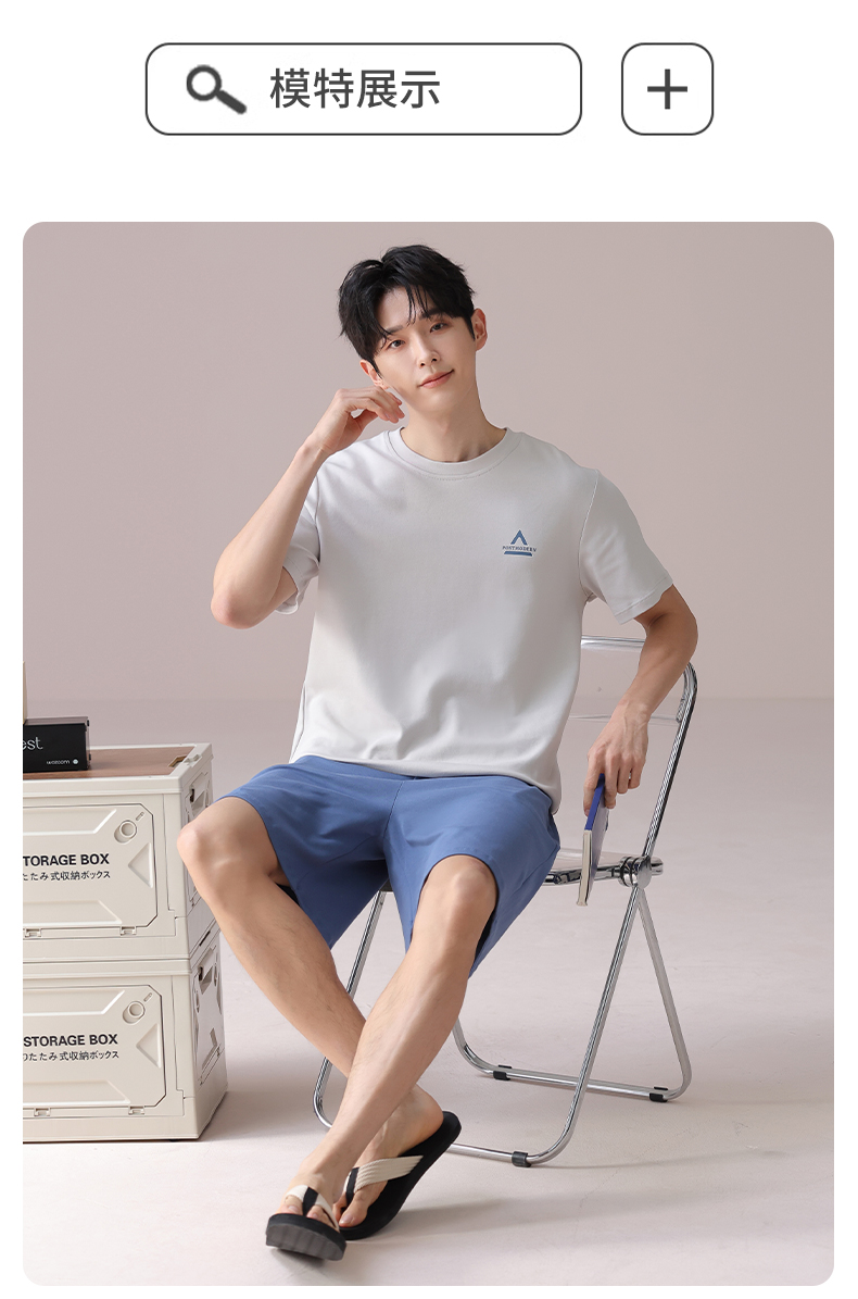 I'd爱帝男士短袖套装夏季纯棉简约拼色家居套装