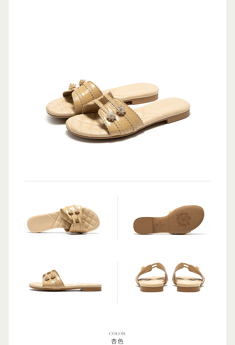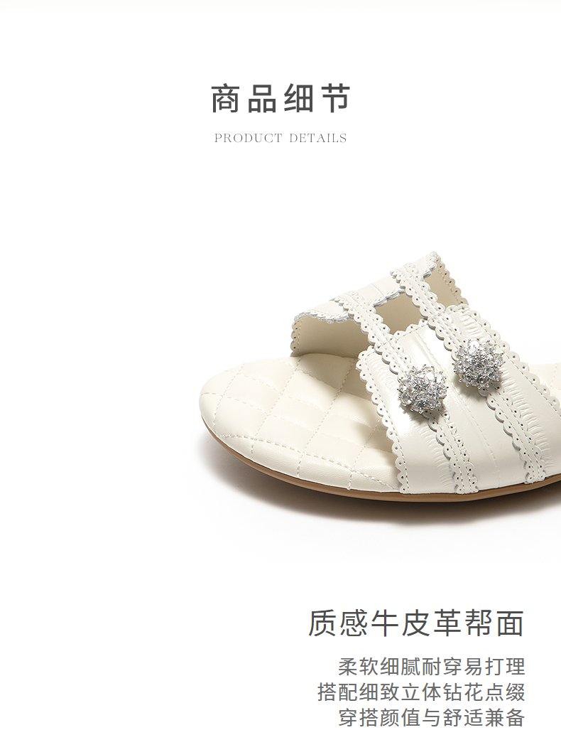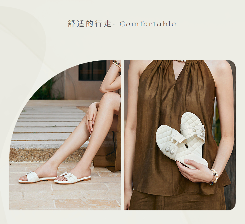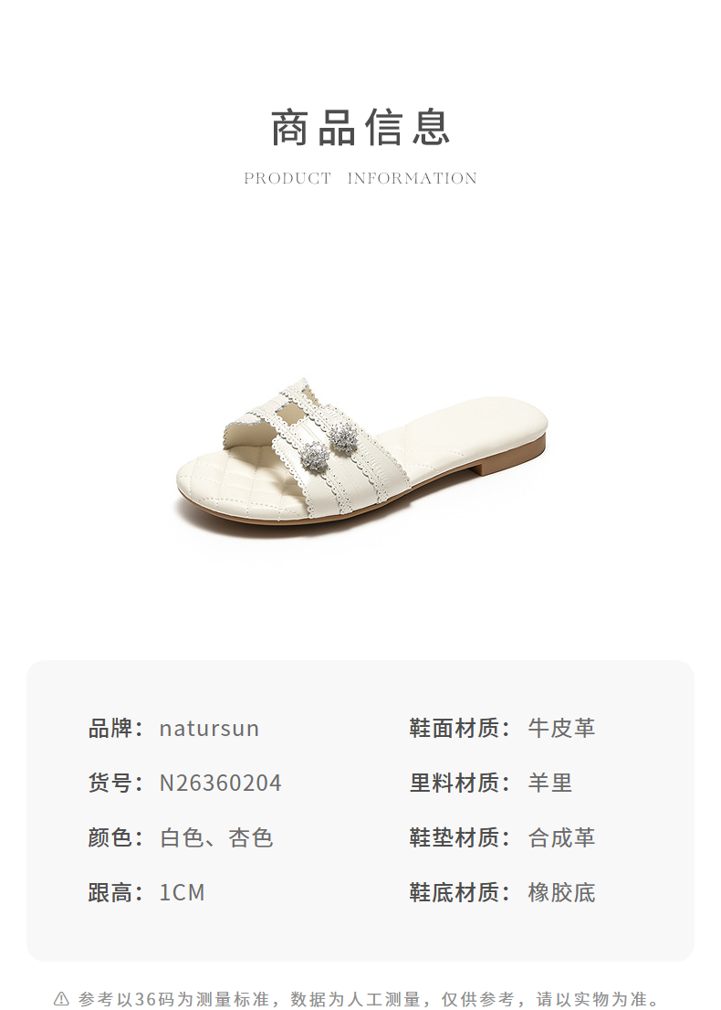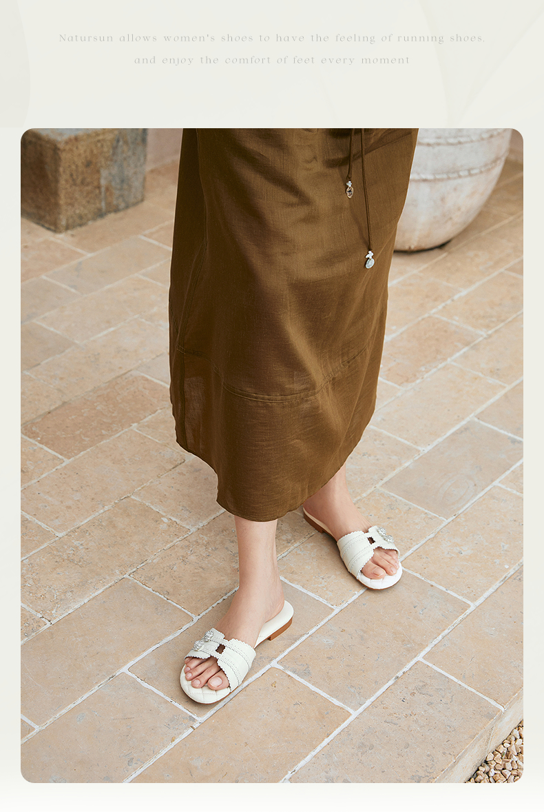 【上新】natursun精致舒适牛皮革面一字拖夏季2026新款女士休闲小香风拖鞋N26360204