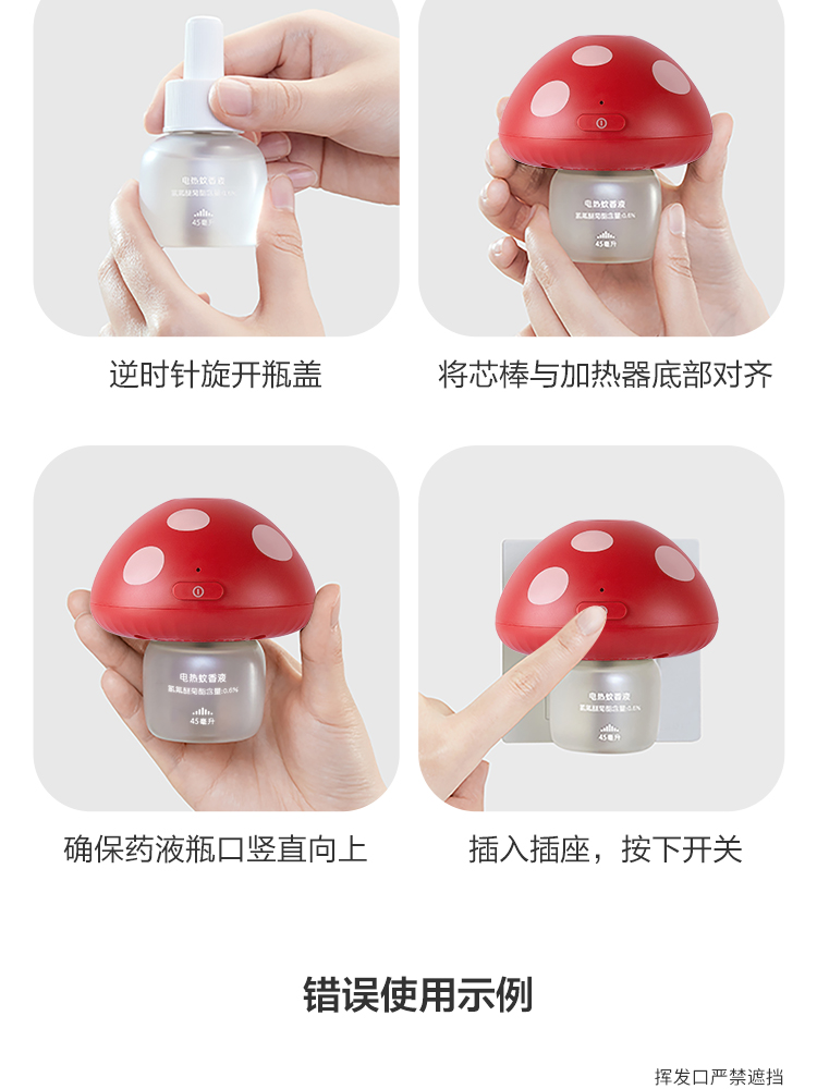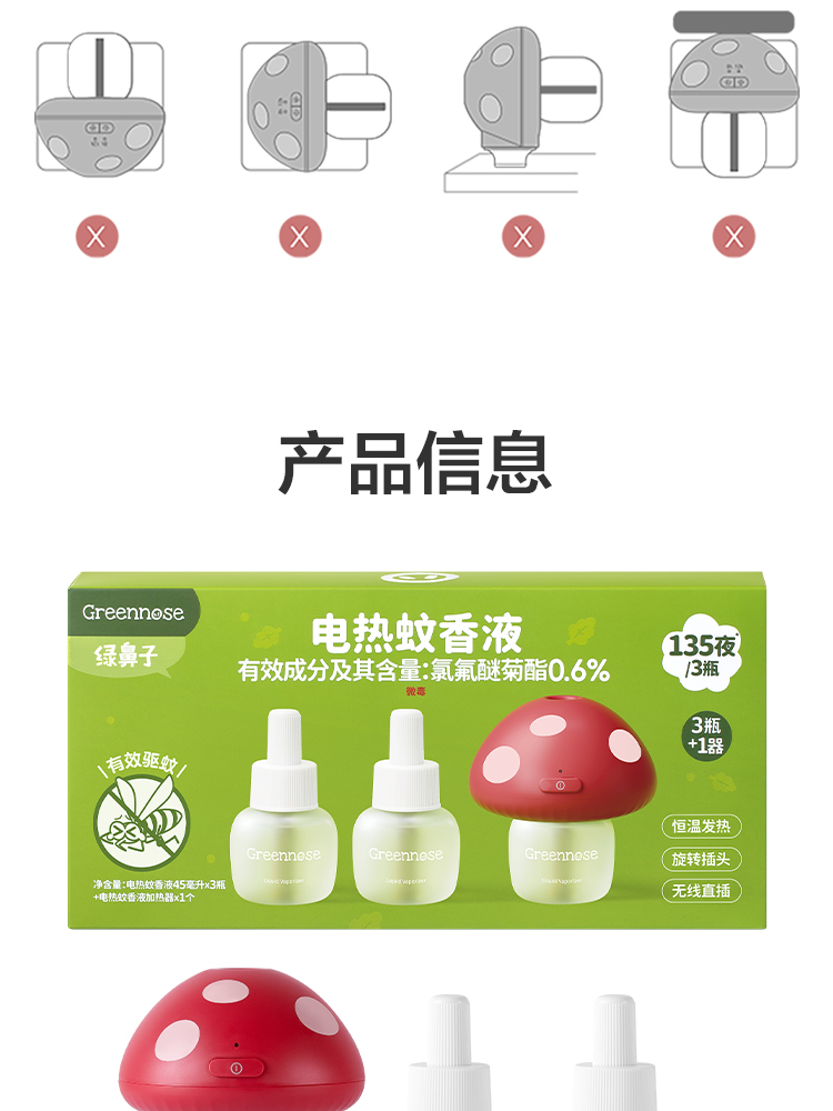 Greennose绿鼻子 蘑菇驱蚊器 电热蚊香液室内夏季补充驱蚊液儿童用品