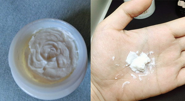 小小一罐25g,白色乳霜质地,不仔细闻也可以算作无味。膏体软糯丝滑,延展性很好,取少量也能涂满整手,滋润而不油腻,比起厚重油腻的凡士林,更轻薄水润,喜欢!工作室的姑娘直接把它当护手霜来用,冻疮感觉有好一点,不那么痒了。睡前也可以在手上和脚后跟抹上一层,戴上手套穿上袜子睡,确实滋润!