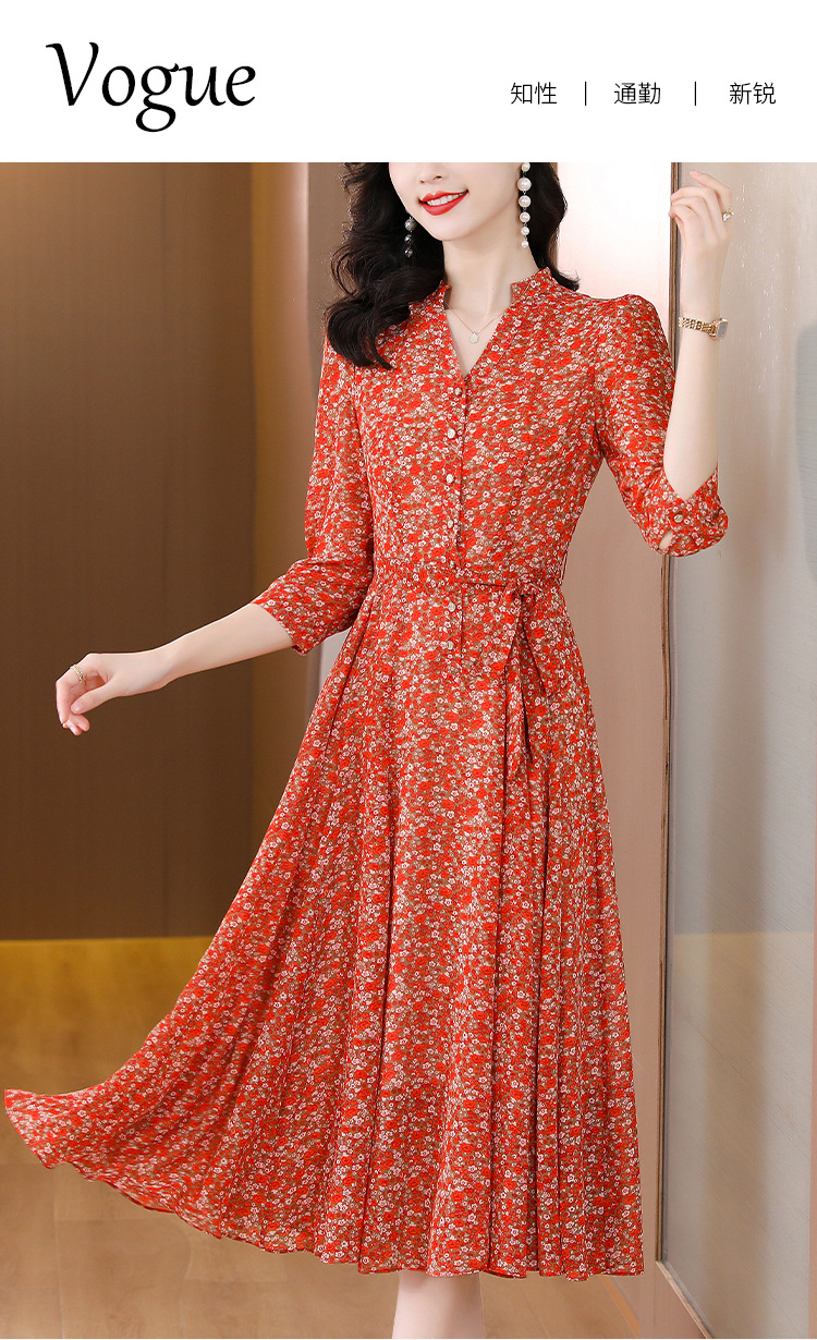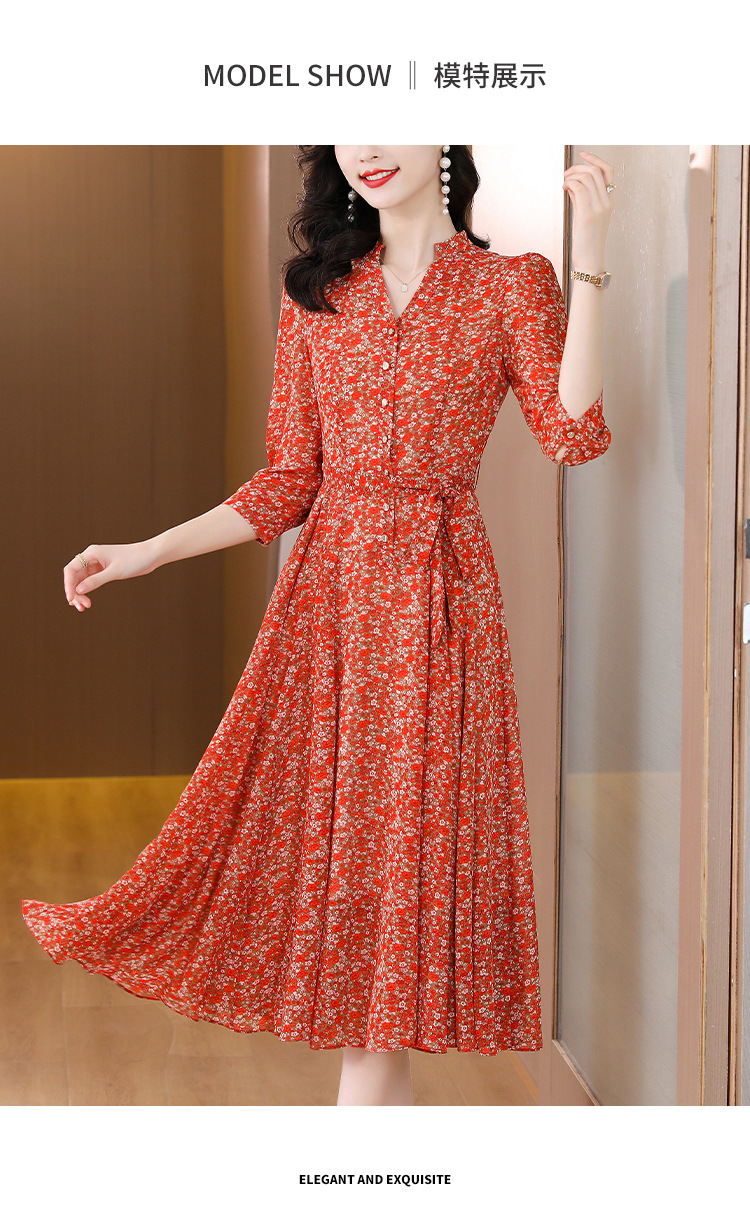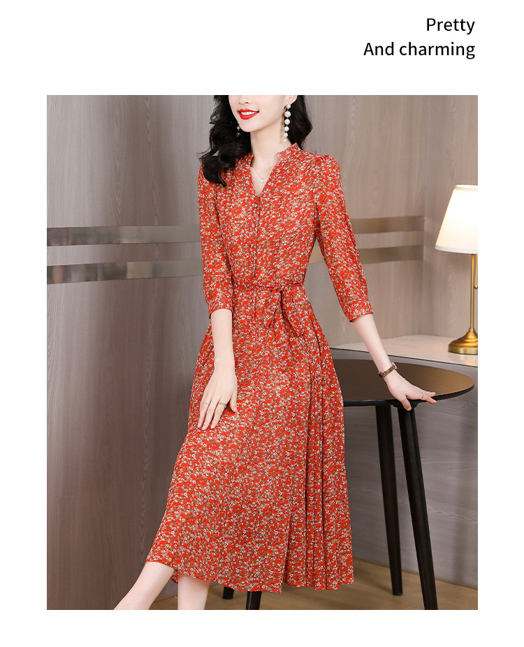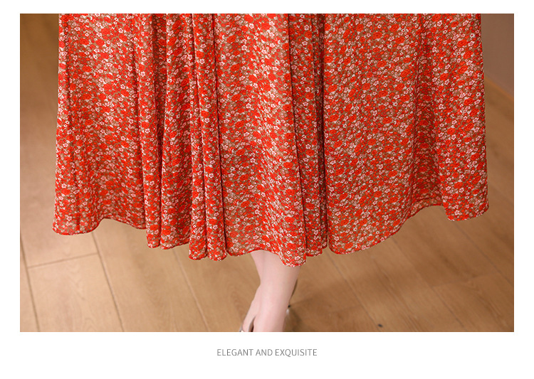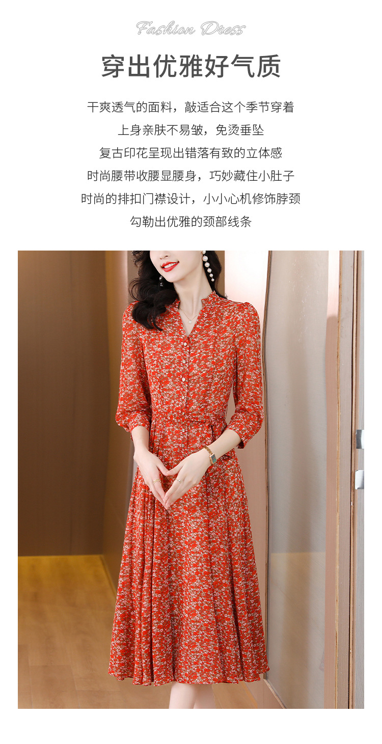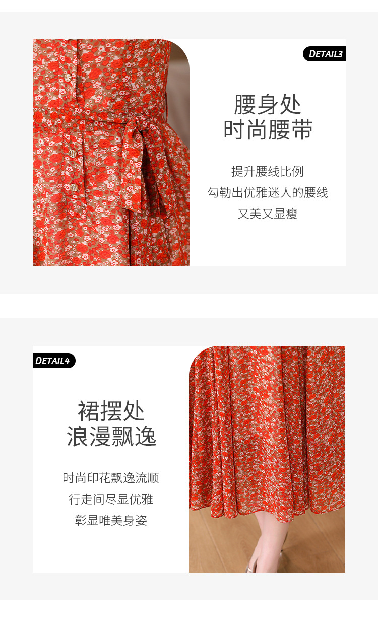碎花雪纺连衣裙减龄系带收腰显瘦长裙AHM-ydjr8262