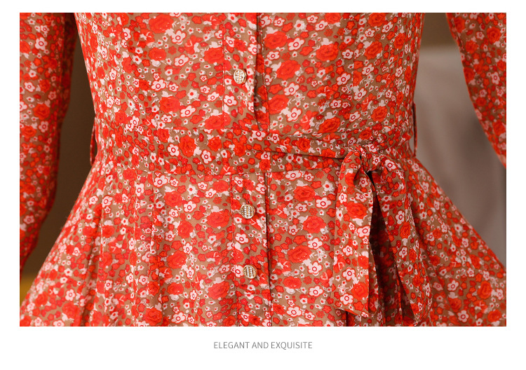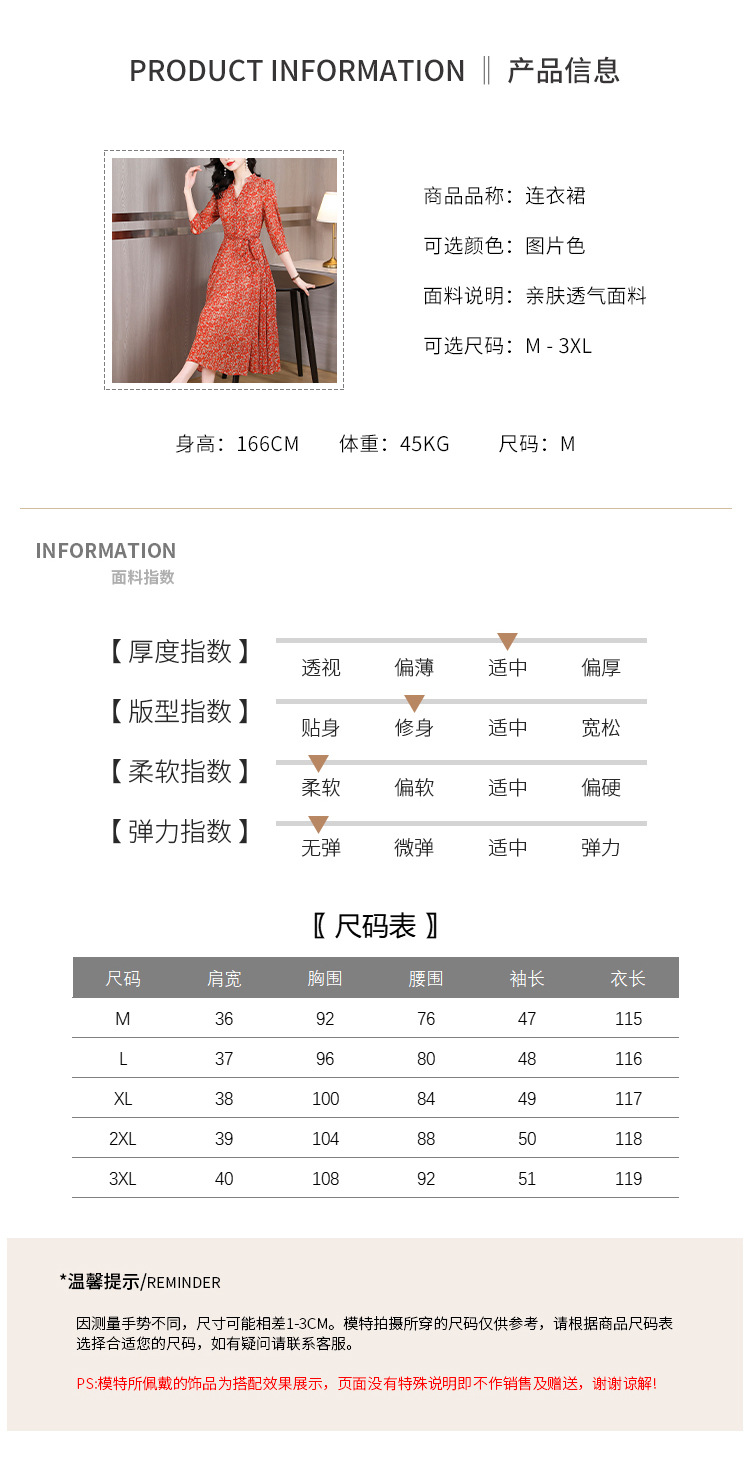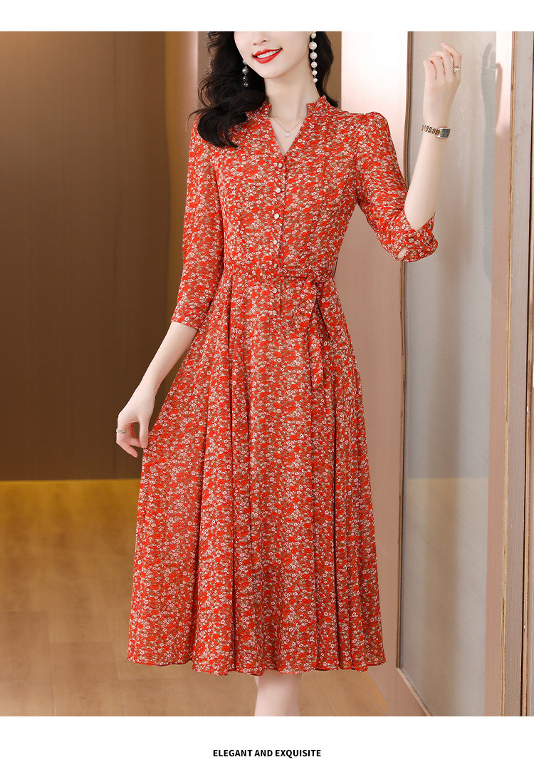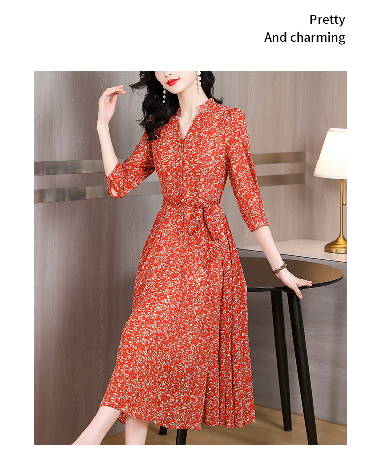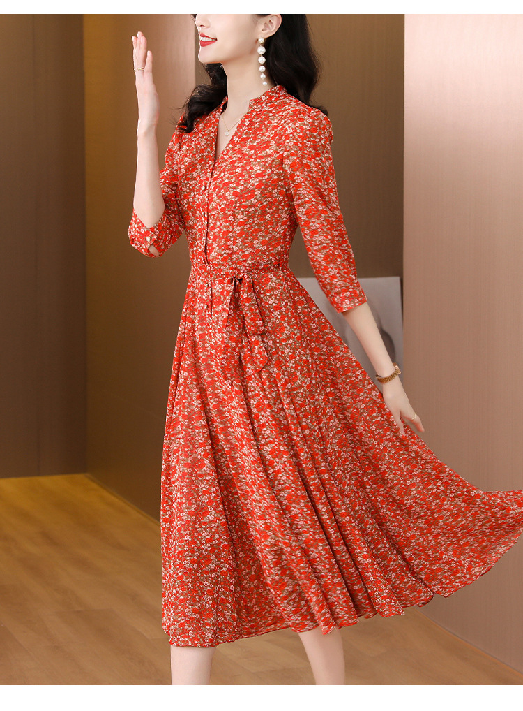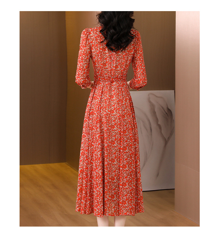 碎花雪纺连衣裙减龄系带收腰显瘦长裙AHM-ydjr8262