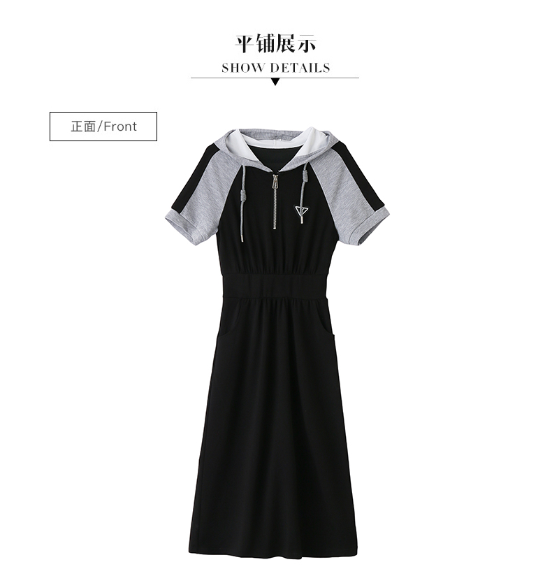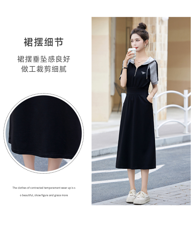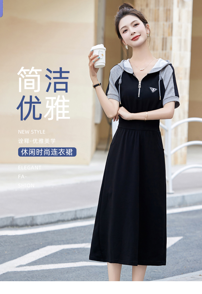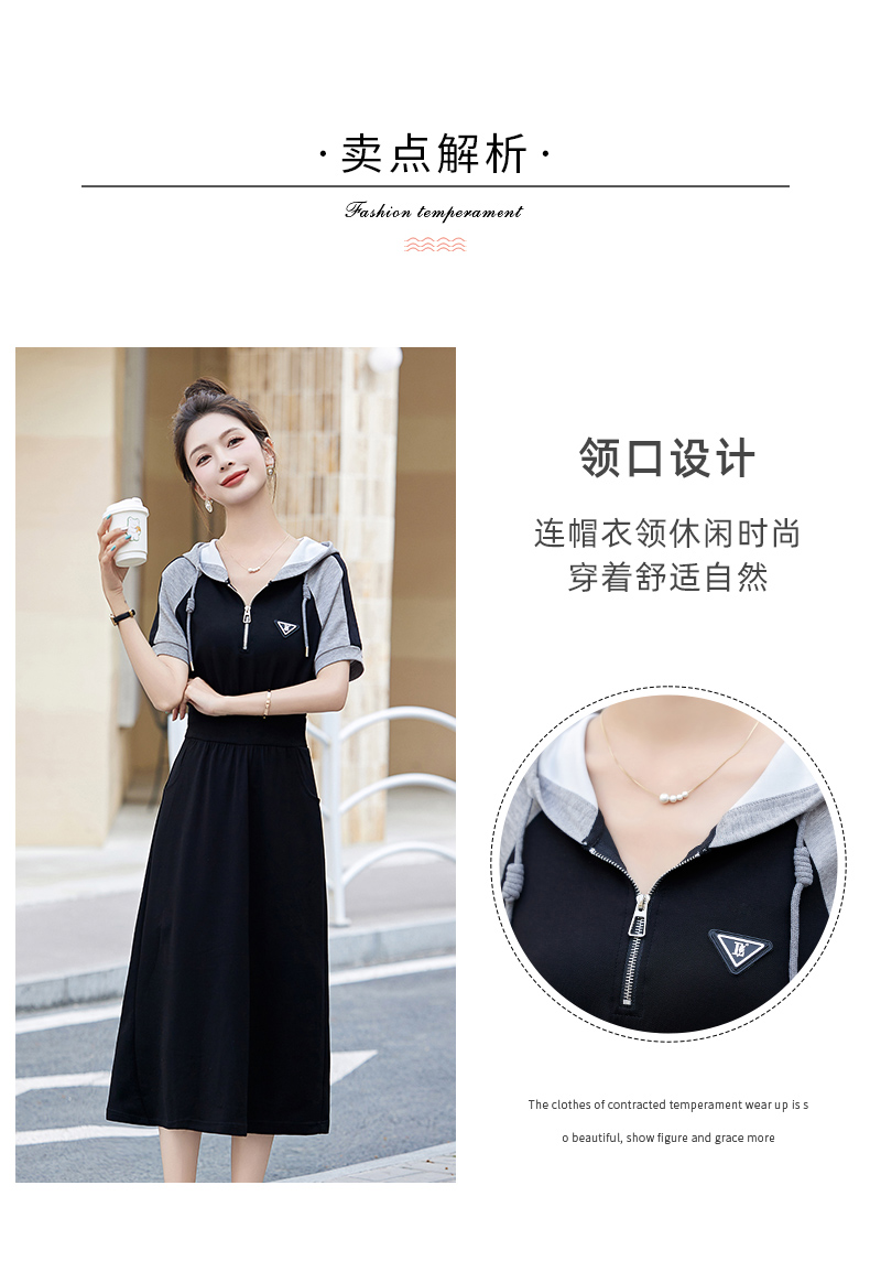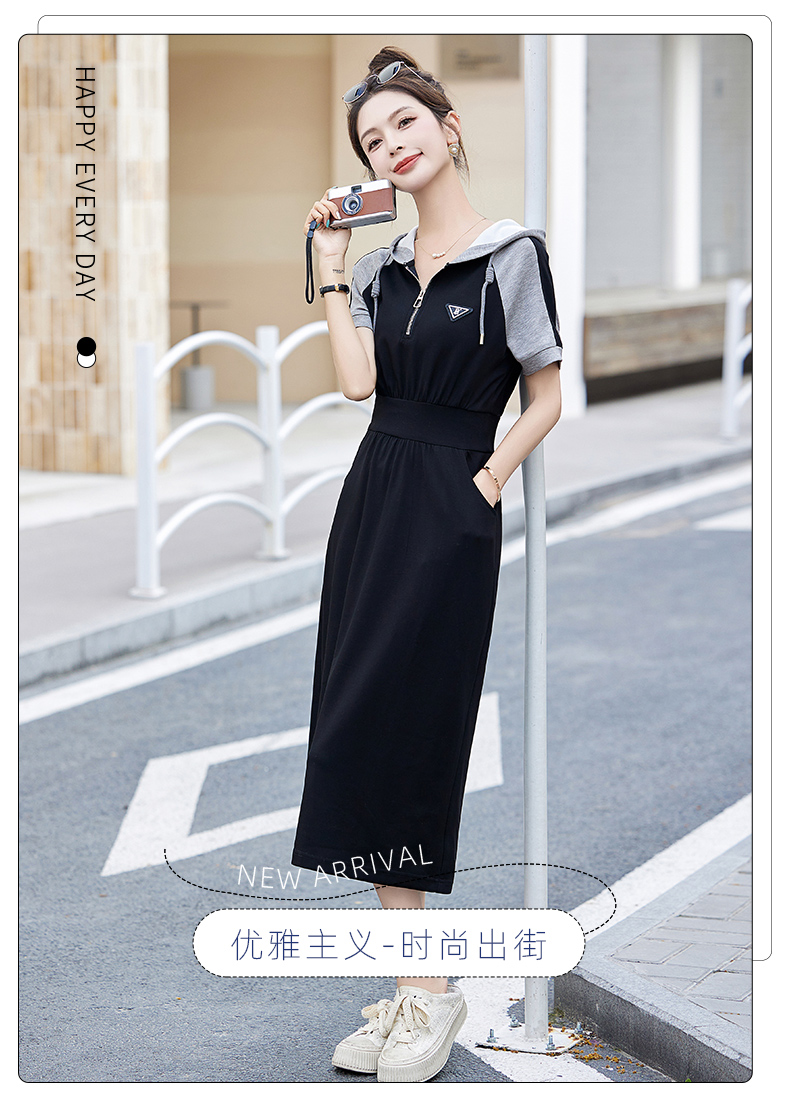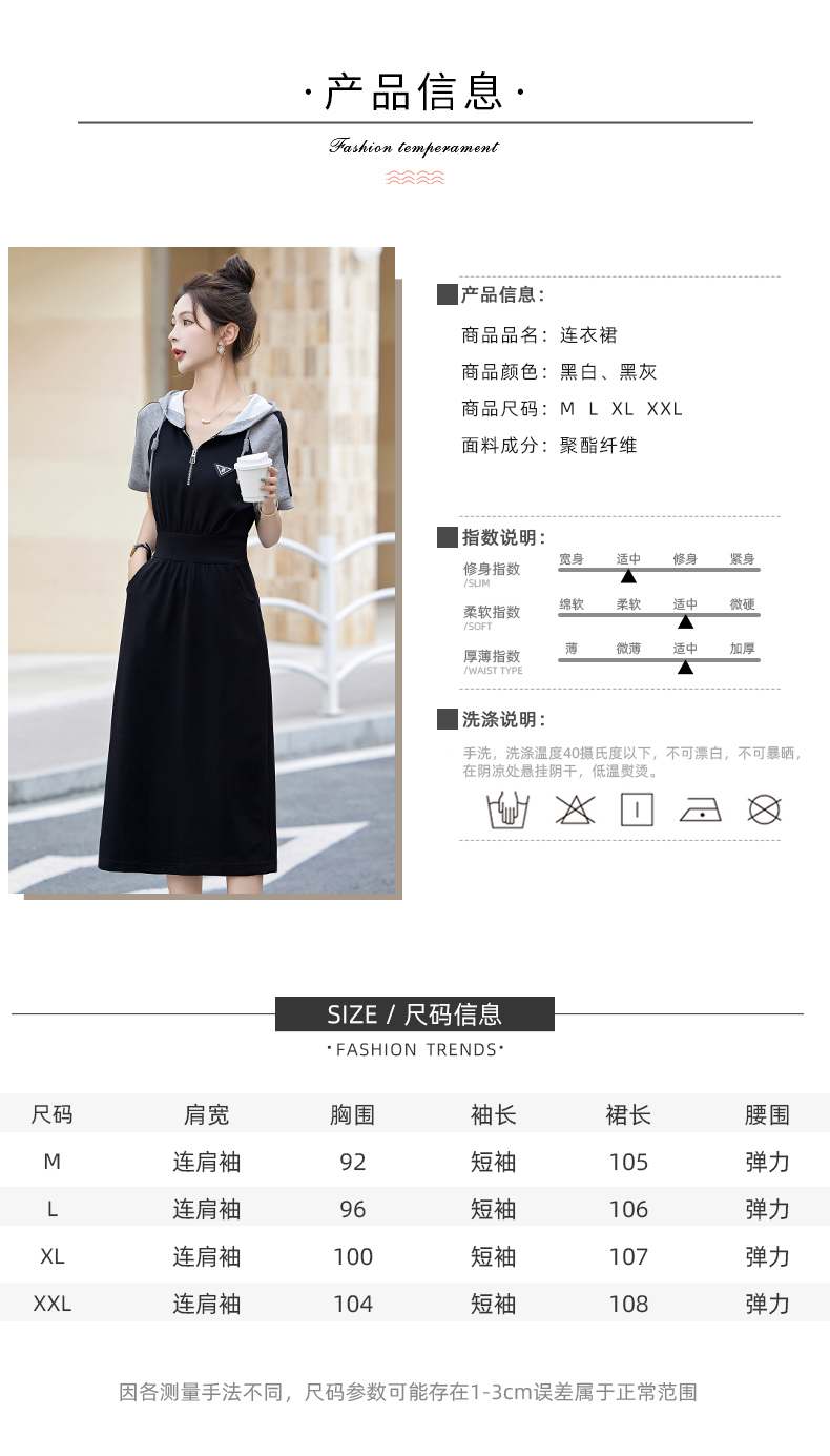 时尚气质收腰显瘦,卫衣长裙休闲连帽连衣裙HR-QXG205