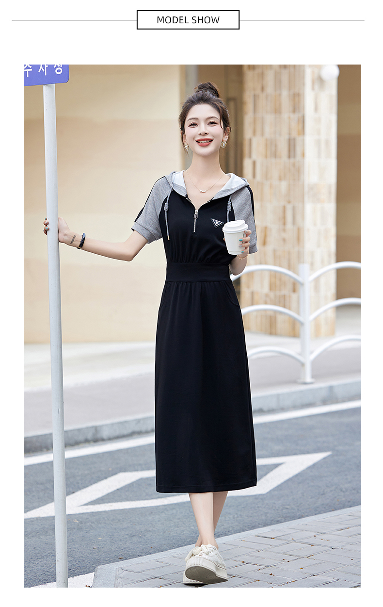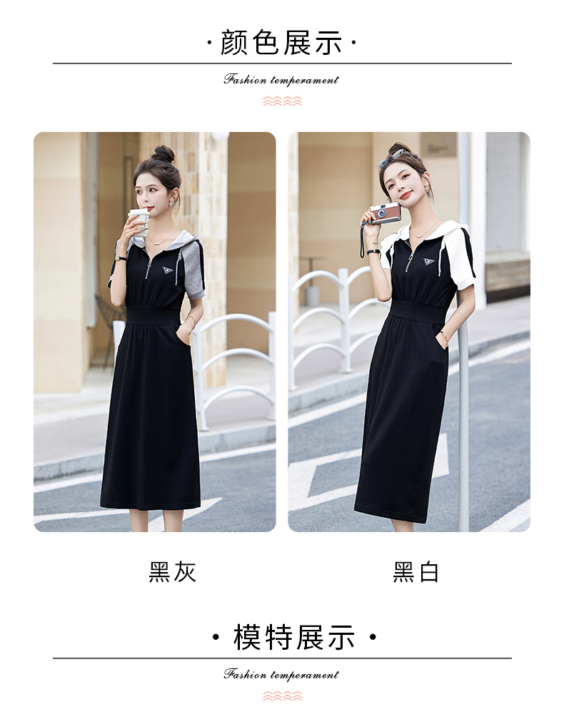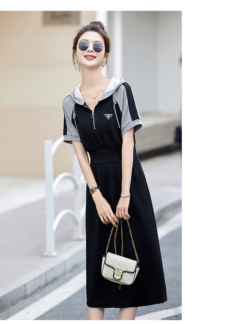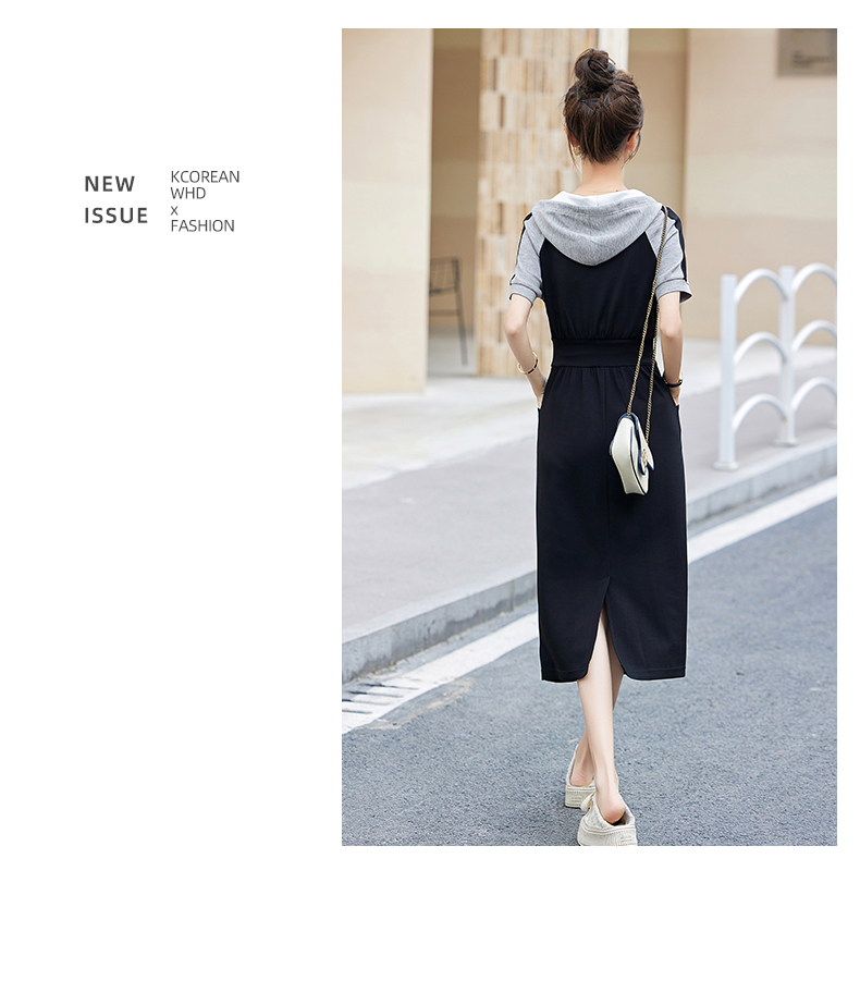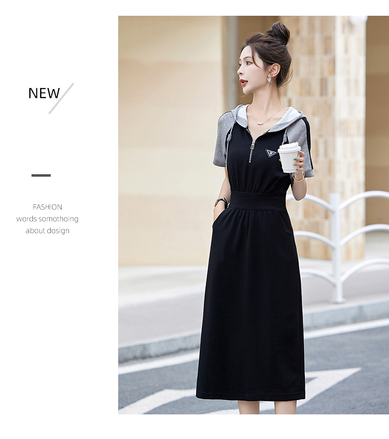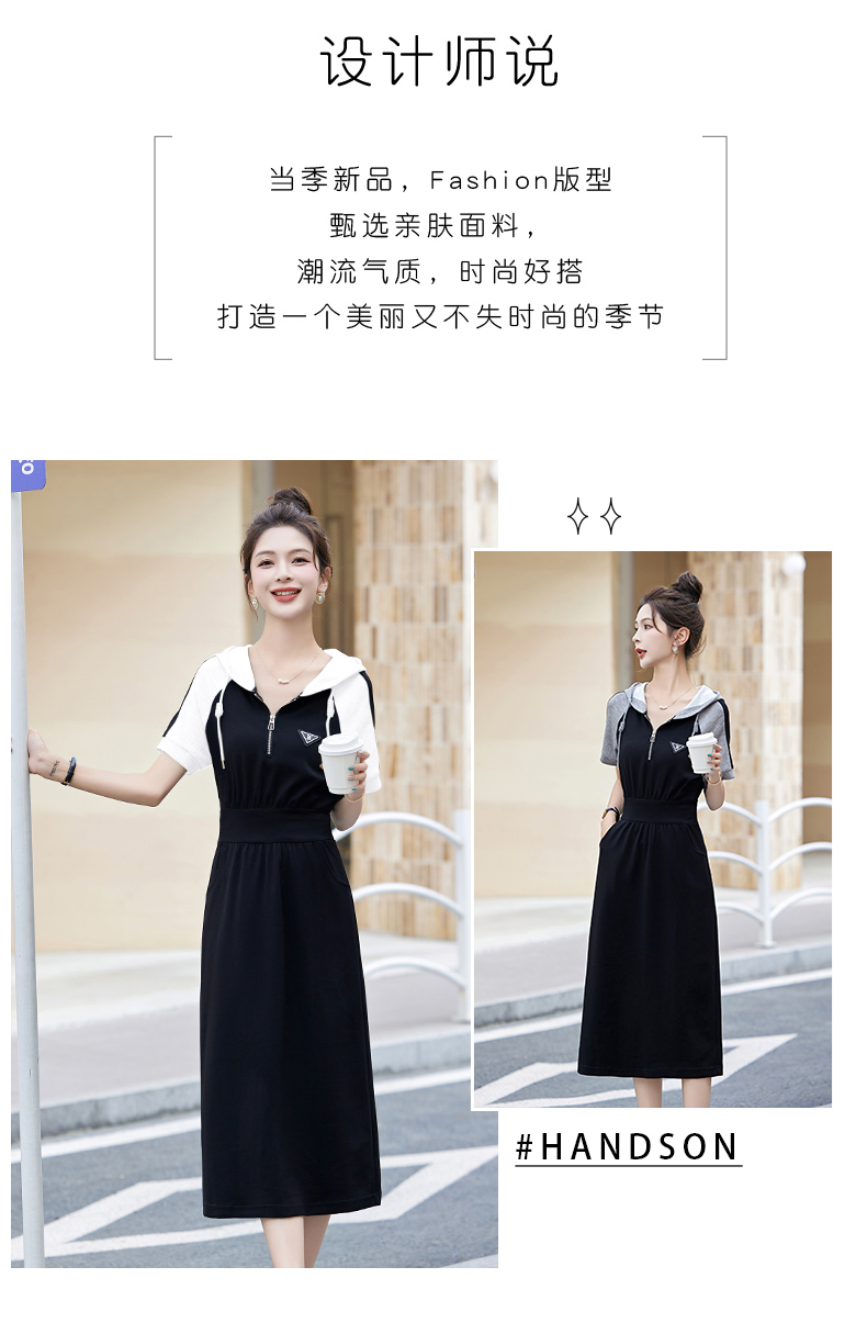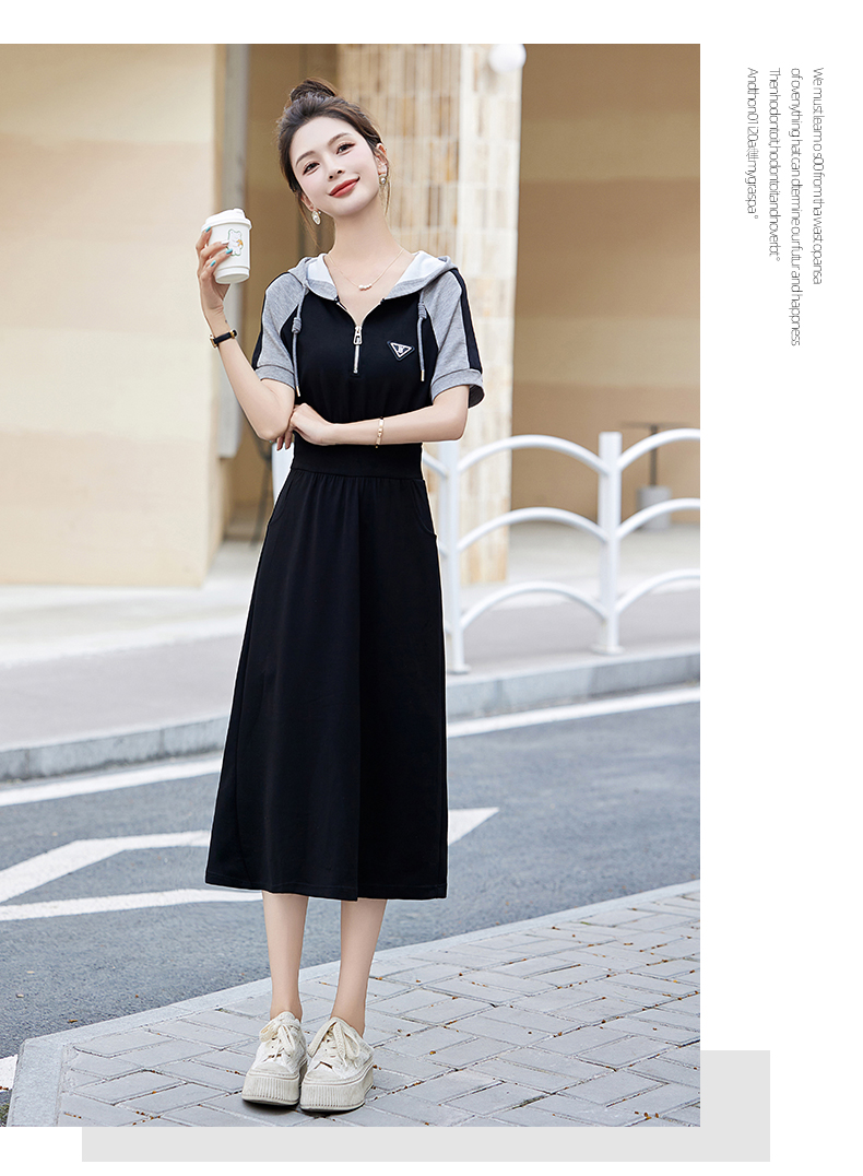 时尚气质收腰显瘦,卫衣长裙休闲连帽连衣裙HR-QXG205