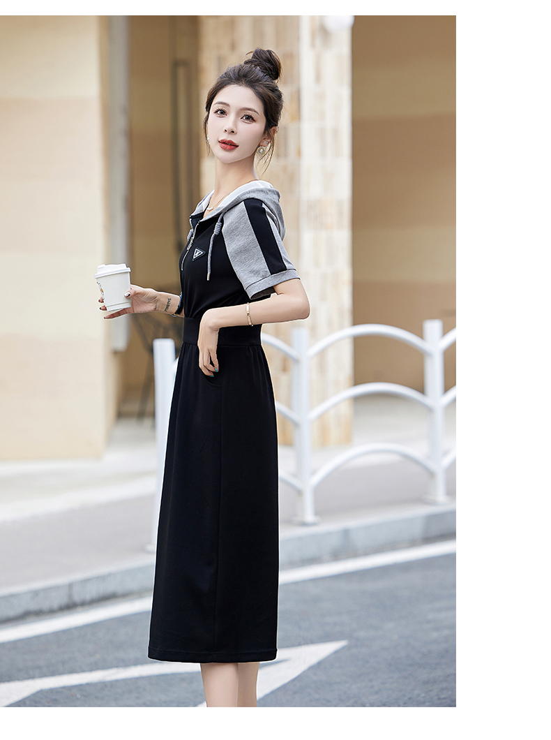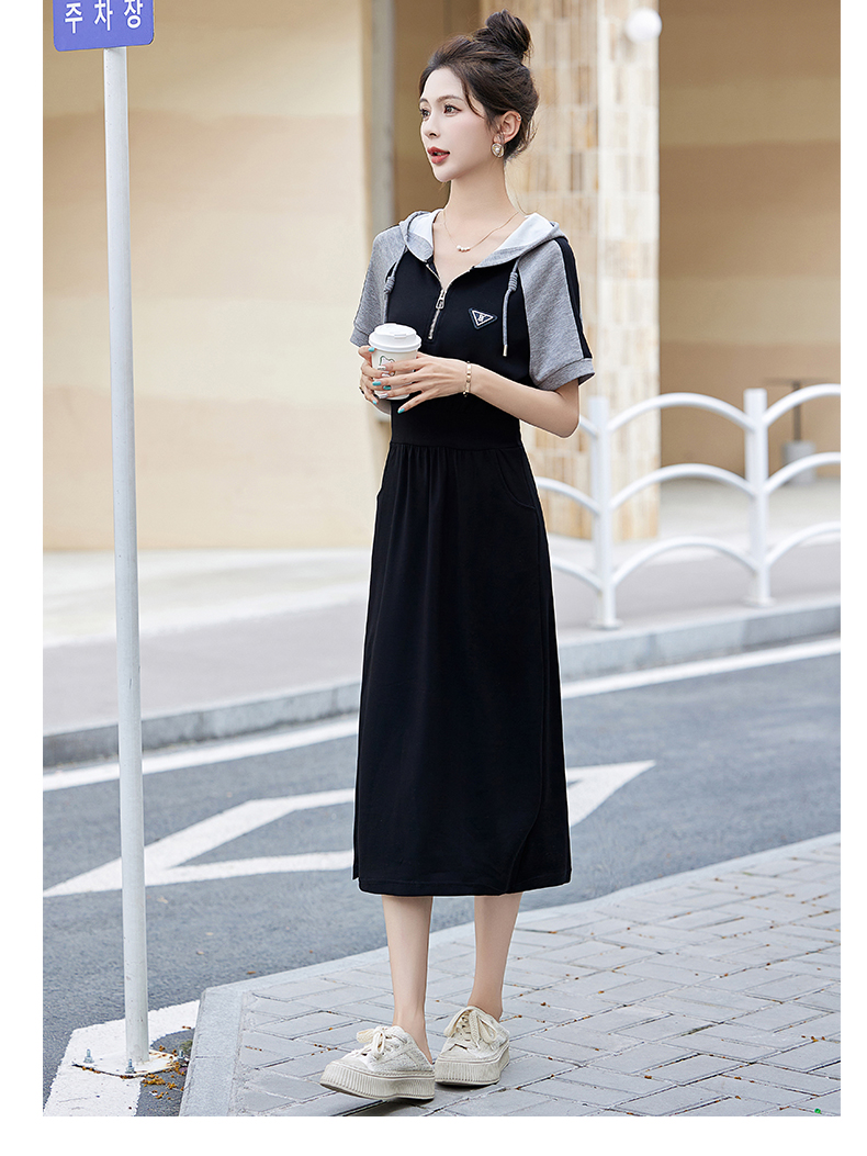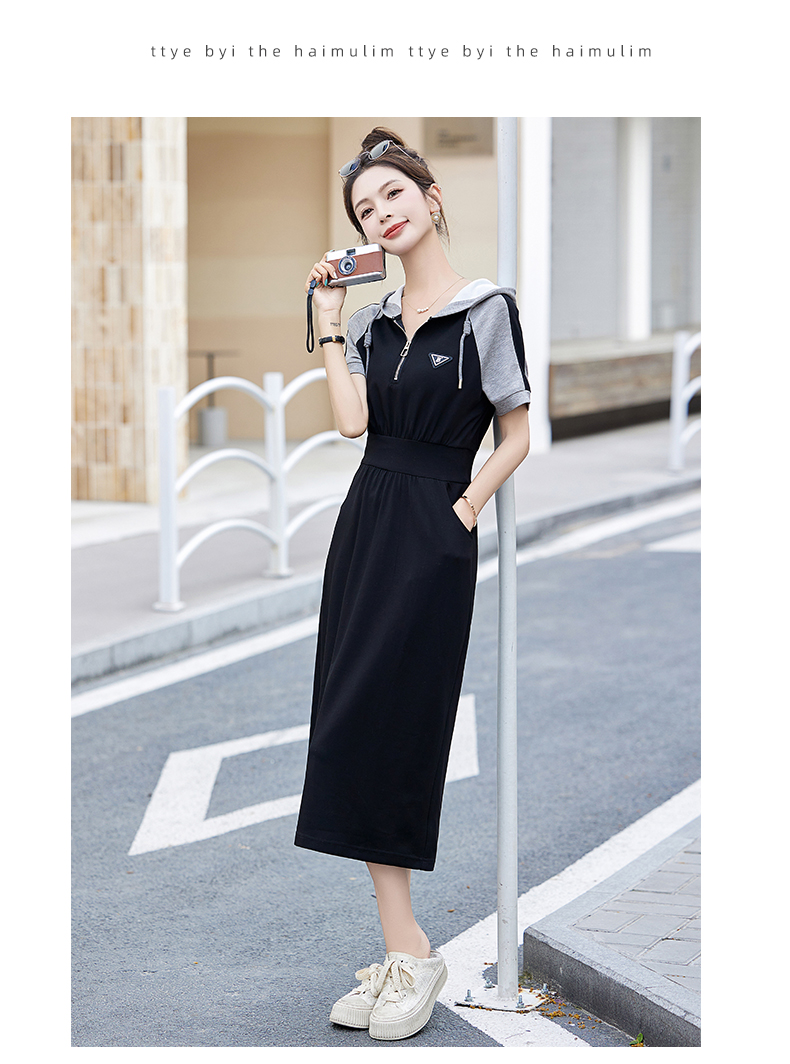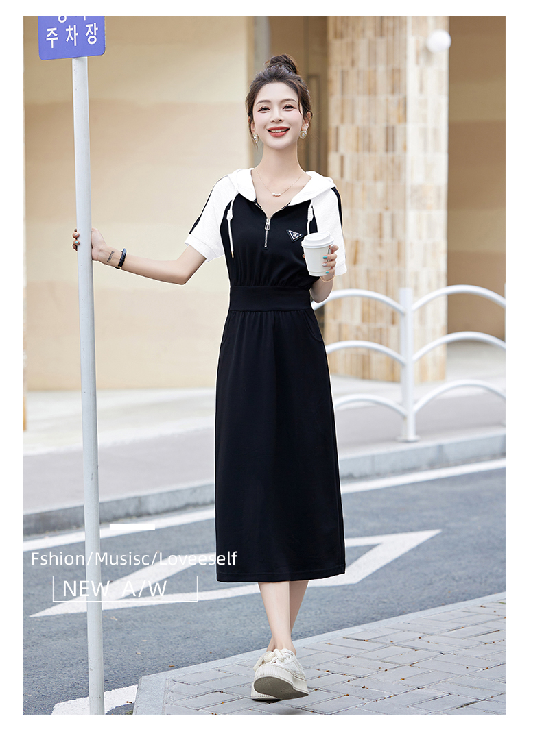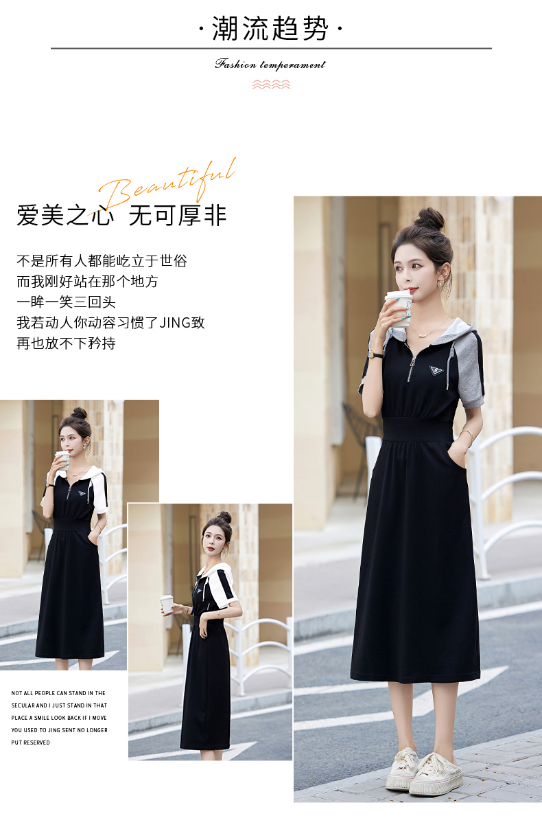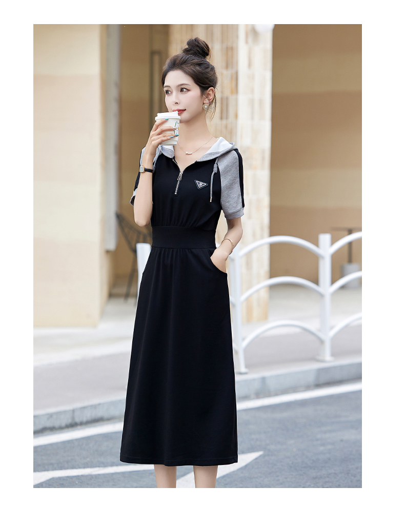 时尚气质收腰显瘦,卫衣长裙休闲连帽连衣裙HR-QXG205