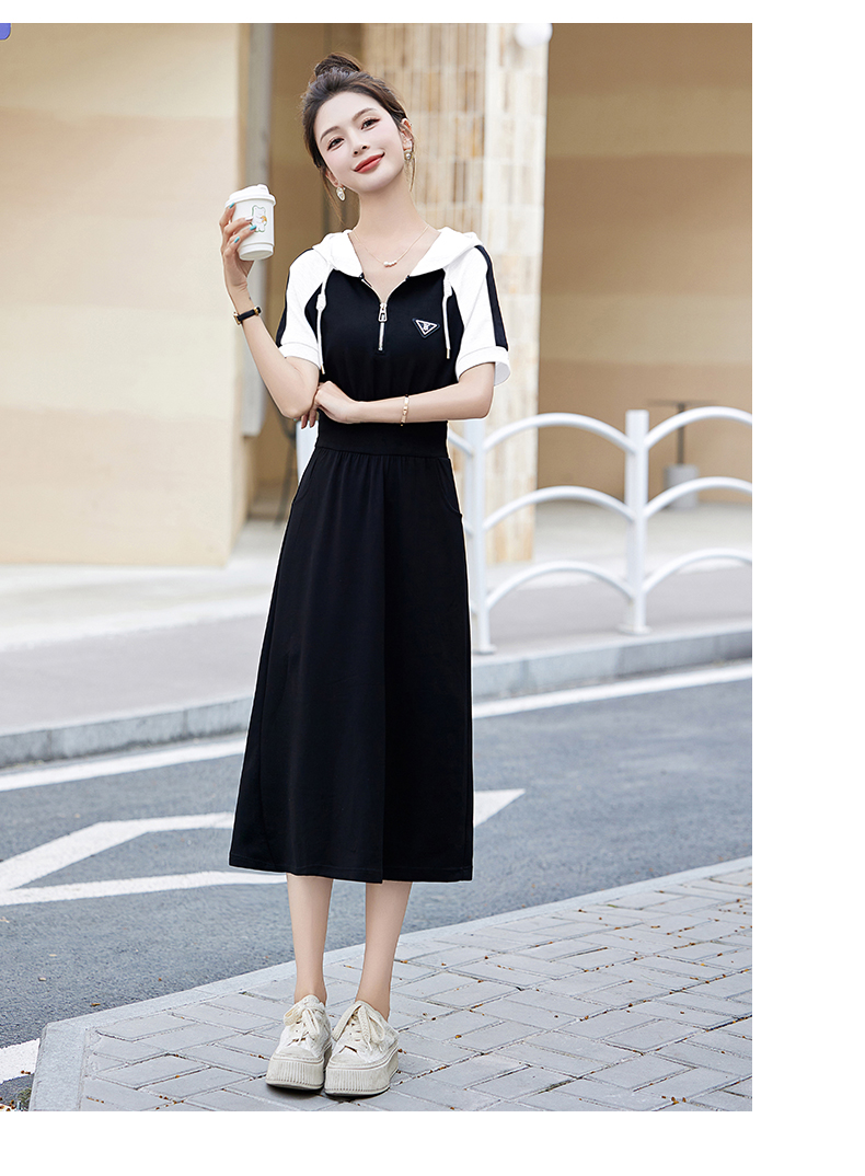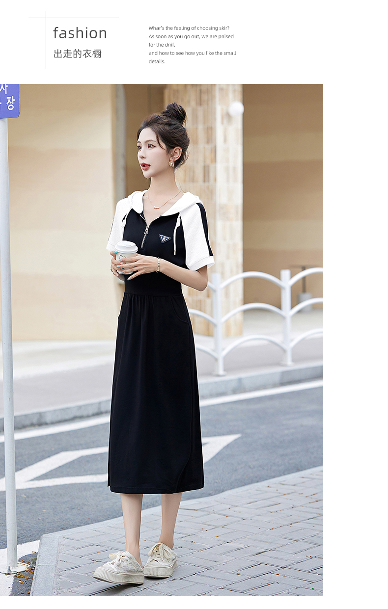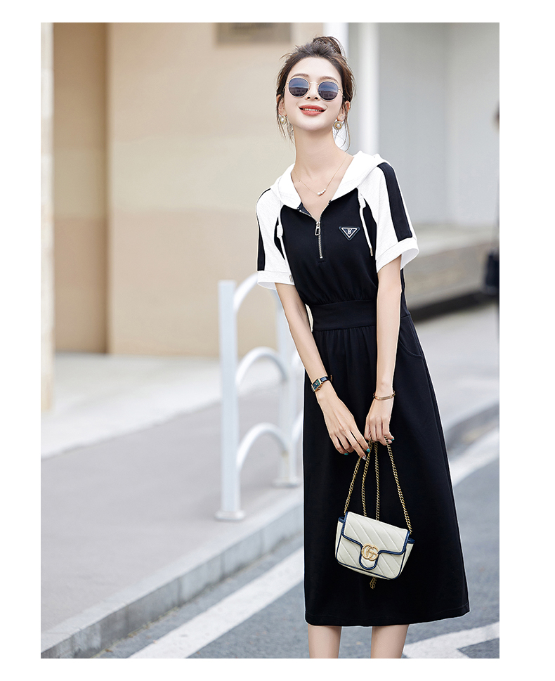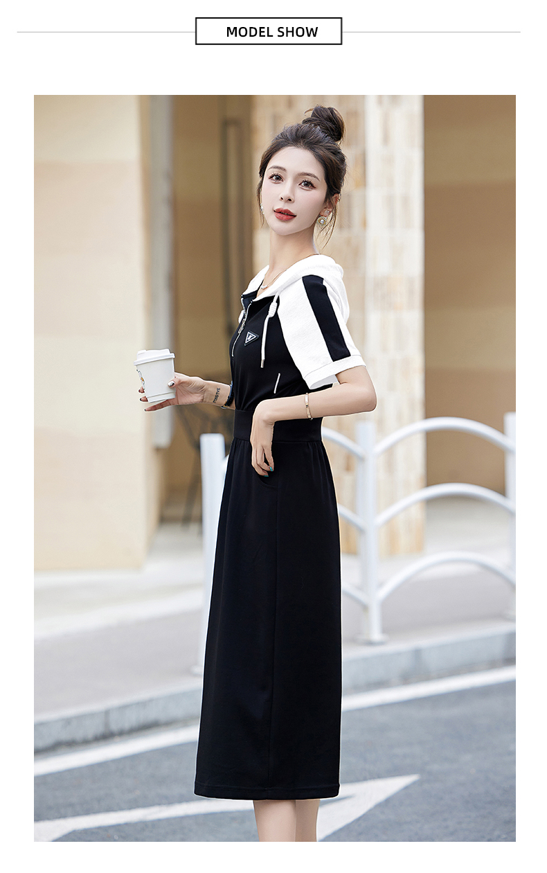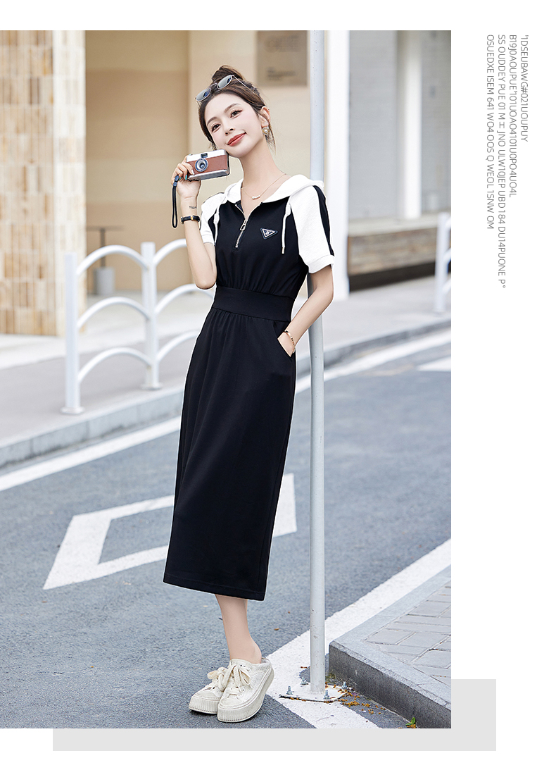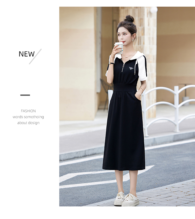 时尚气质收腰显瘦,卫衣长裙休闲连帽连衣裙HR-QXG205