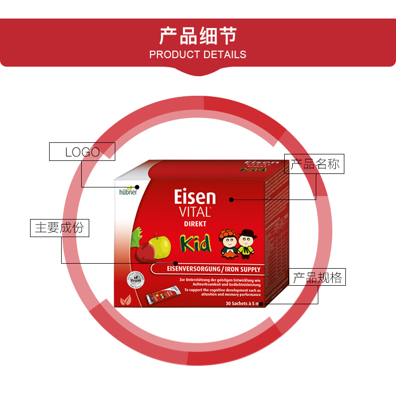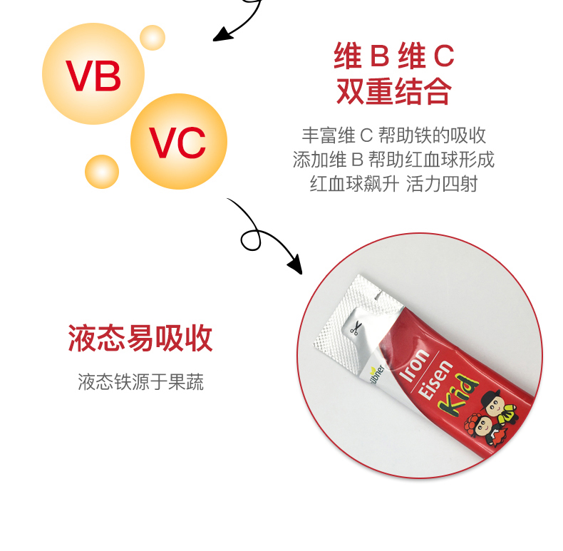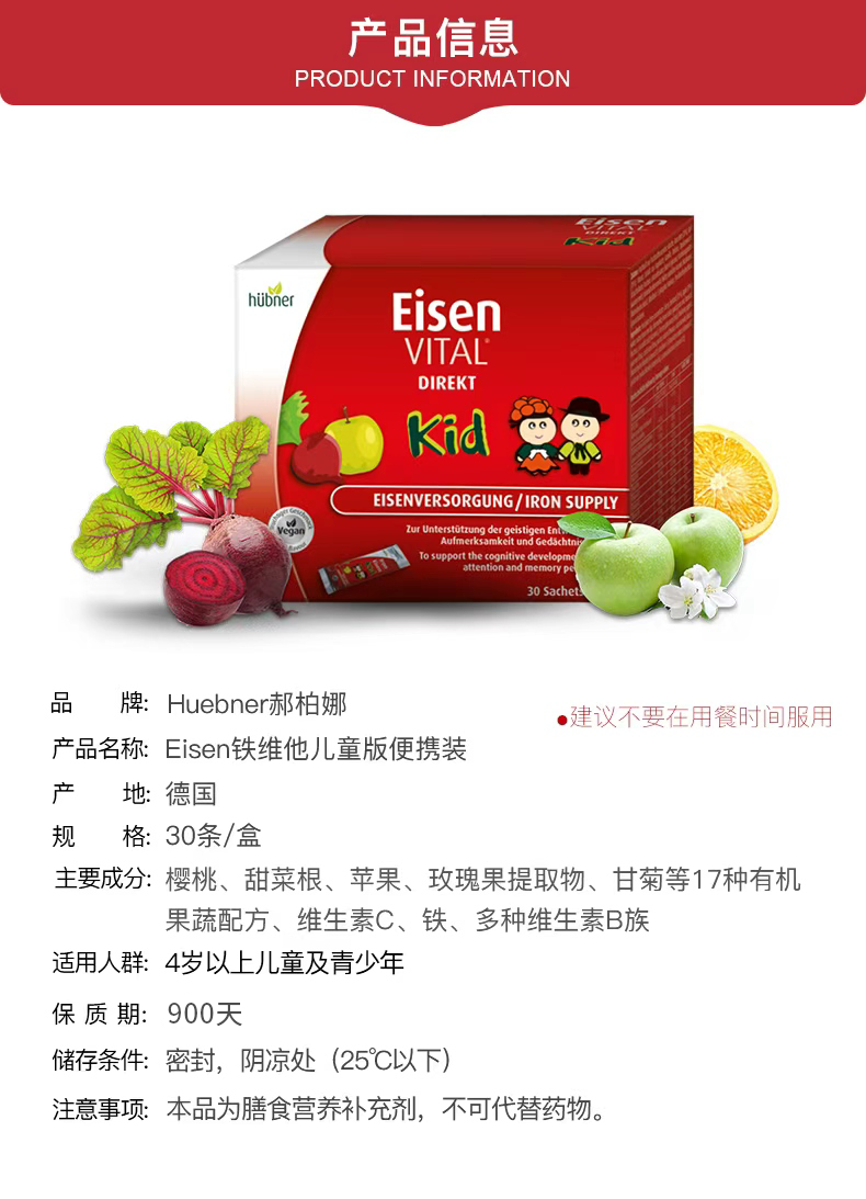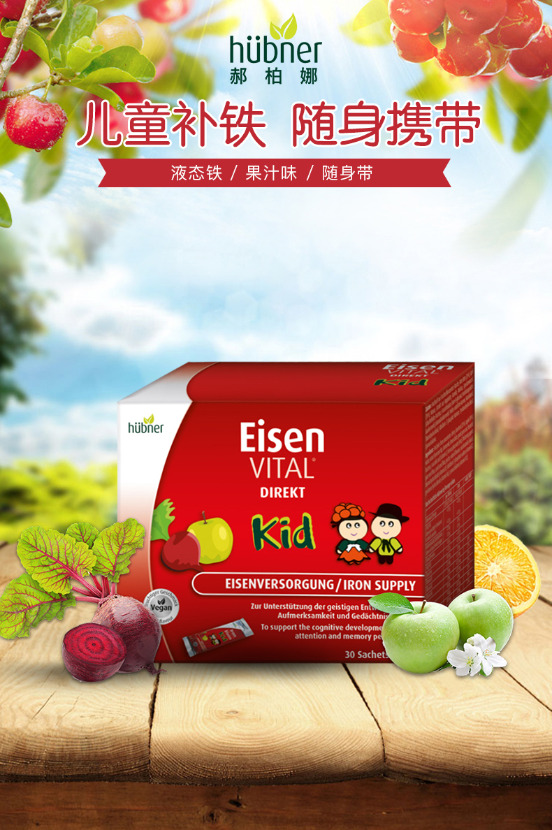 德国Huebner郝柏娜补铁补血口服液便携吸条儿童版5ml*30条/盒