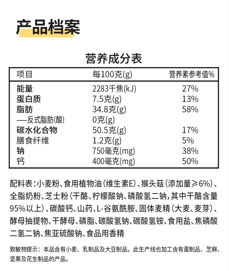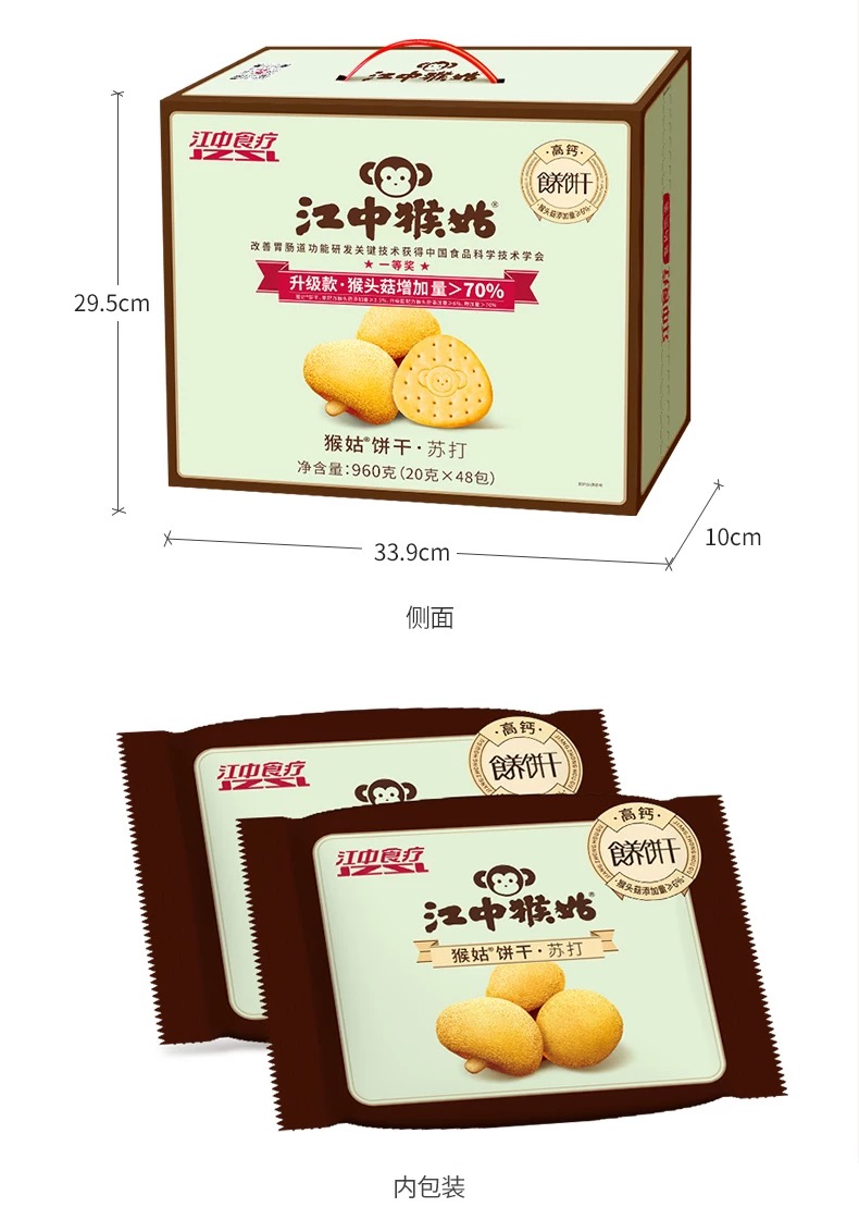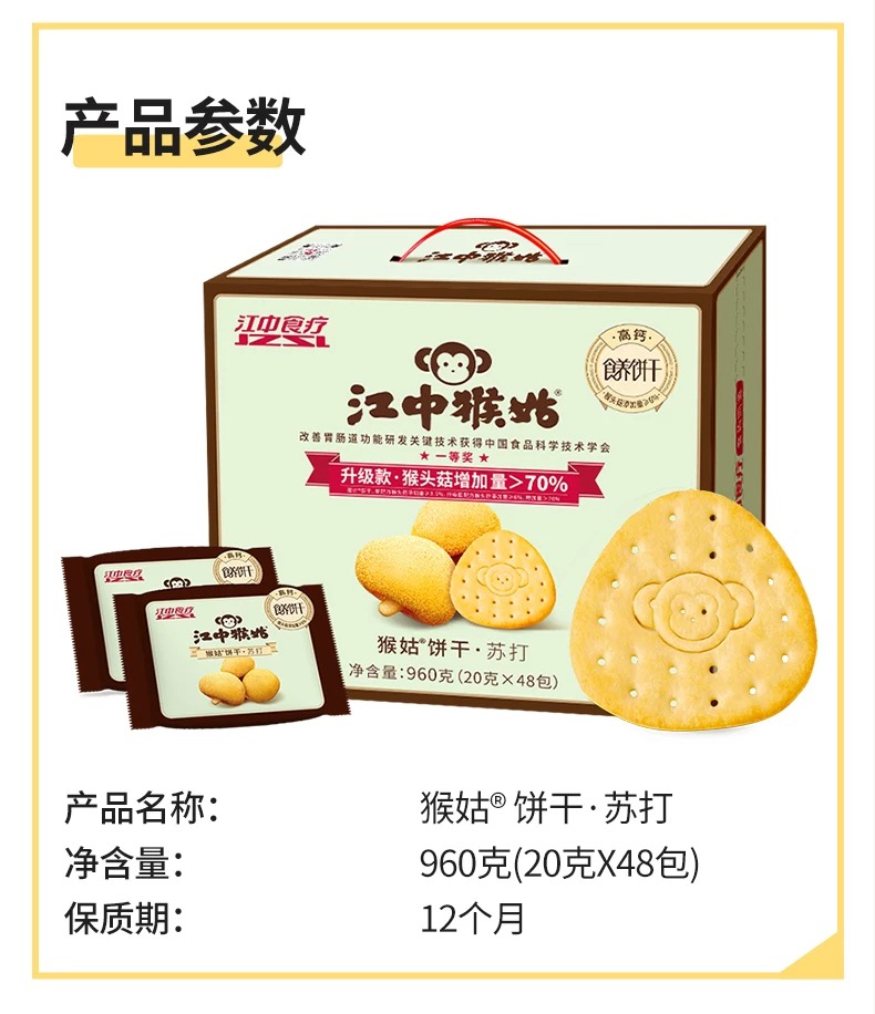 江中猴姑咸味碱性养胃苏打猴头菇饼干 20天 960g/盒