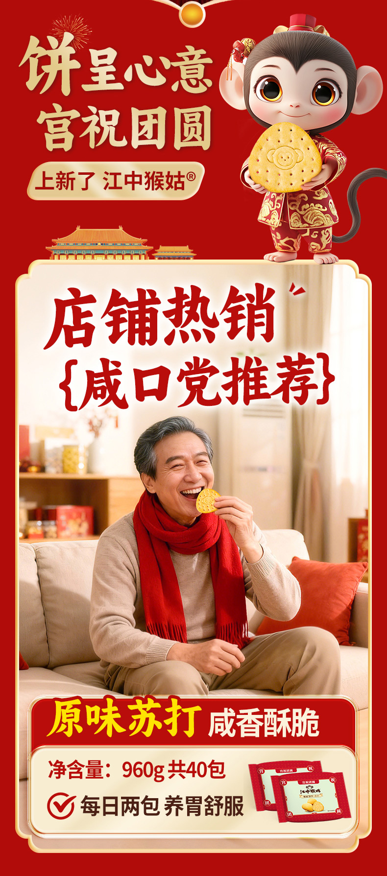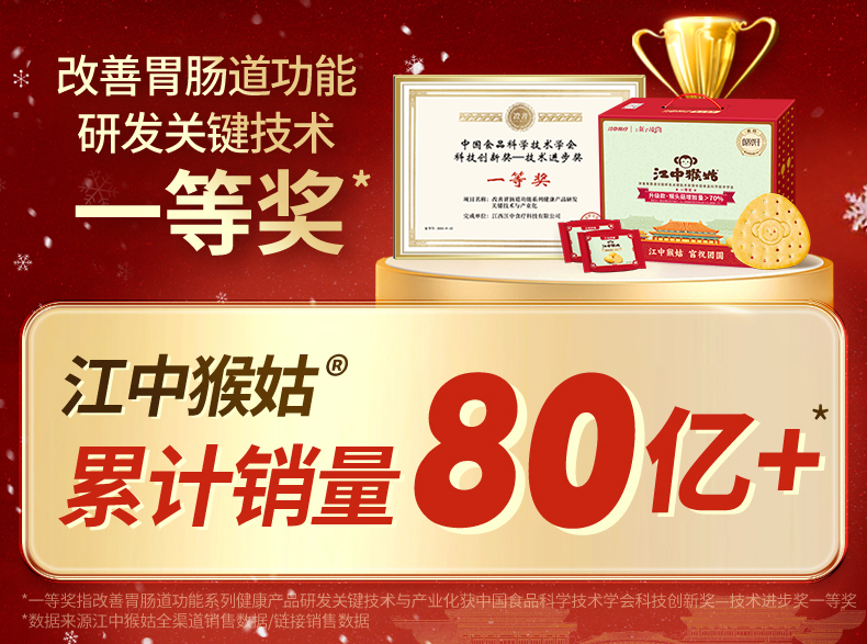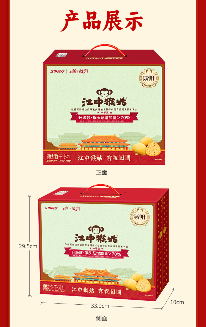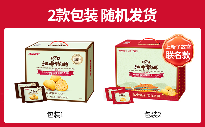 江中猴姑原味苏打饼干20天装960g/盒 猴头菇碱性养胃中和胃酸健康零食 2026年1月生产,保质期12个月