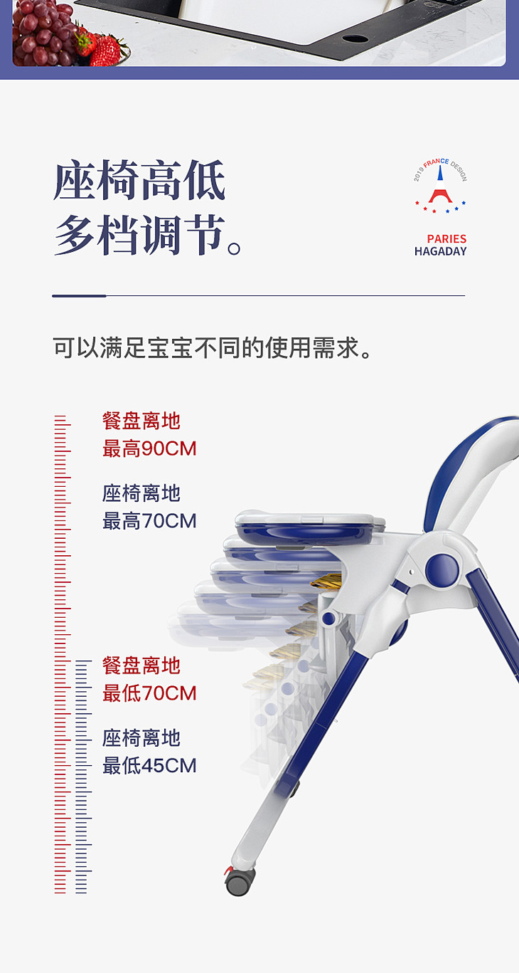 【法国hagaday】 宝宝餐椅多功能饭桌婴儿椅子家用餐桌椅儿童吃饭座椅