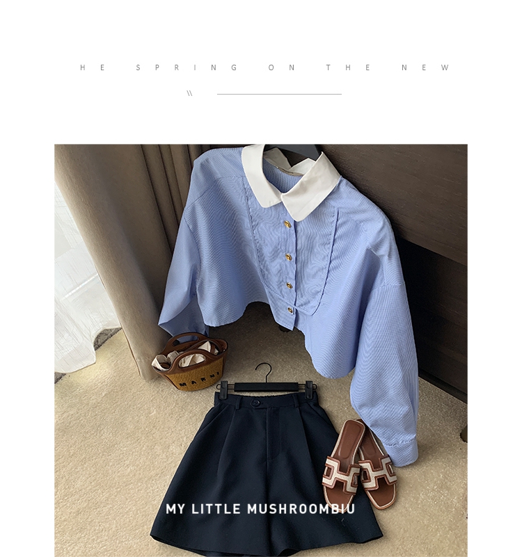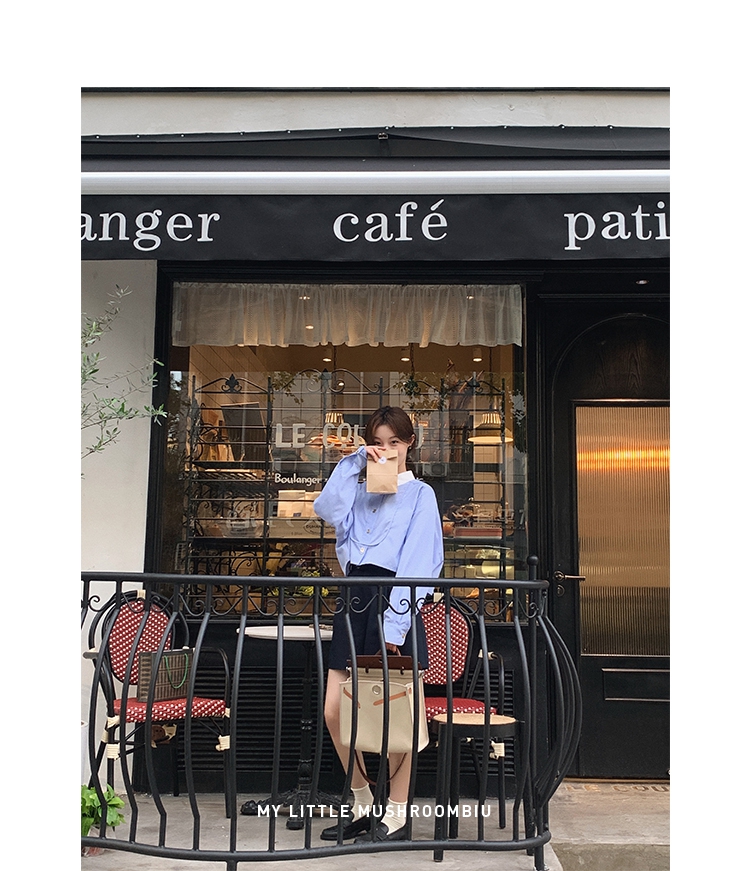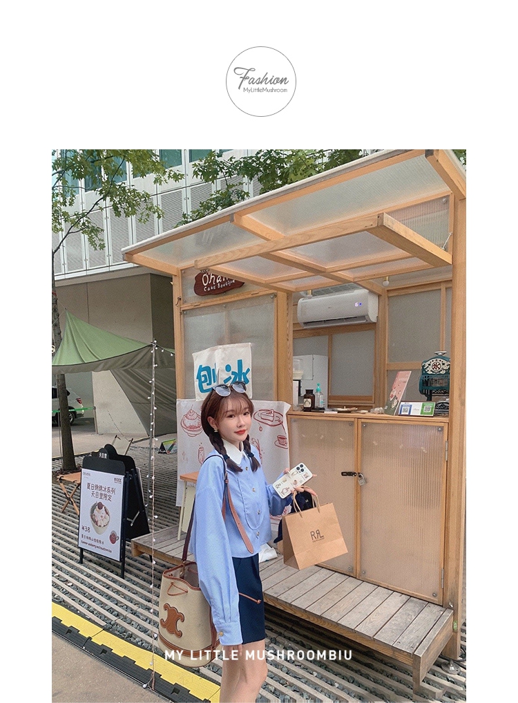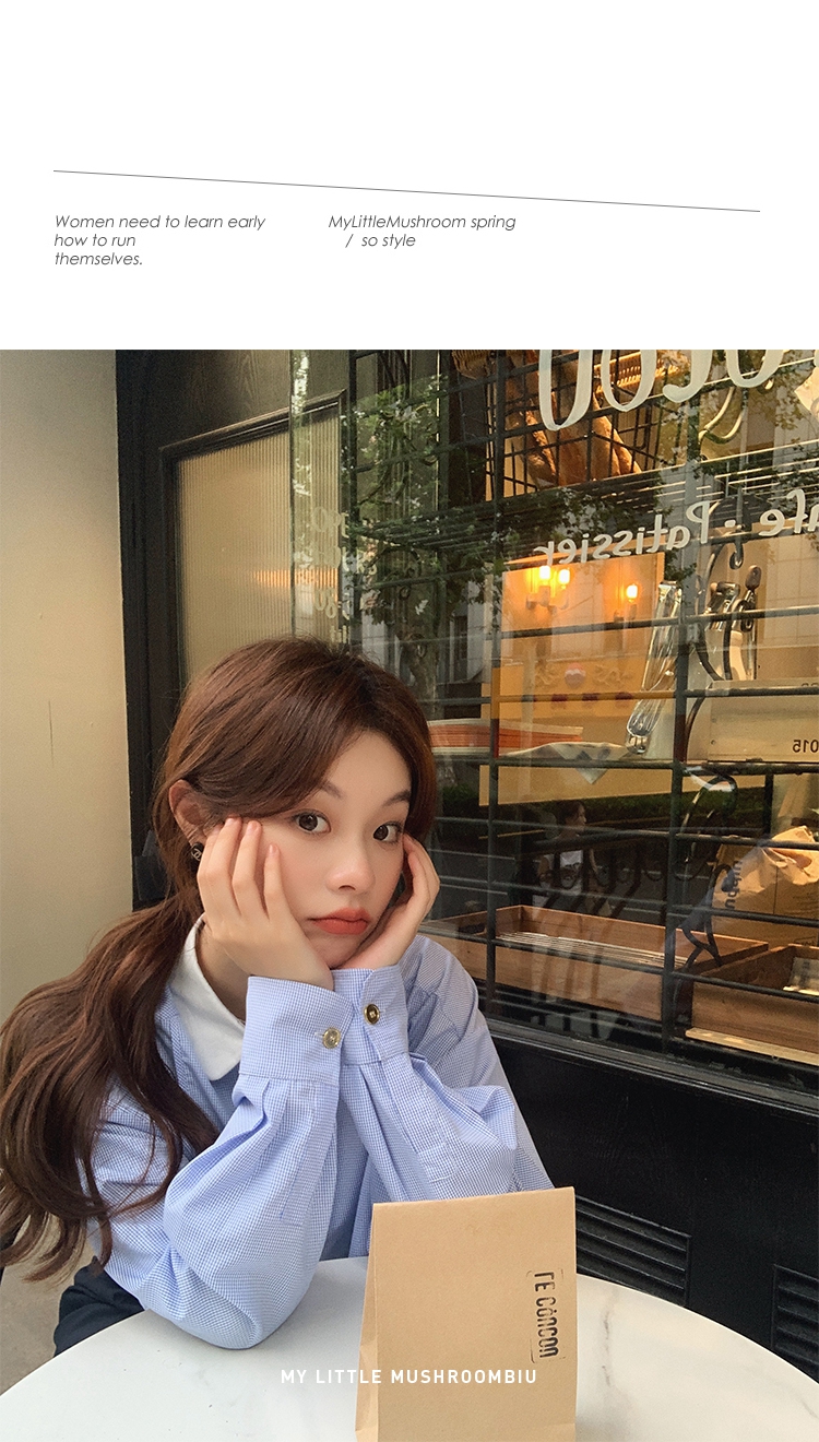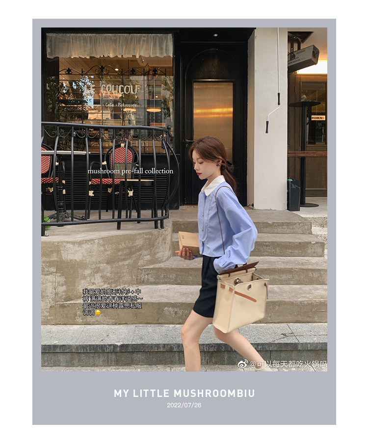 金蘑菇菇【甜心电台 miu套】元气轻松俏皮设计感法式休闲长袖衬衫