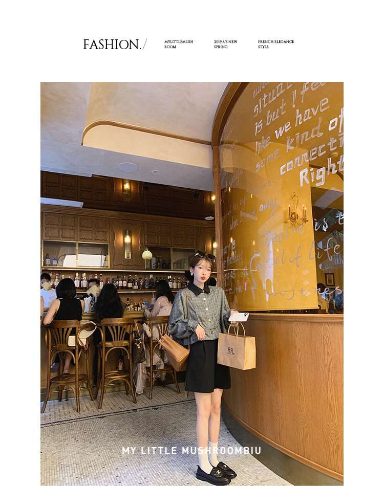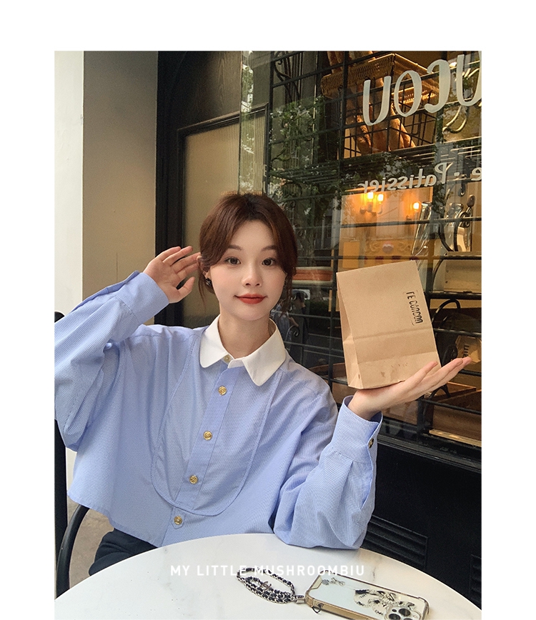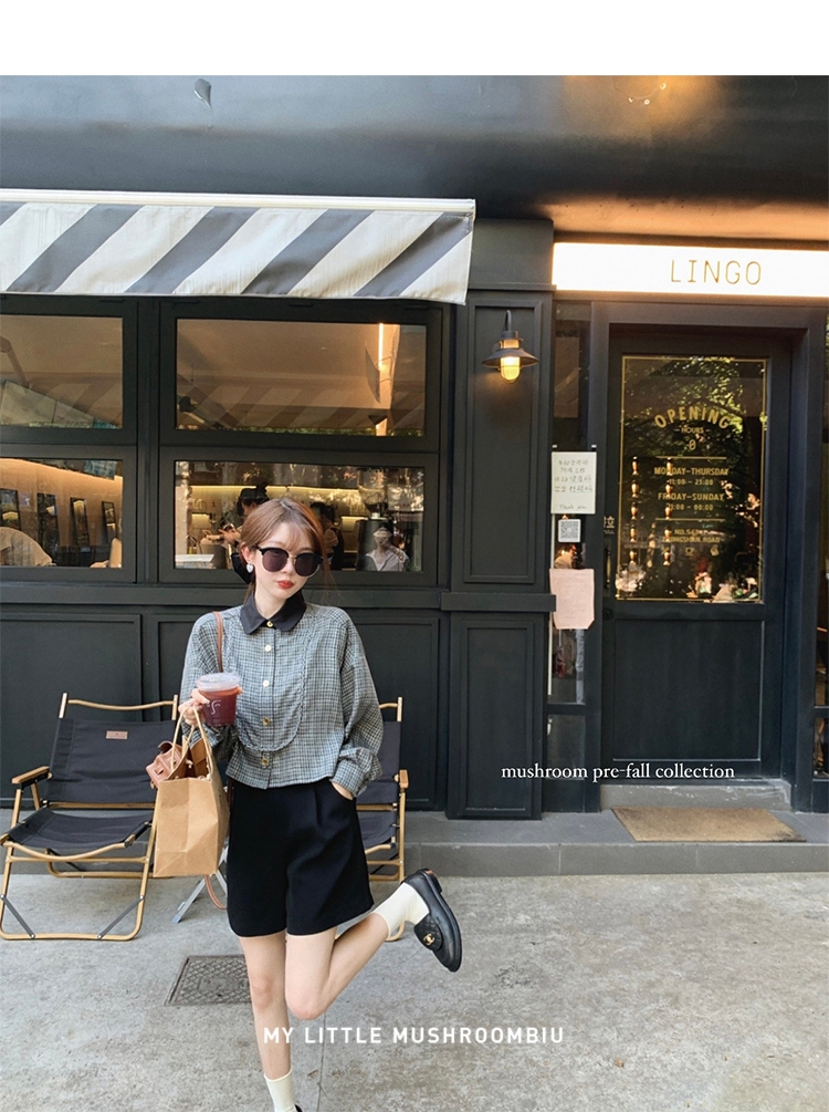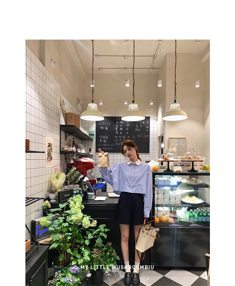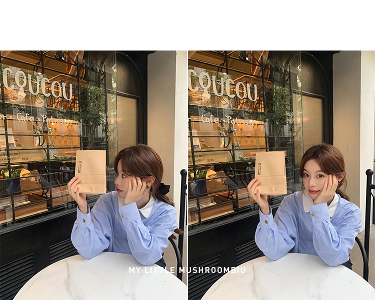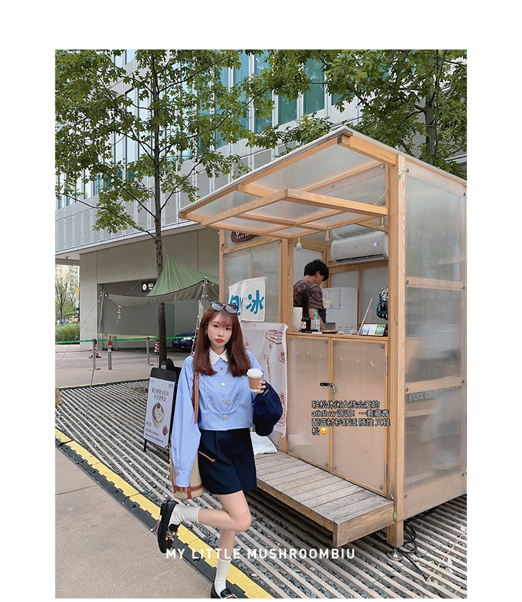 金蘑菇菇【甜心电台 miu套】元气轻松俏皮设计感法式休闲长袖衬衫