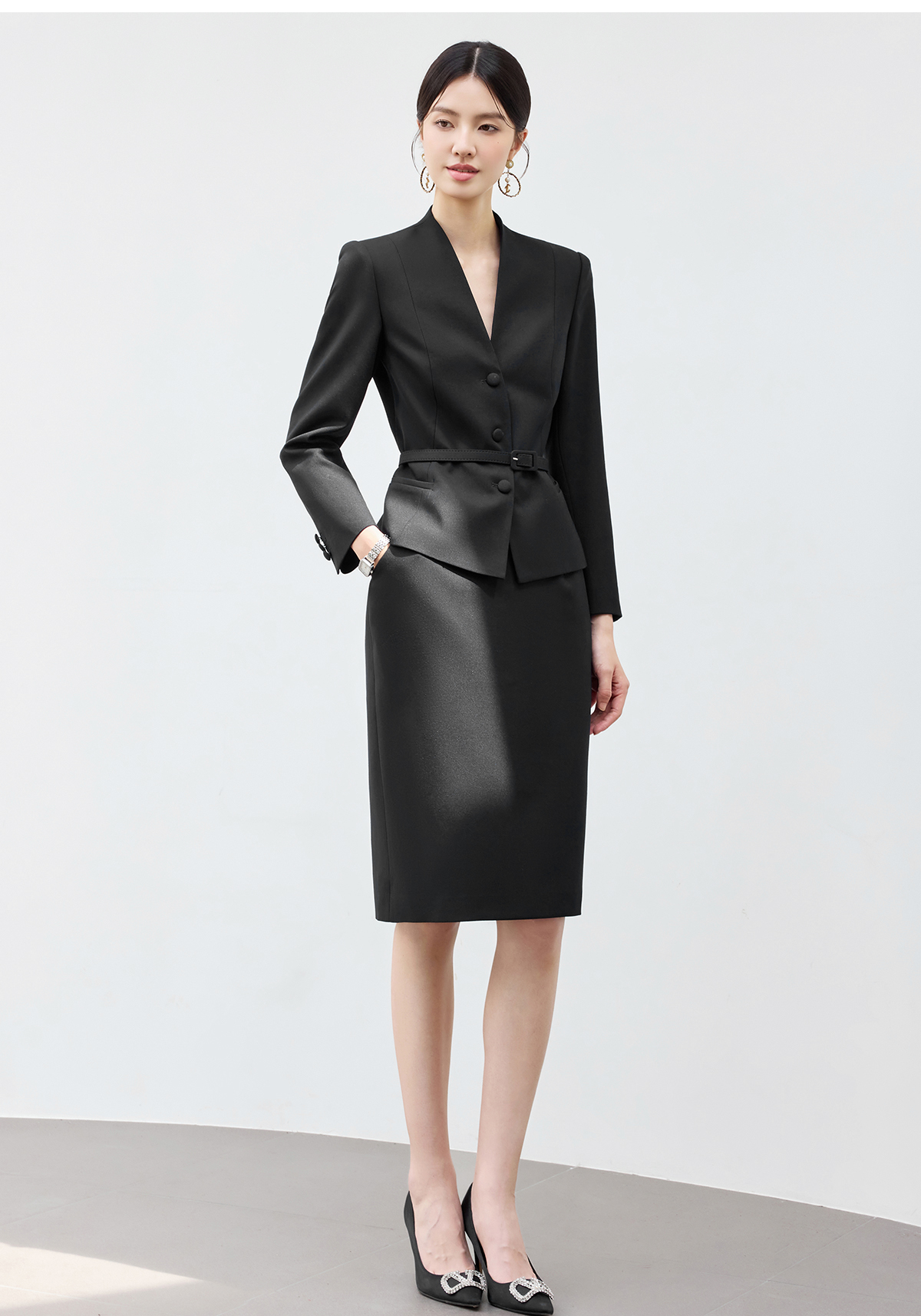 IWY/气质黑色英伦风西装半裙女秋冬长袖新款销售接待职业裙装25CS741