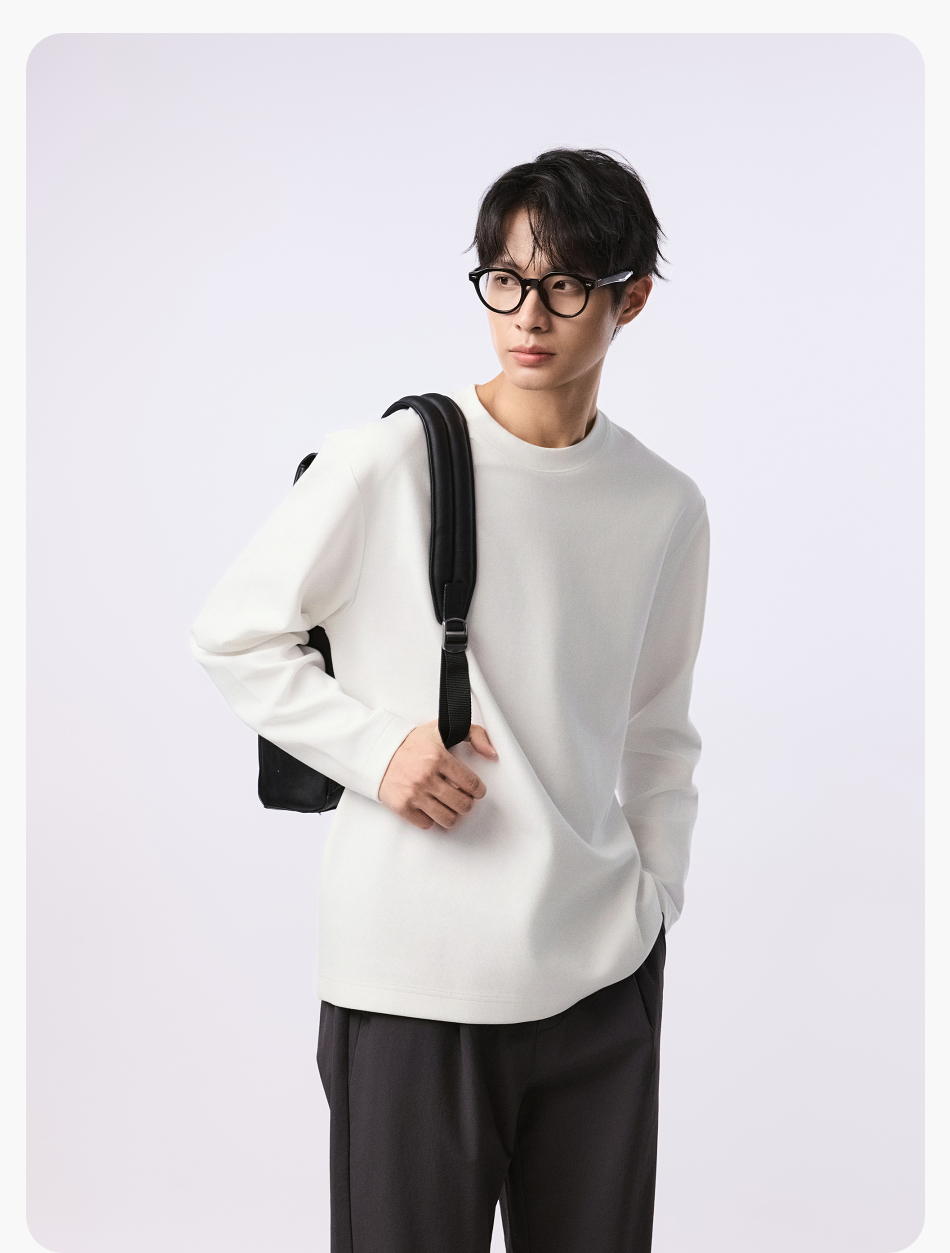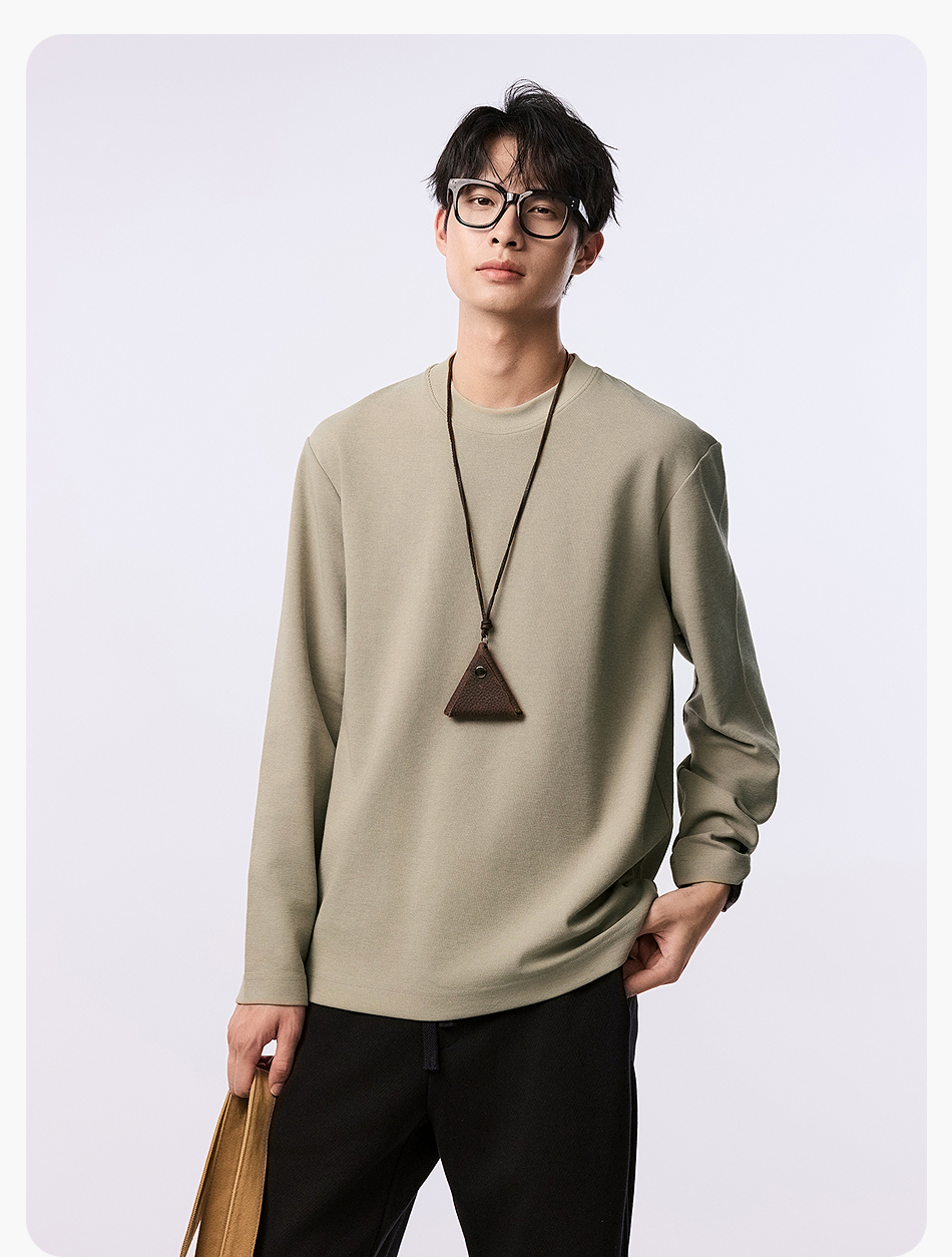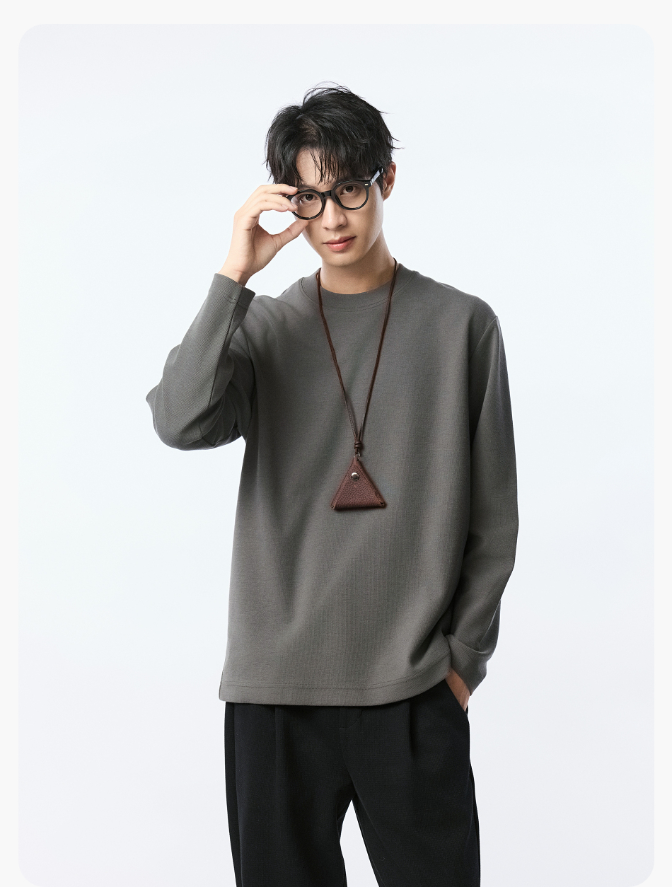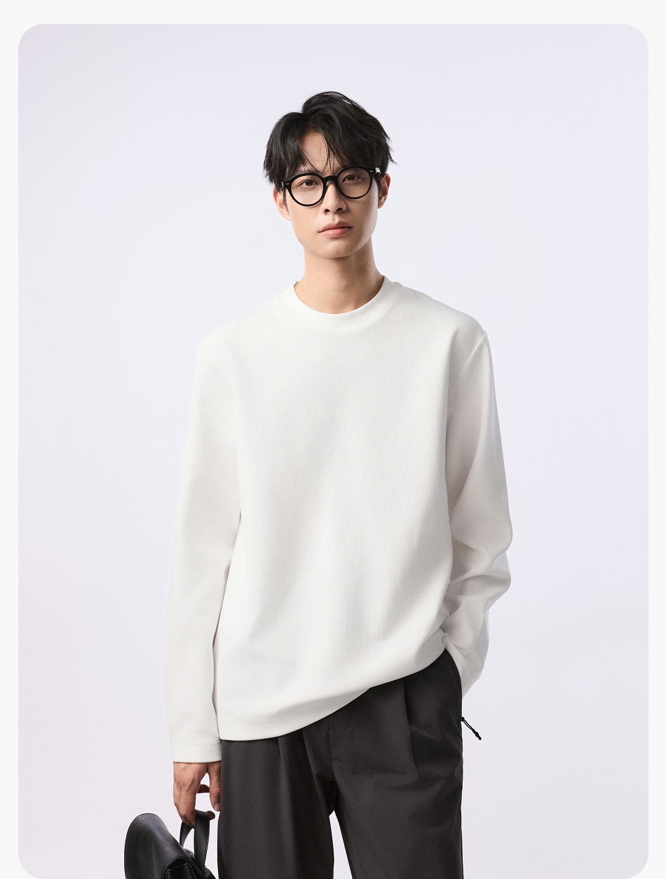 【品牌优选】棉仓水波纹微宽松圆领长袖T恤