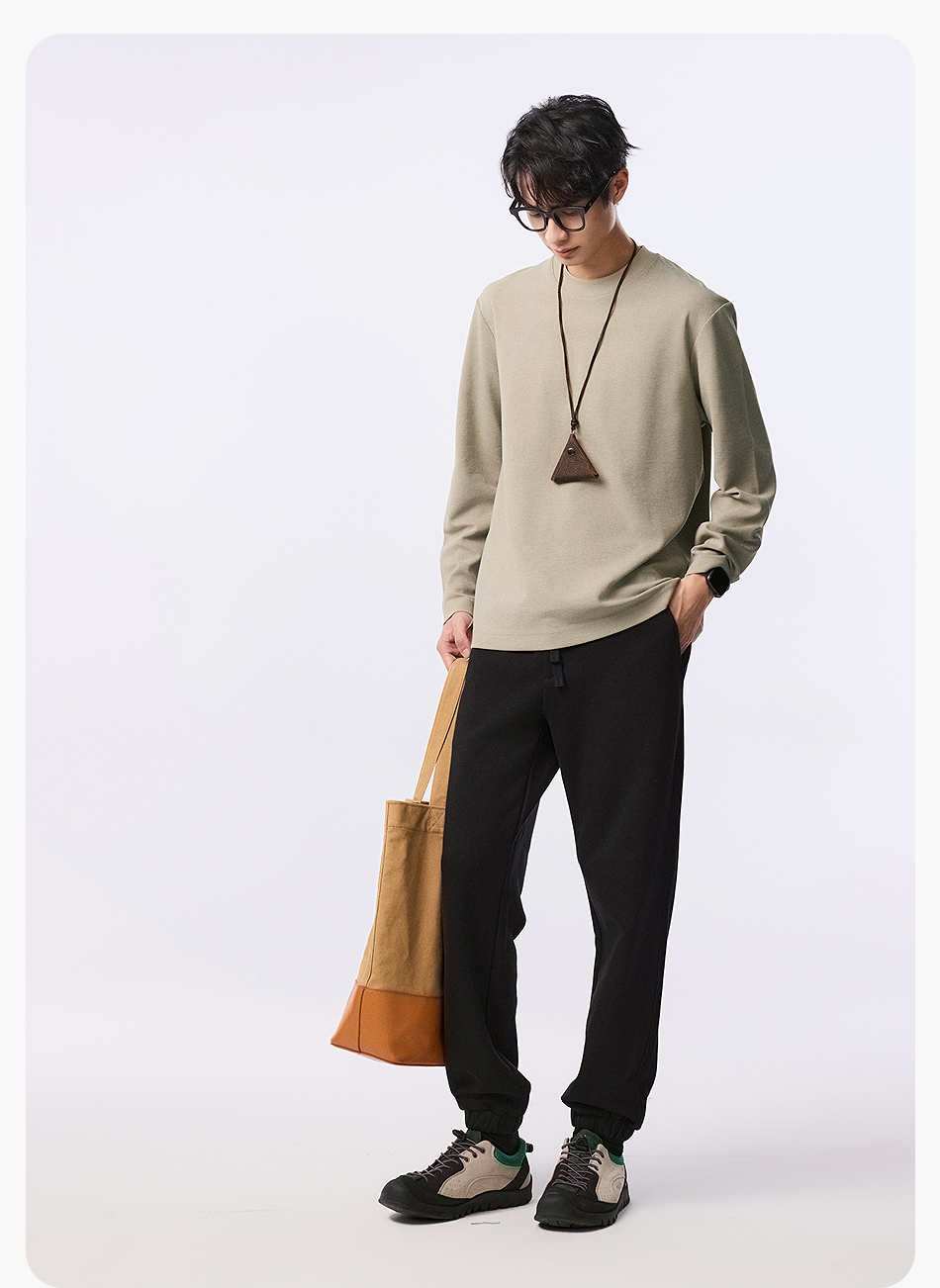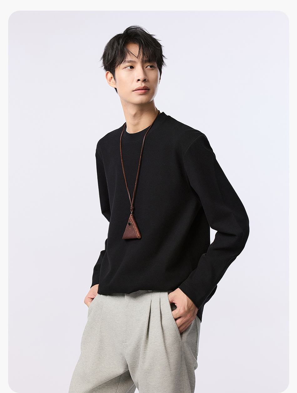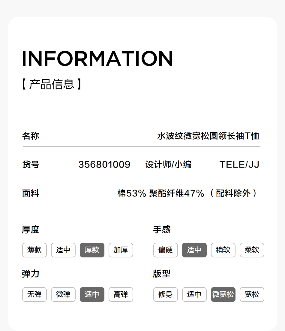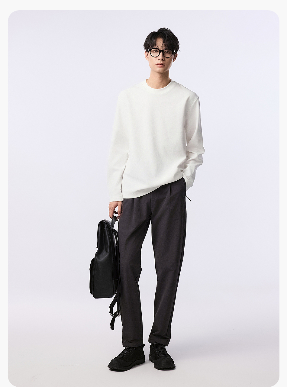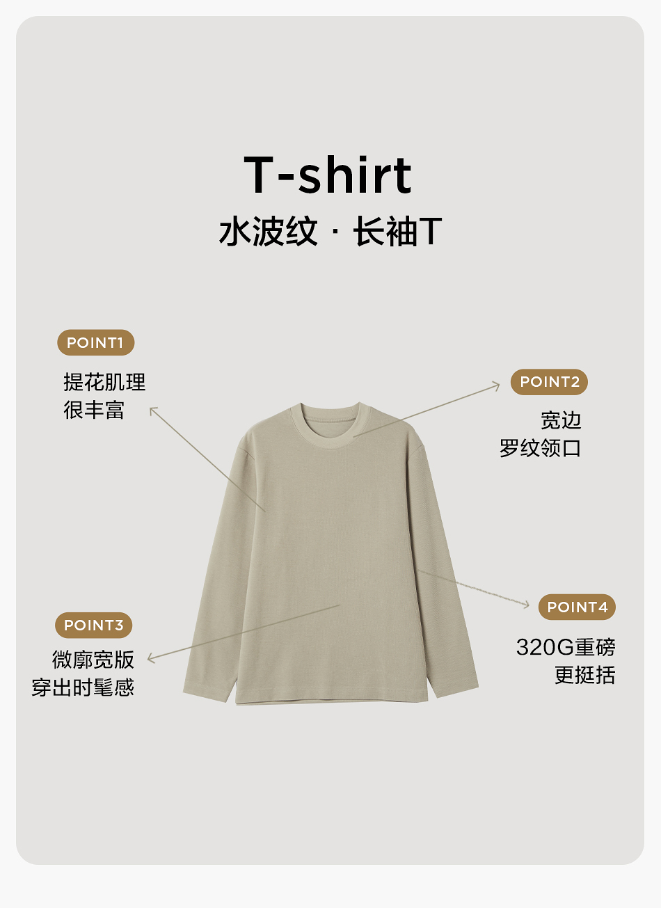 【品牌优选】棉仓水波纹微宽松圆领长袖T恤