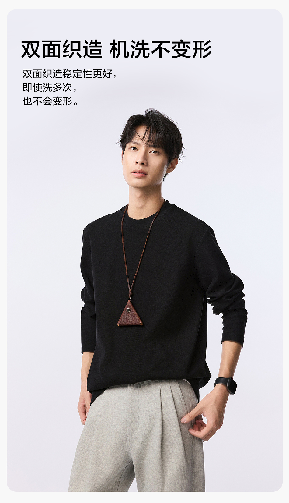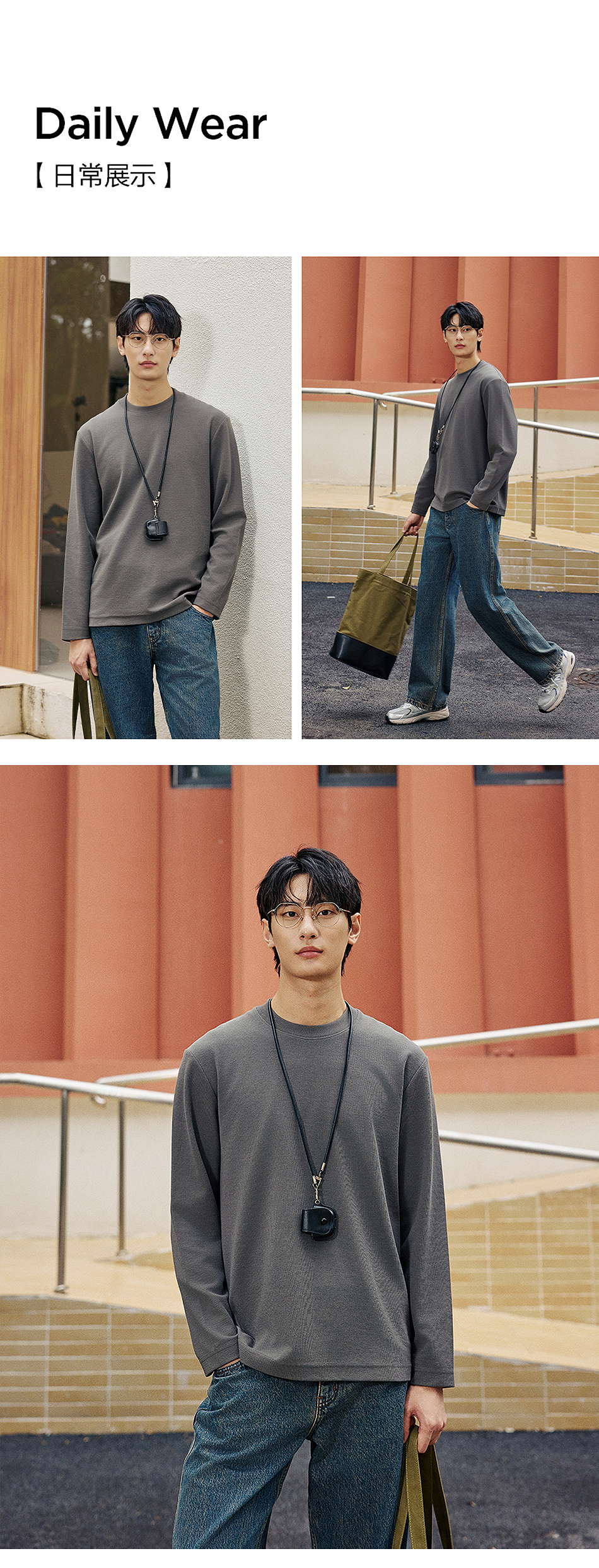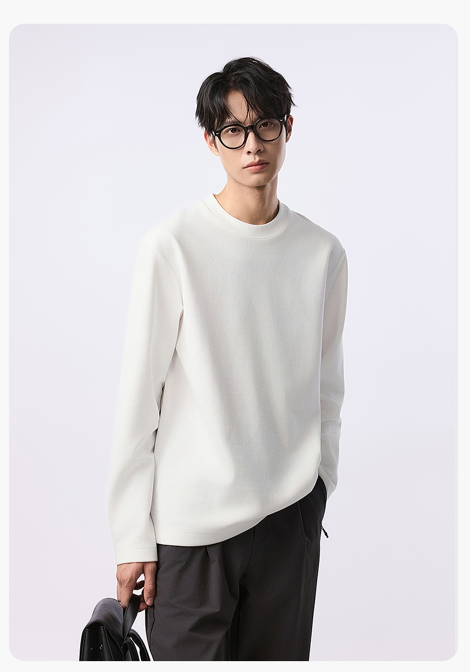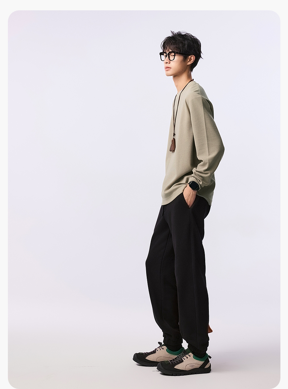 【品牌优选】棉仓水波纹微宽松圆领长袖T恤