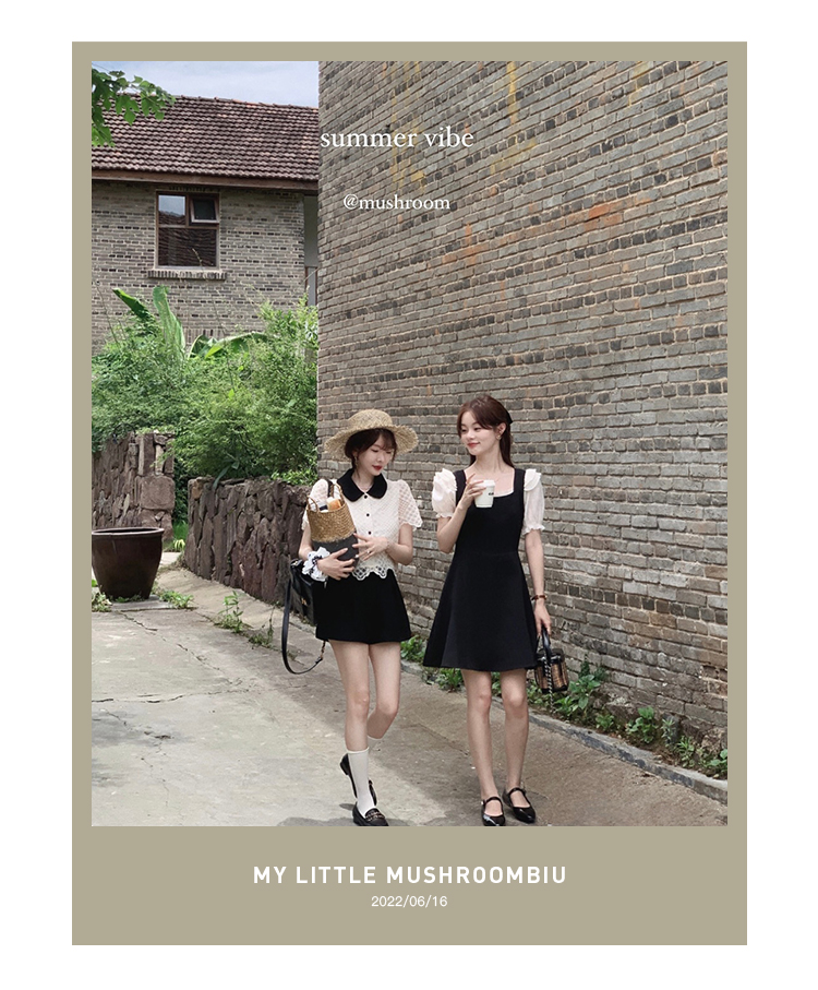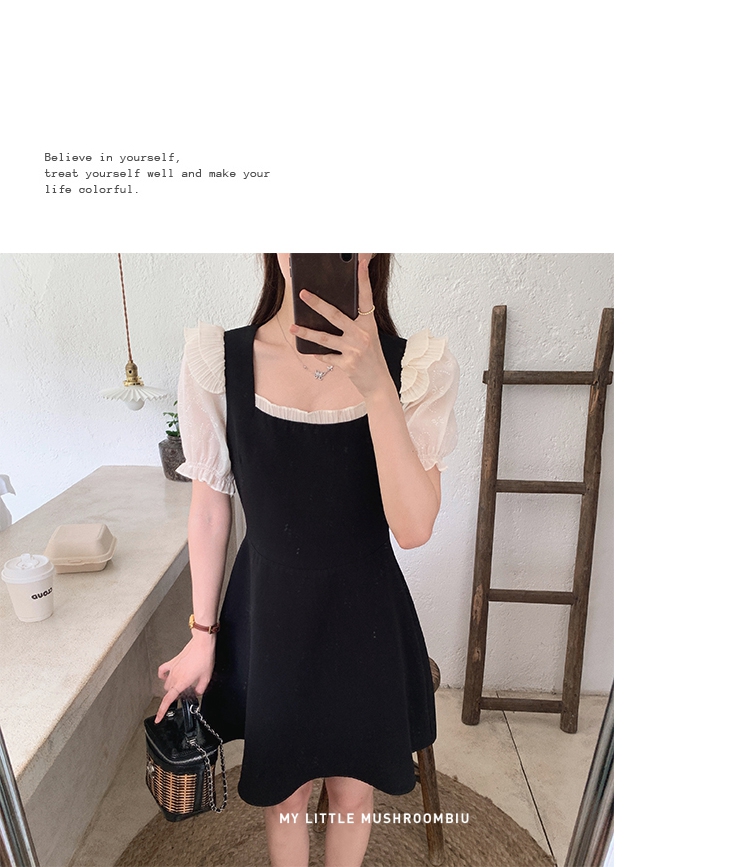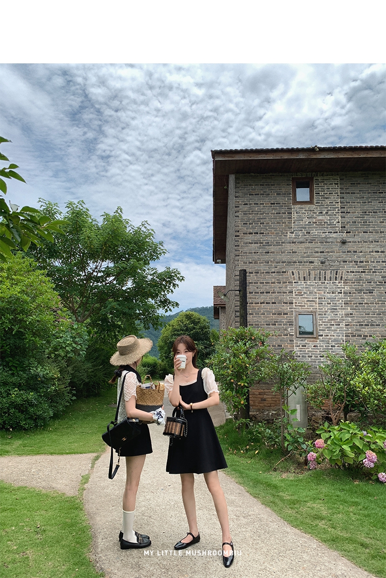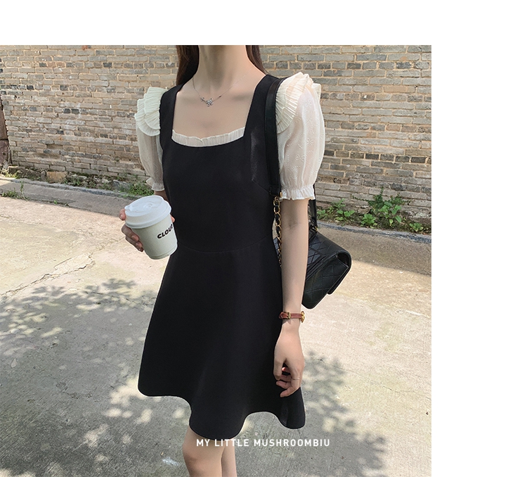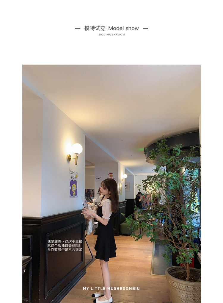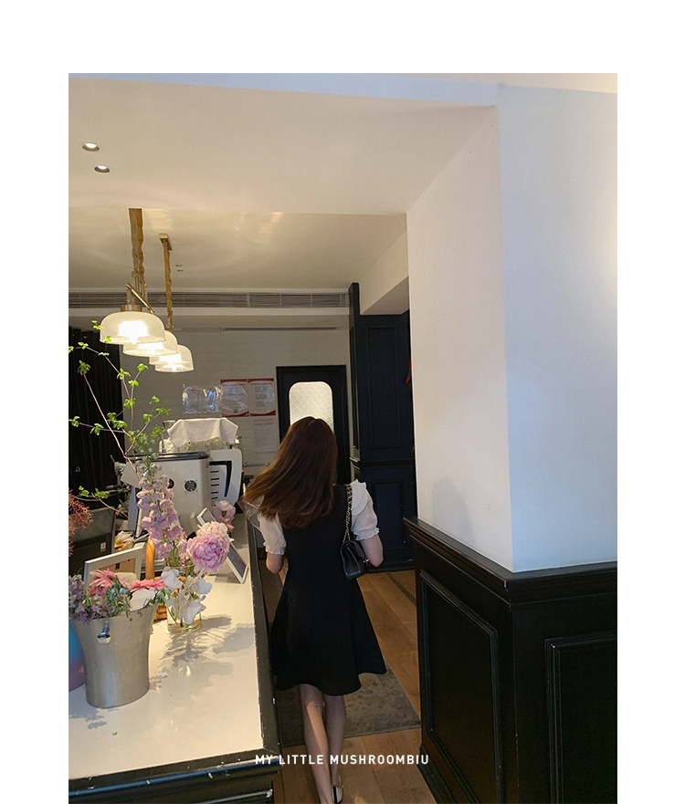 XS/M码金蘑菇菇【le serein少女心小黑裙】少女感泡泡袖拼接收腰连衣裙