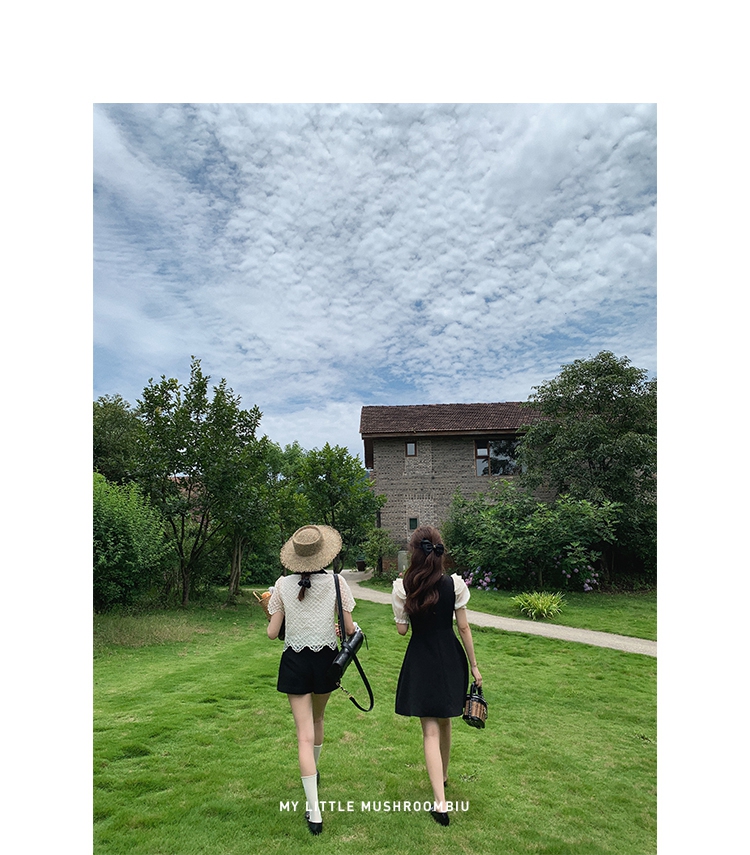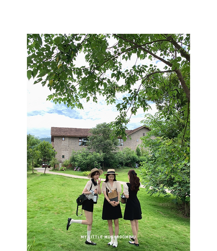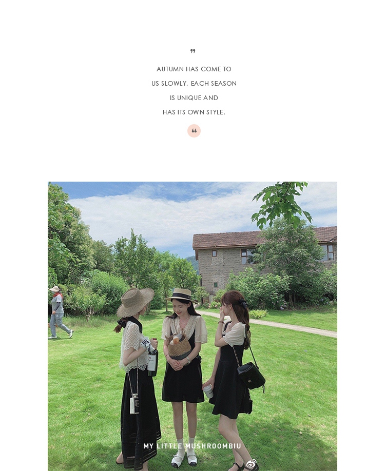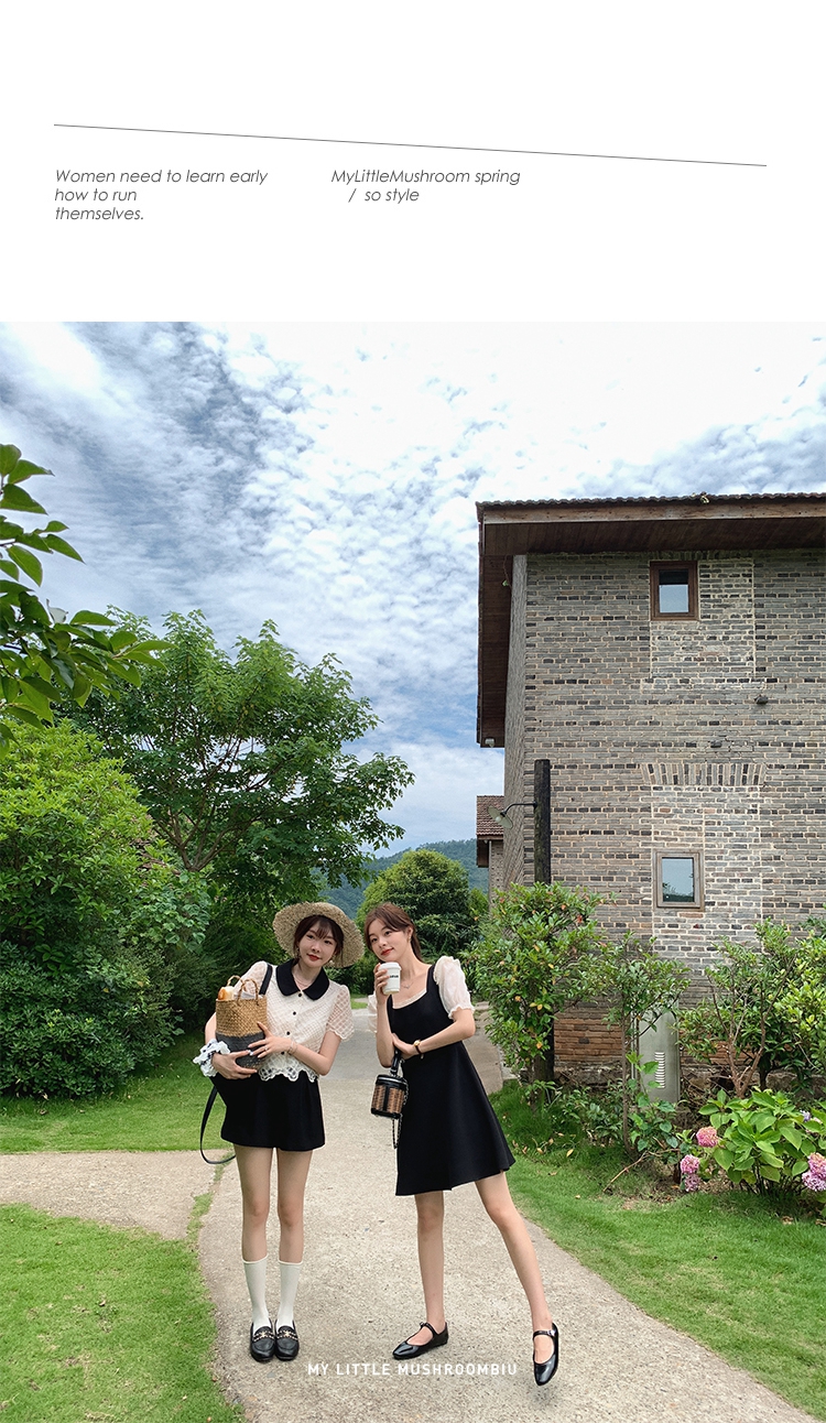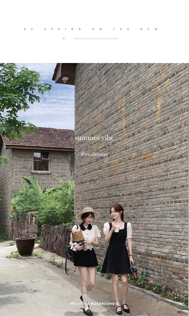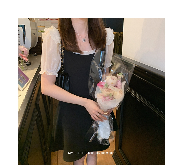 XS/M码金蘑菇菇【le serein少女心小黑裙】少女感泡泡袖拼接收腰连衣裙