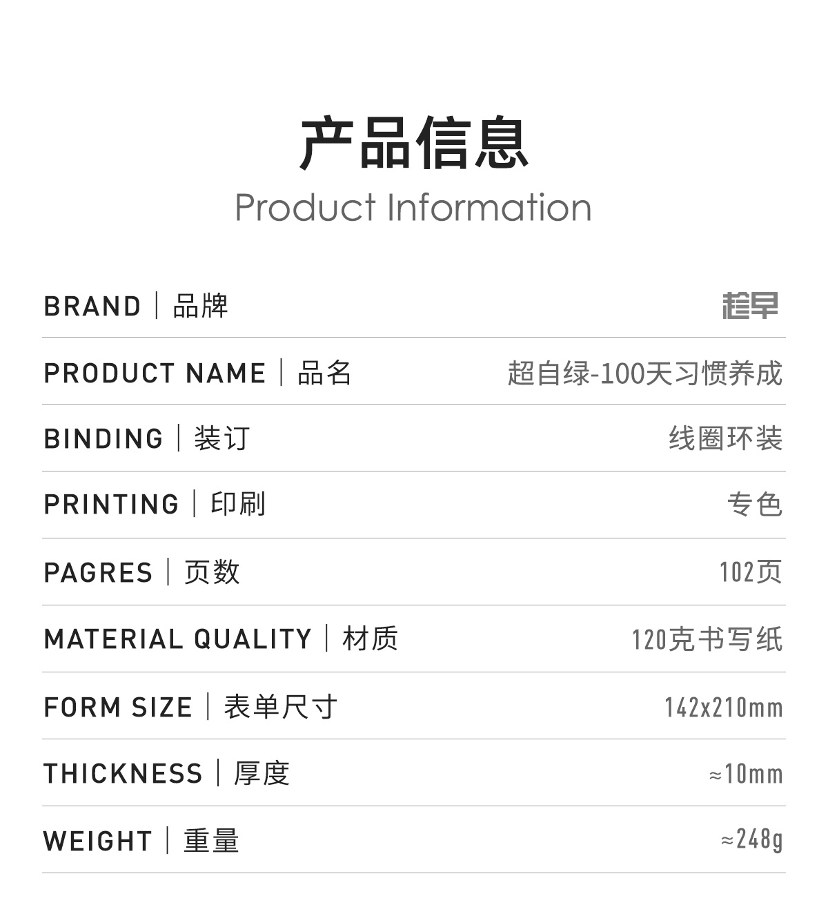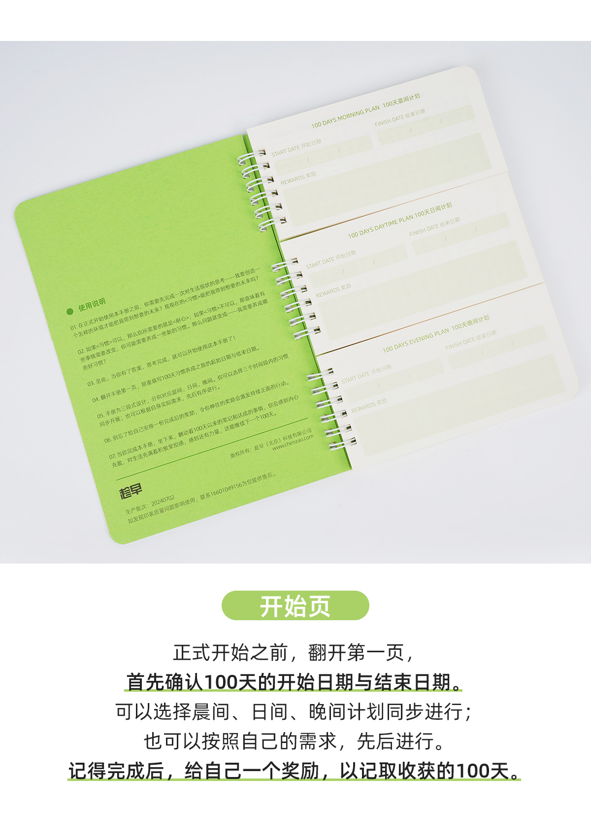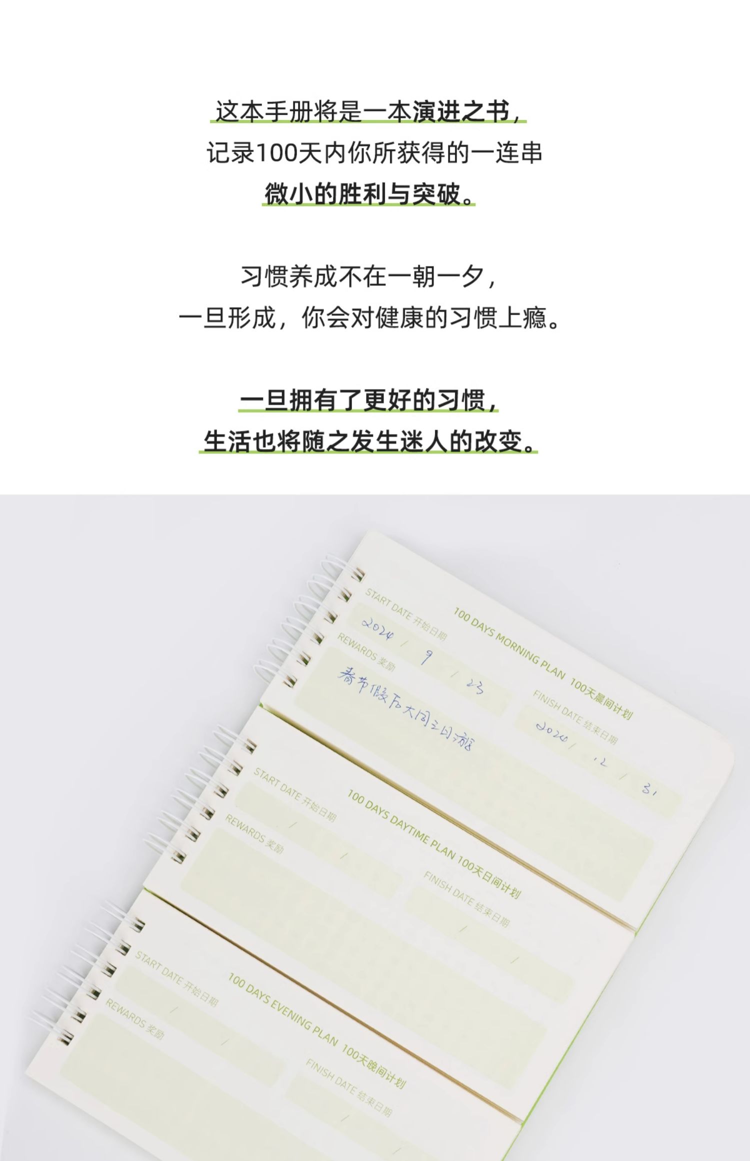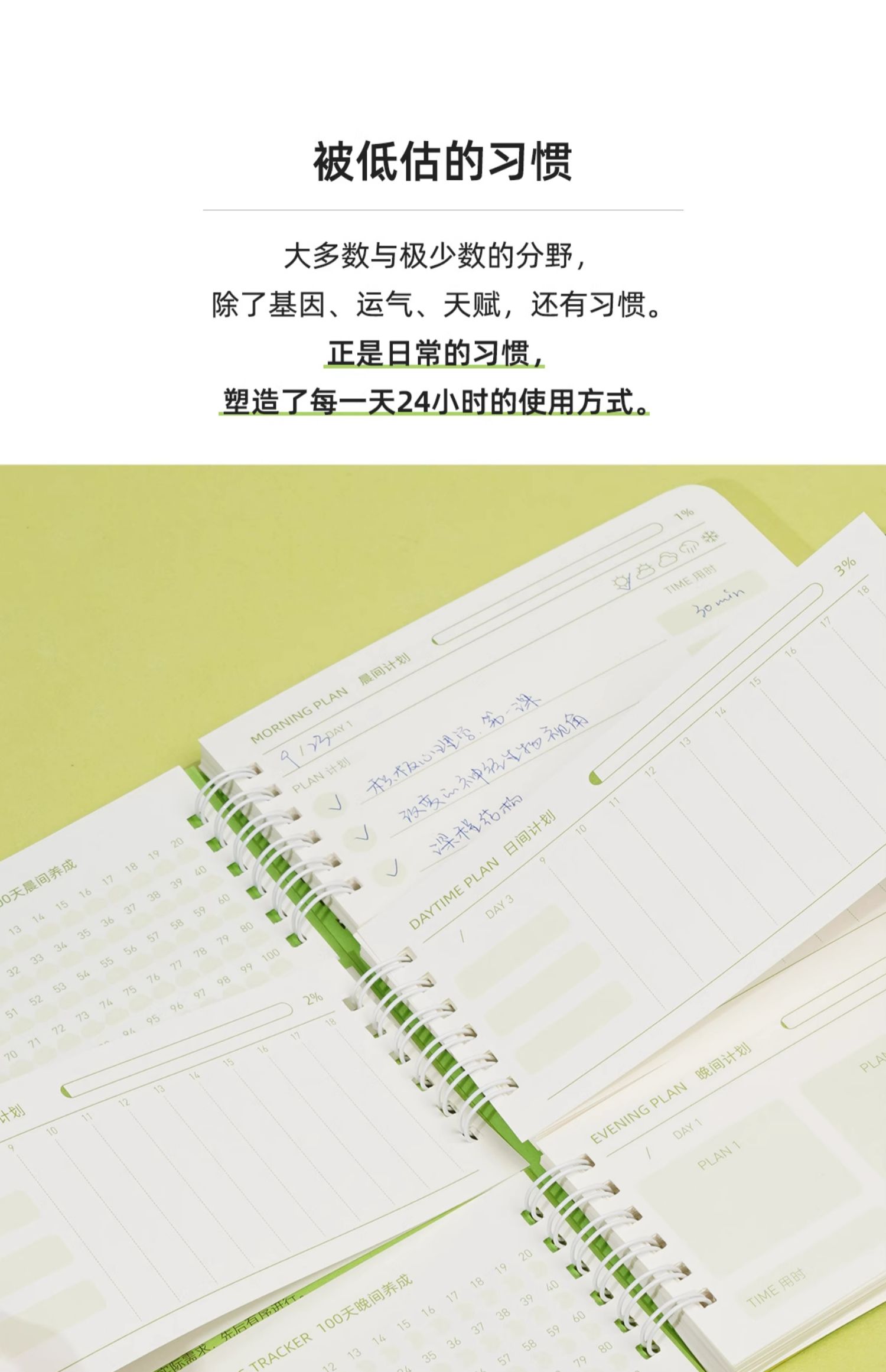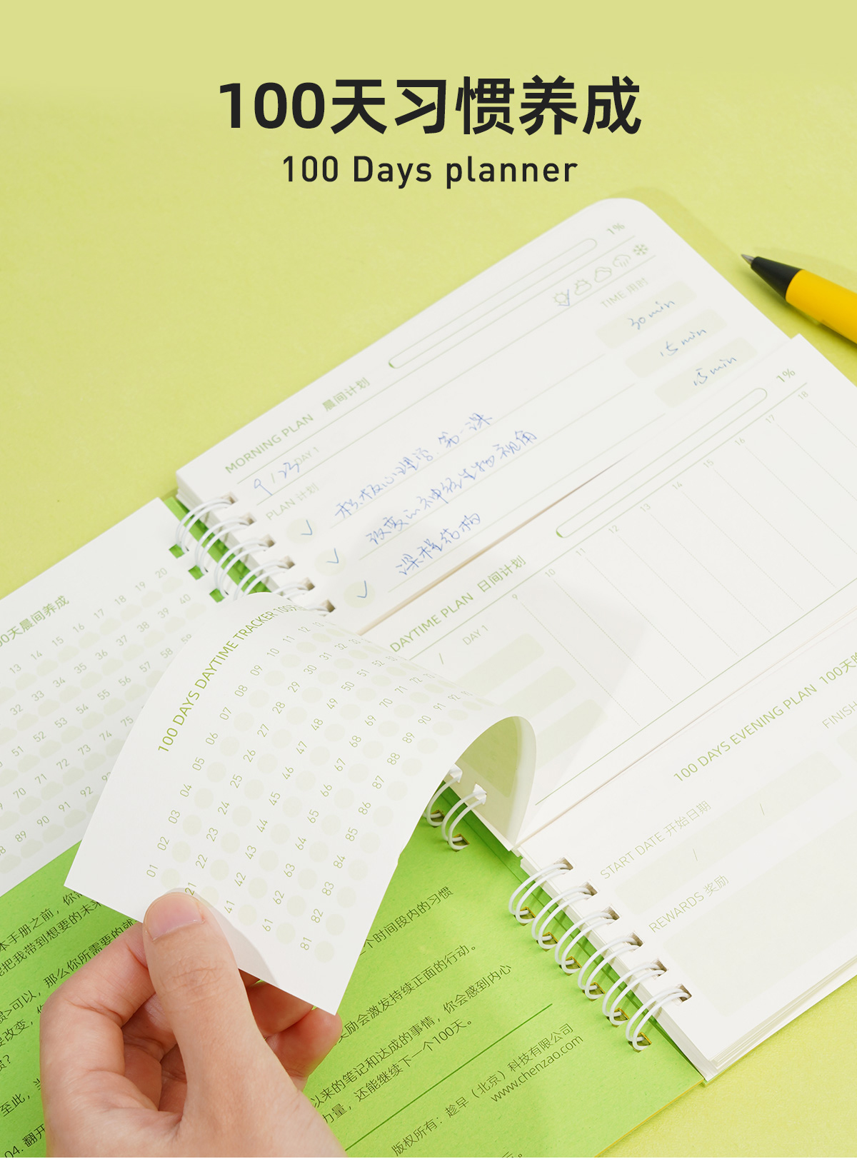 【趁早文创】趁早超自绿系列100天习惯养成手册早中晚每日自律打卡计划本计划表日程笔记本