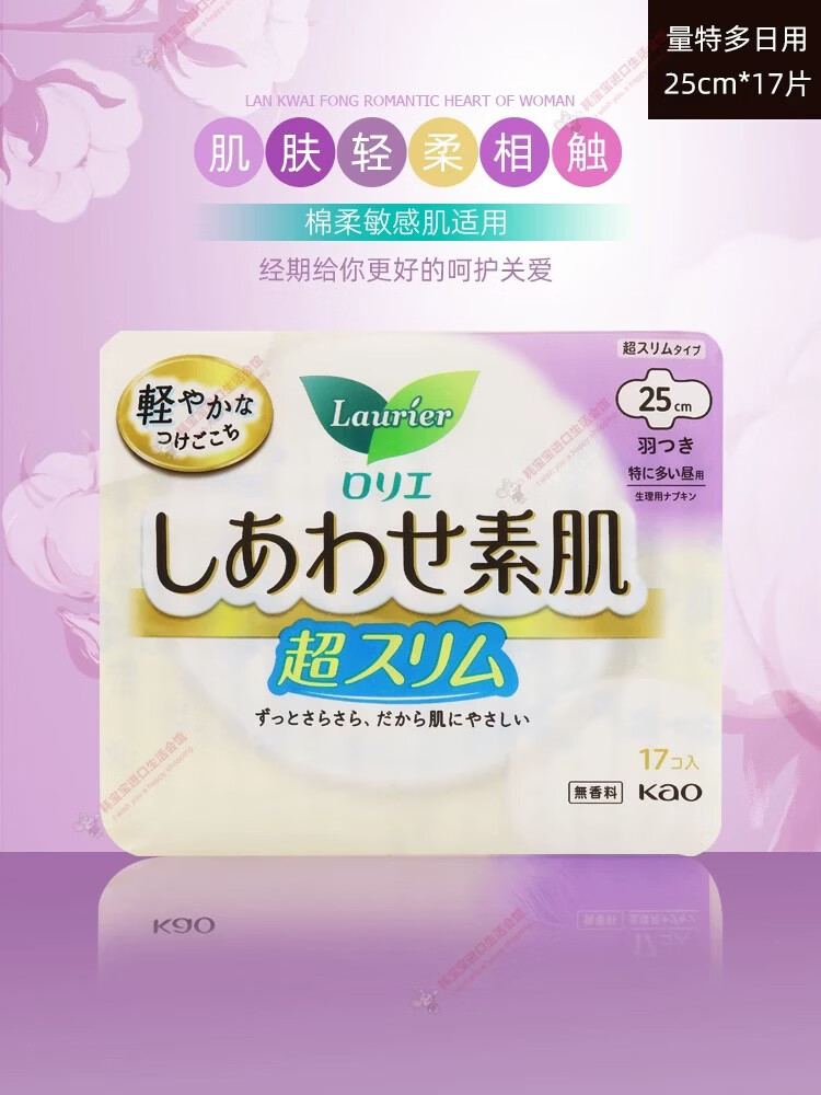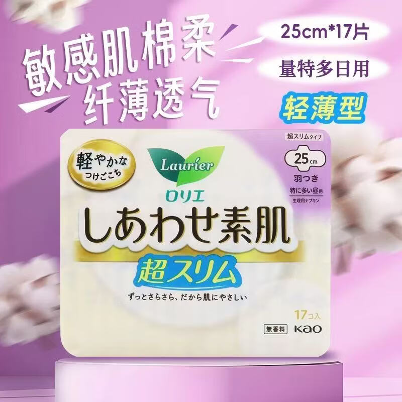 乐而雅F透气棉柔超丝薄特长25cm 日用卫生巾 17片/包