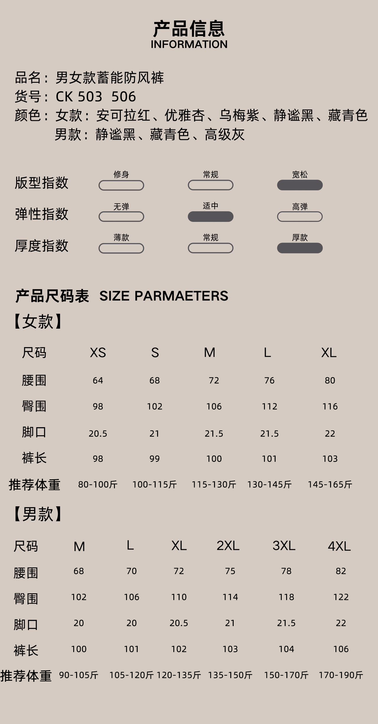 【防风奶奶裤】男女同款580g防风蓄热裤 专遮大弯腿