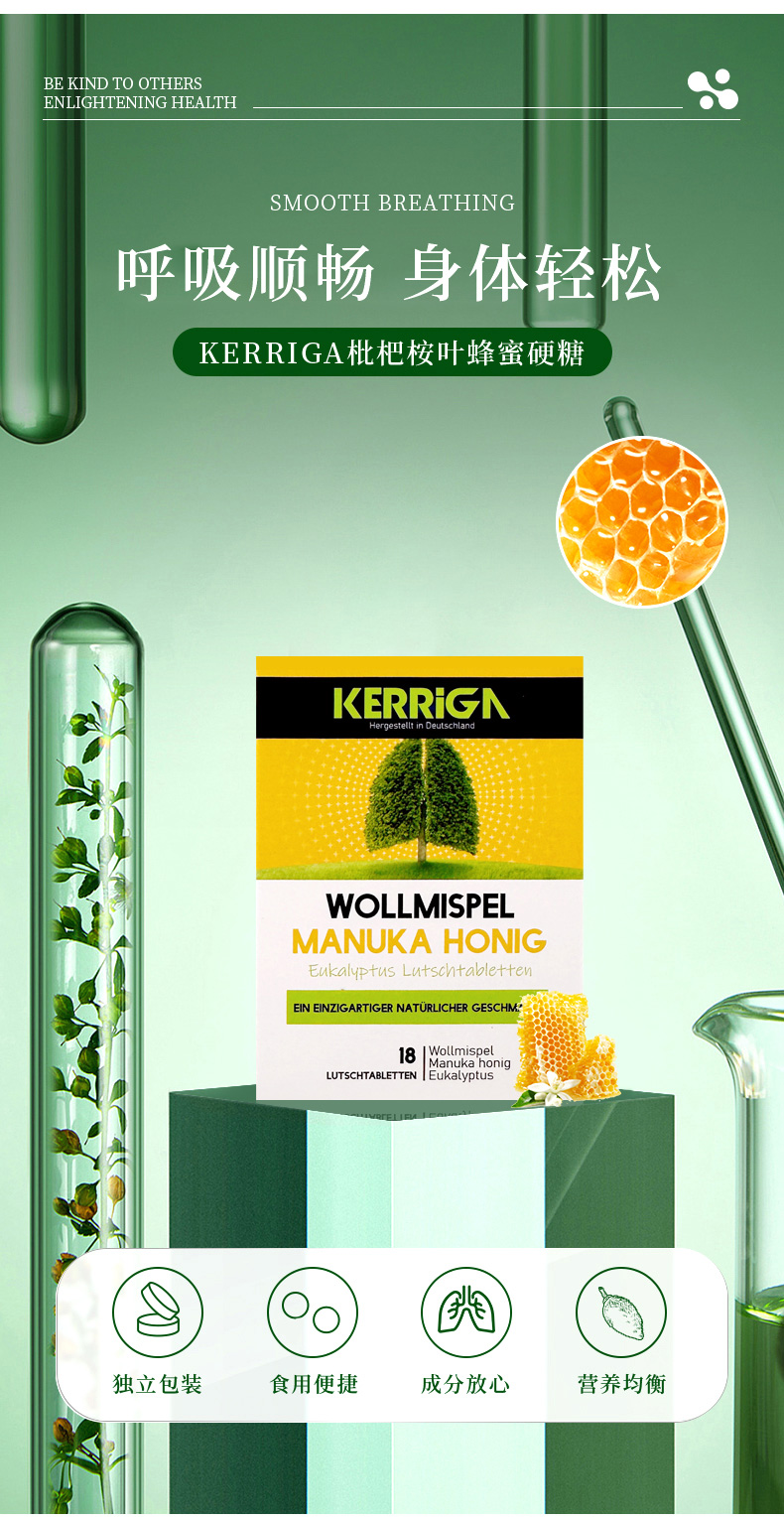 换季必备!!【德国KERRIGA枇杷桉叶蜂蜜硬糖】 缓解咽喉不适,多种植物成分,独立包装
