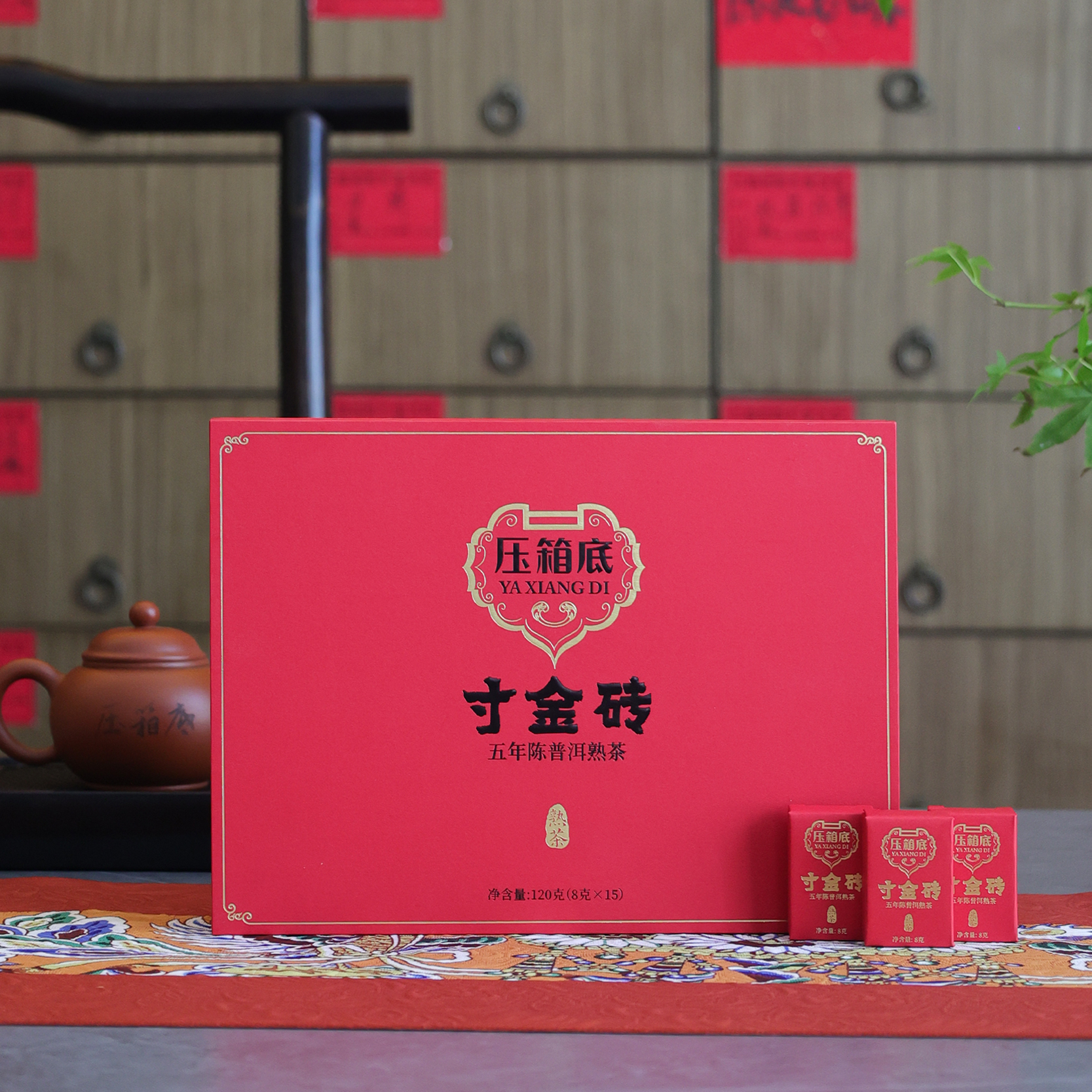 压箱底 寸金砖 小棋盘 5年陈普洱熟茶 小方砖 礼盒 15颗/120克/盒