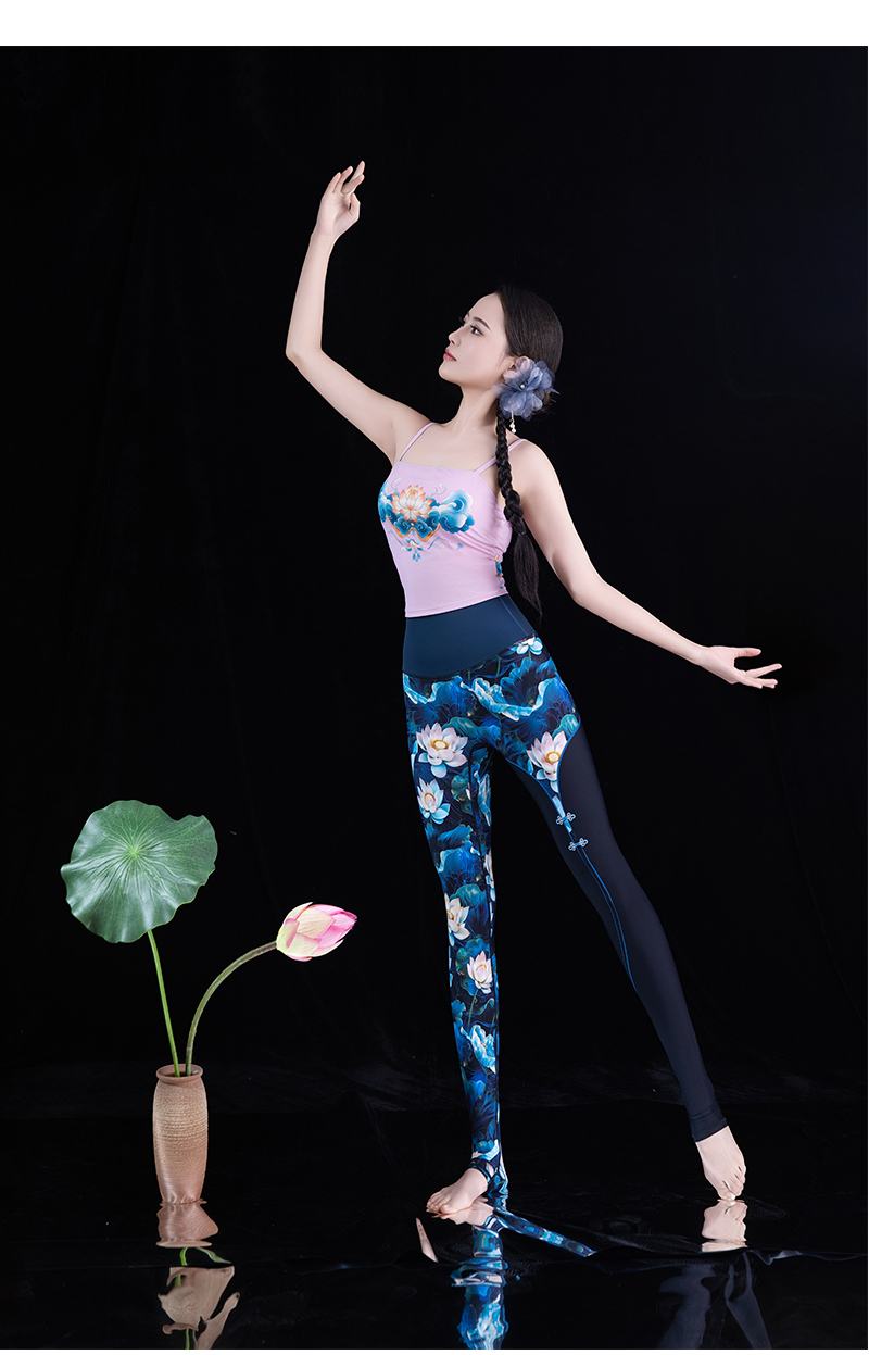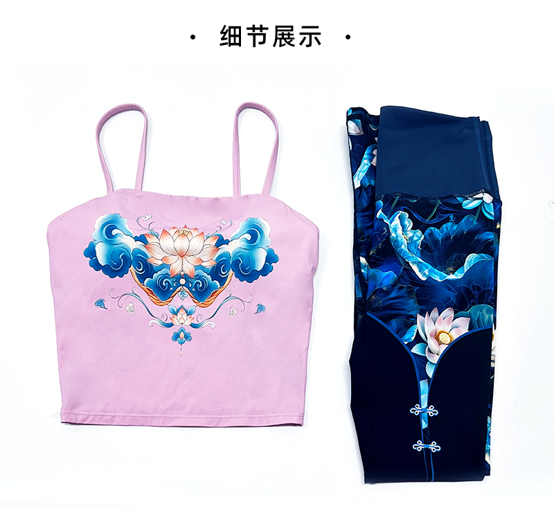 【现货秒发】壁虎瑜伽【墨韵莲心-套装】限量款印花瑜伽两件套【可拆卸胸垫】(标准码)
