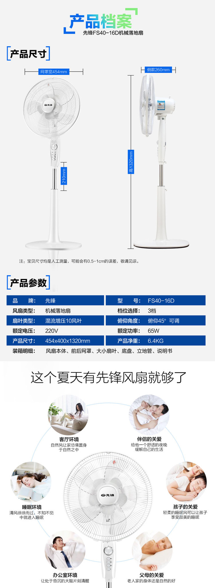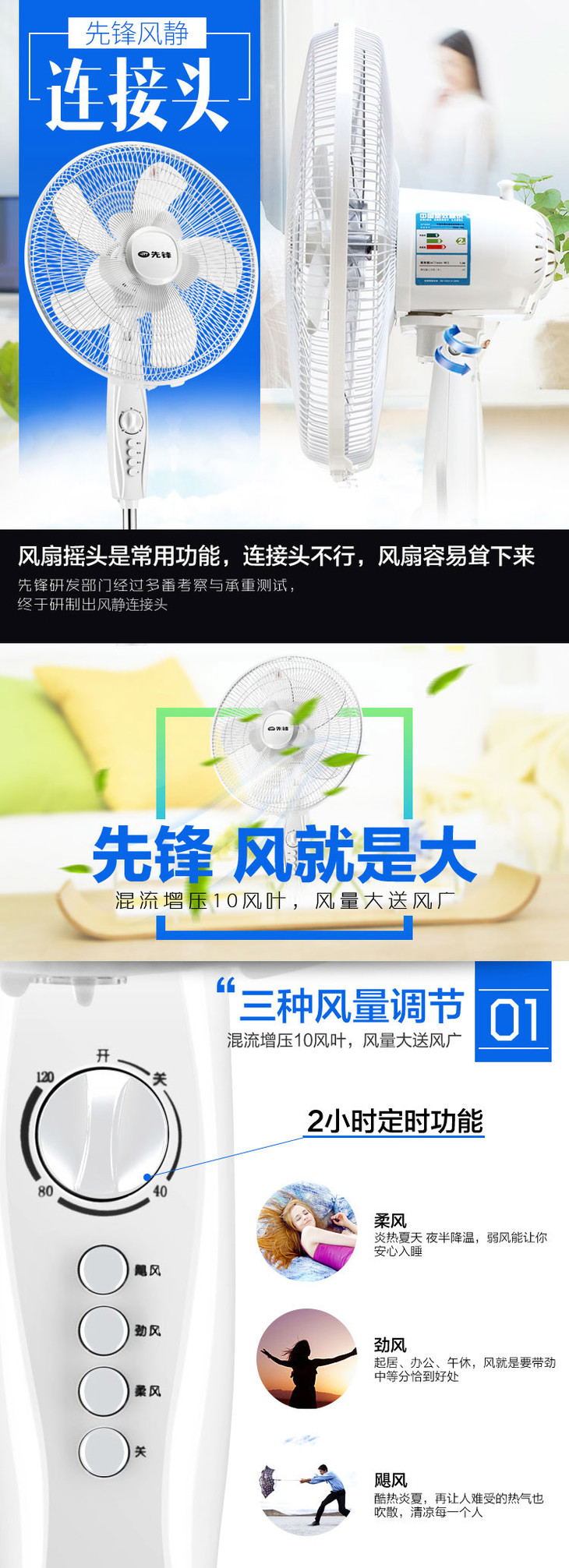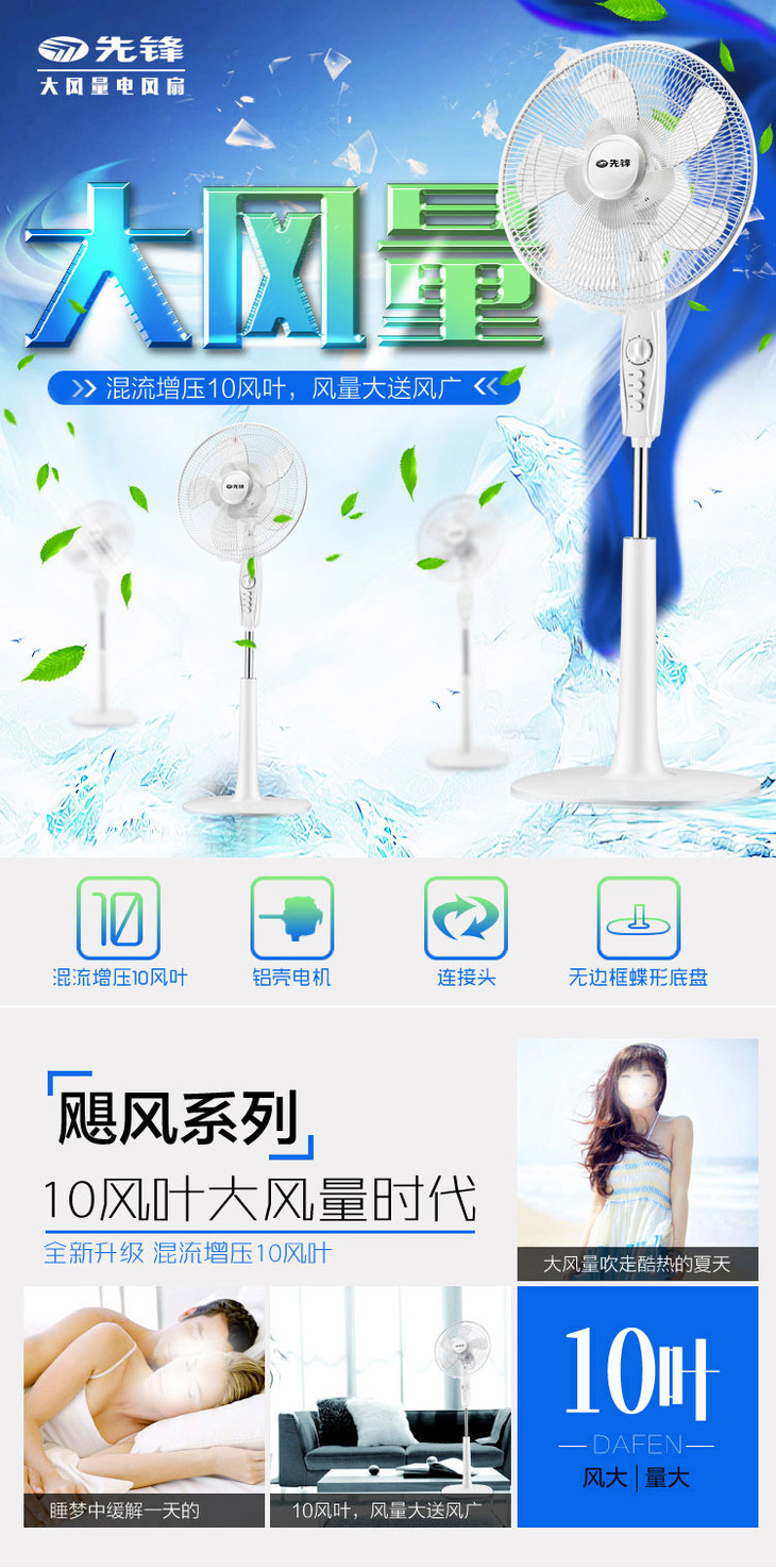 先锋(Singfun)大风量电风扇/落地扇10叶飓风系列DD1607