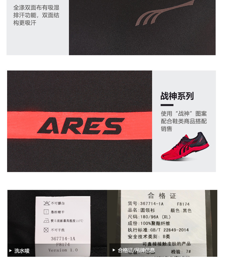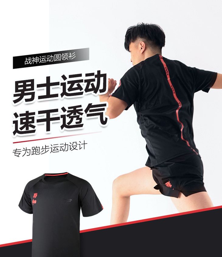 多威战神运动T恤男新款圆领休闲速干透气短袖367714-1A