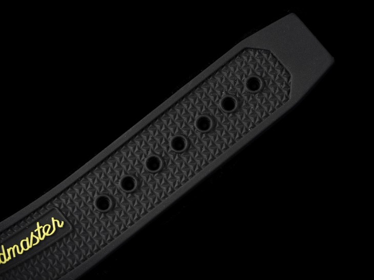 【表带】橡胶表带从胚料开始即遵循了严格的标准,每一个细节都经反复打磨均为上品,柔软细腻贴合手腕佩戴舒适,每一寸缝线与每个细节包括编号都与正品一致。