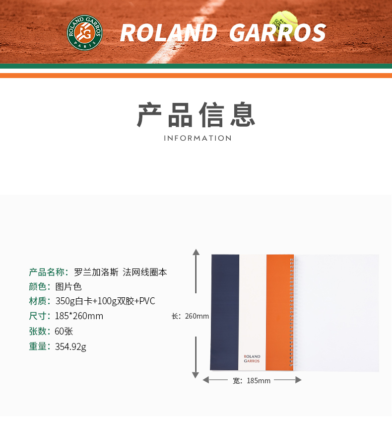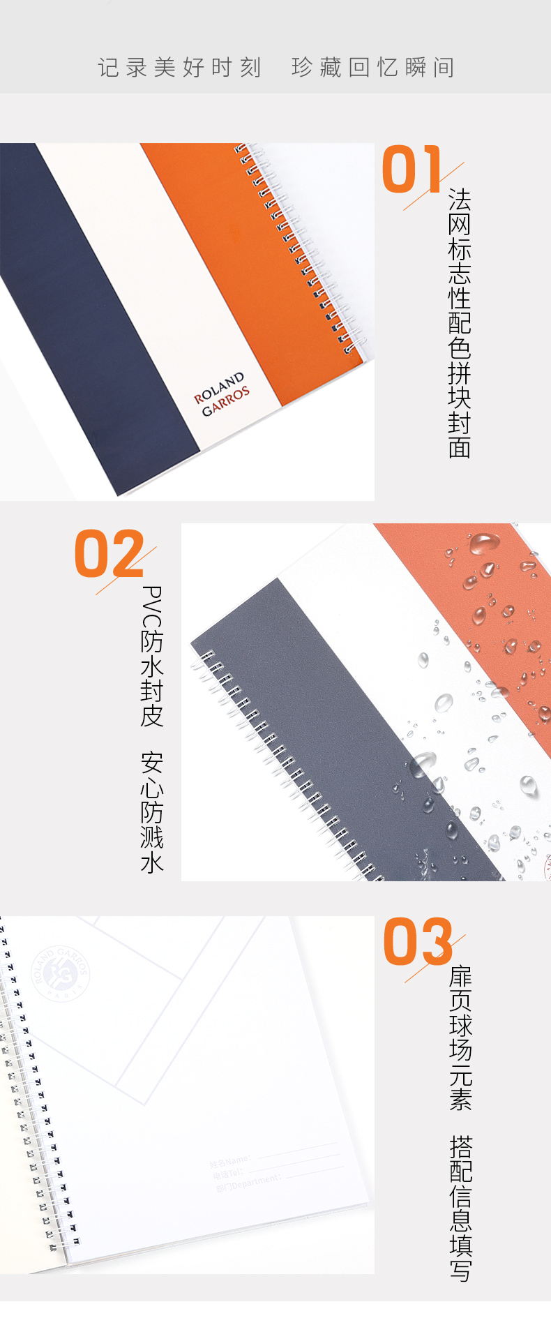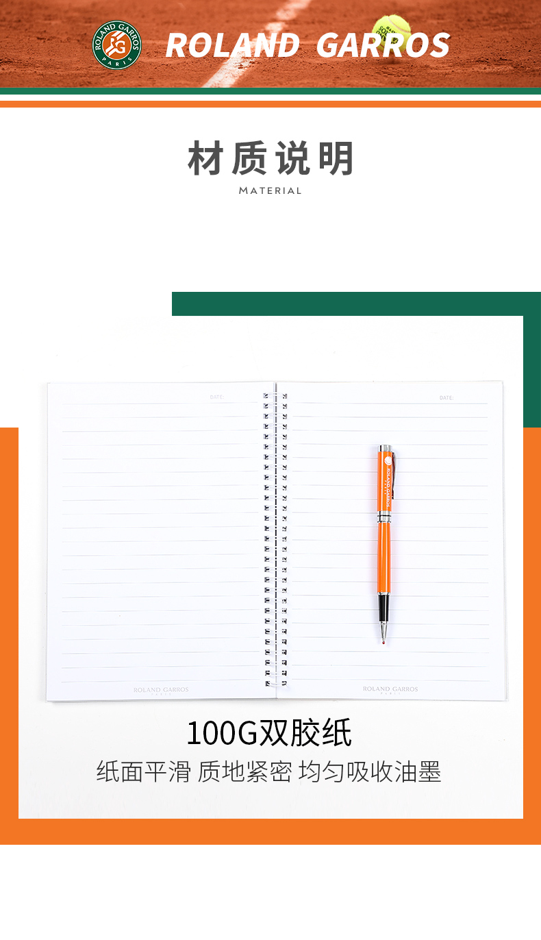 罗兰加洛斯法网官方正品RG笔记本线圈本子文具简约商务日记本