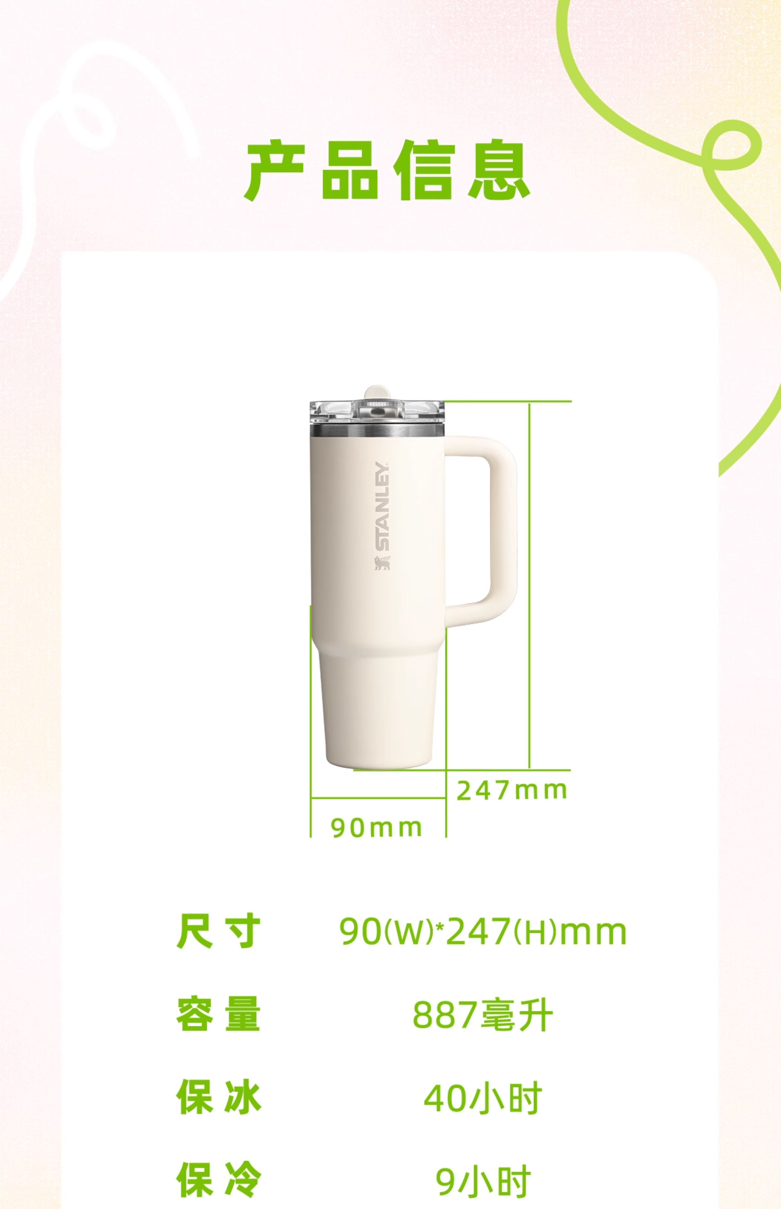 Stanley PROTOUR保温杯 时尚pro大容量海外原版防漏吸管杯冰霸杯不锈钢水杯