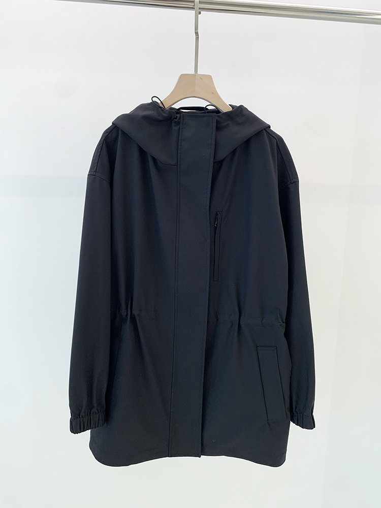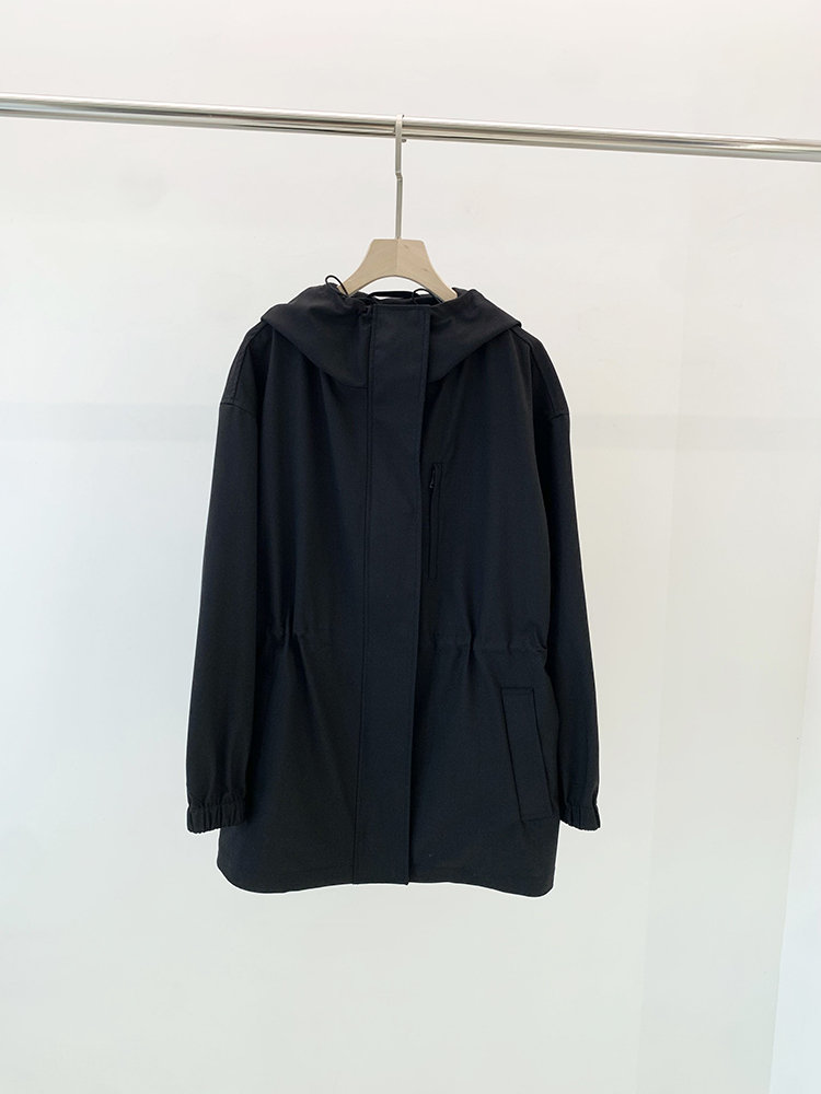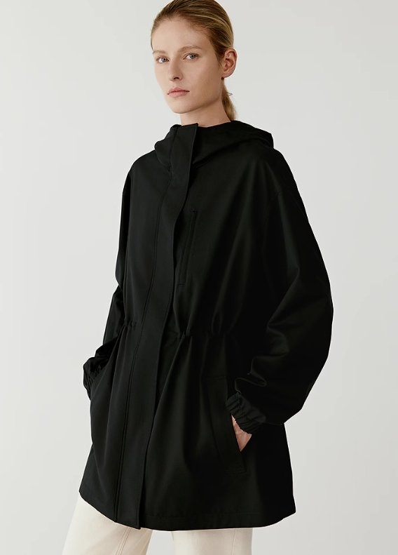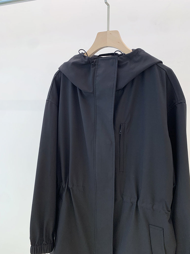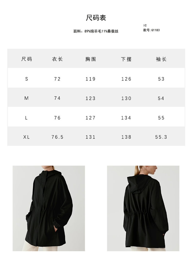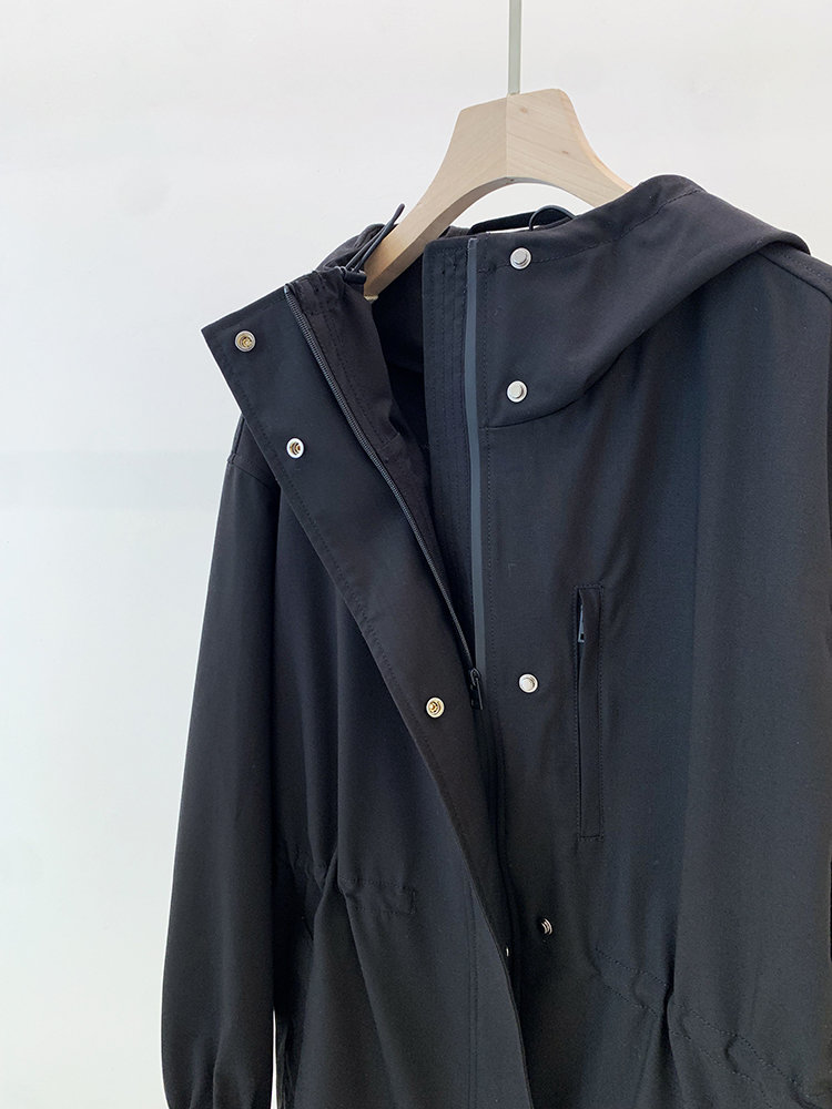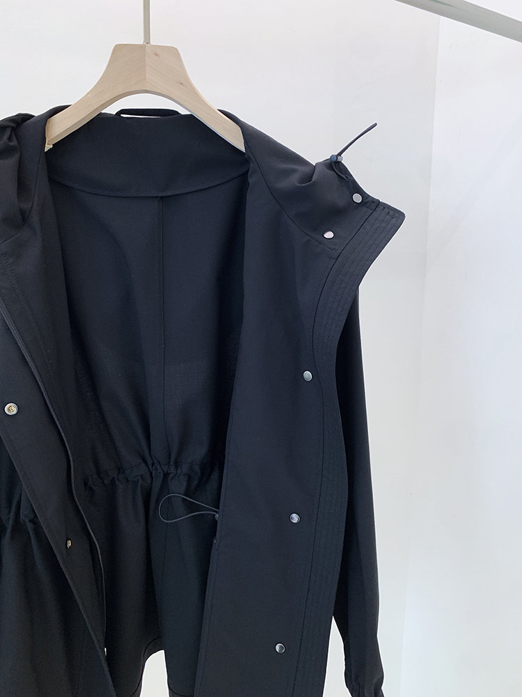 禾家经典风衣-丝羊毛精纺平纹布连帽短风衣