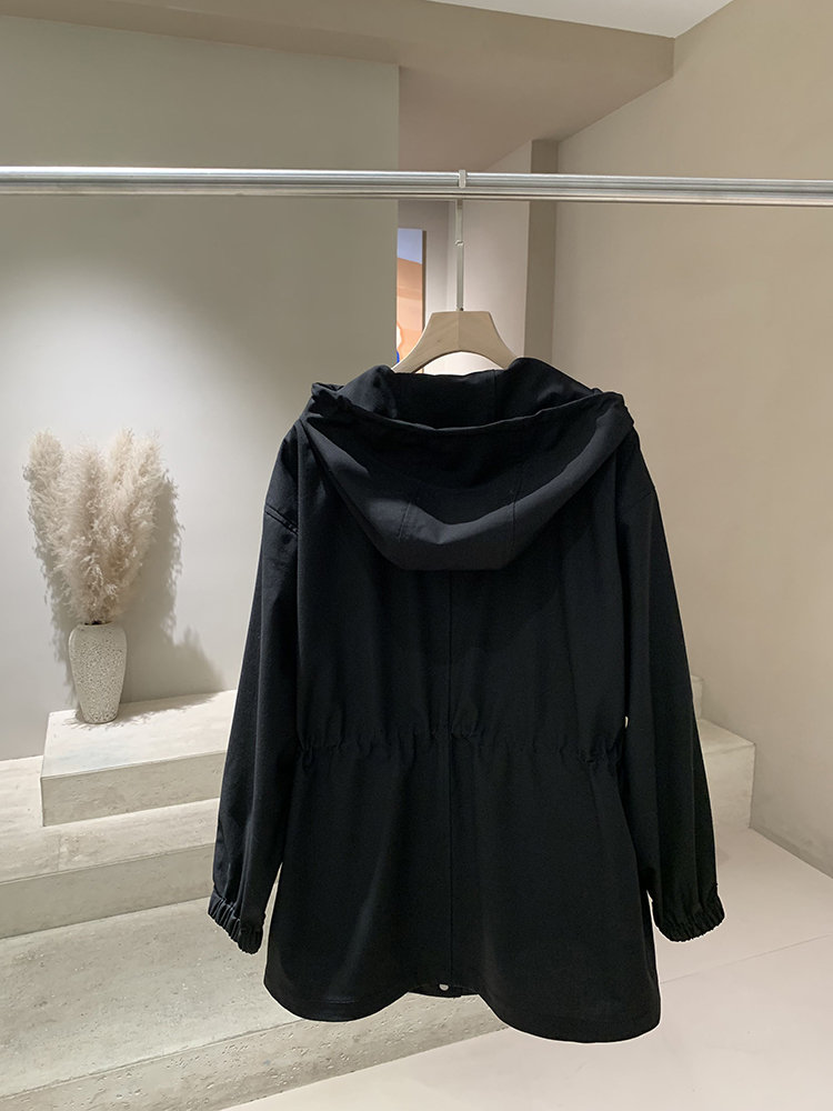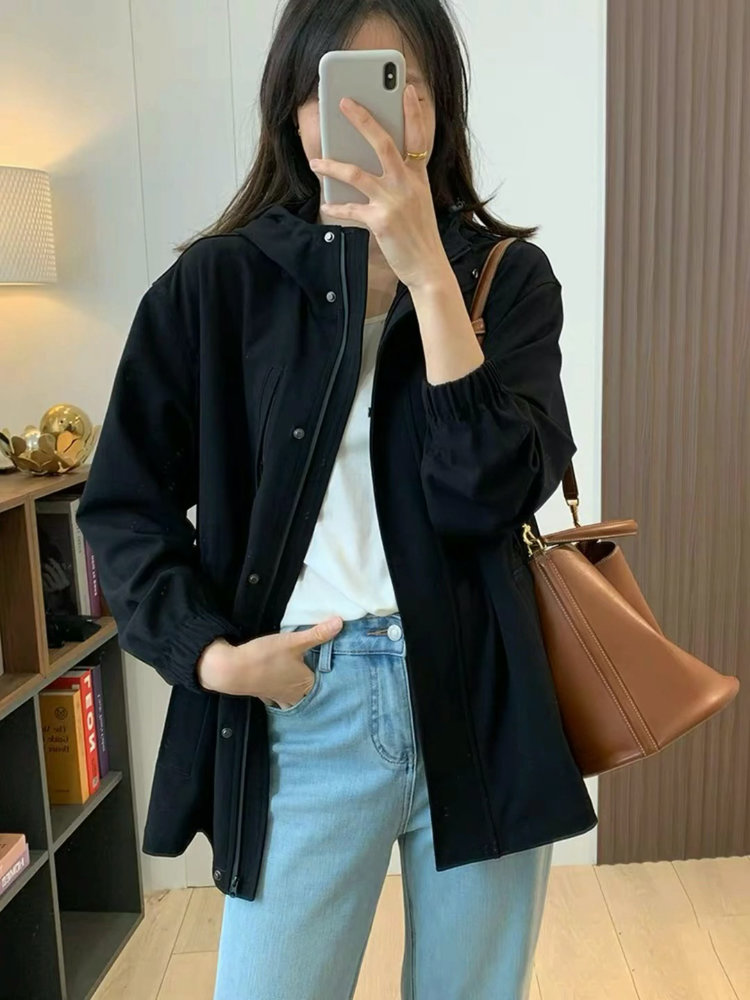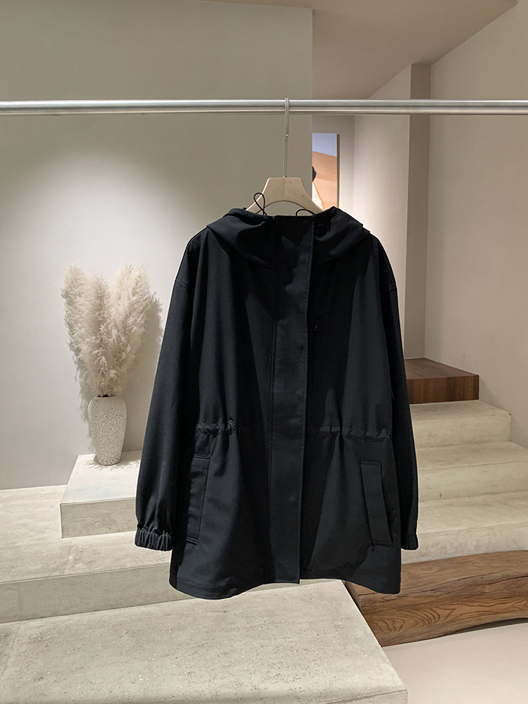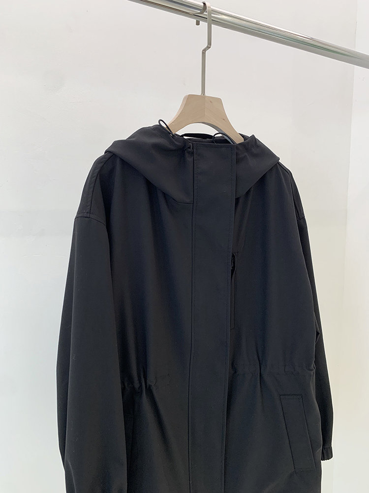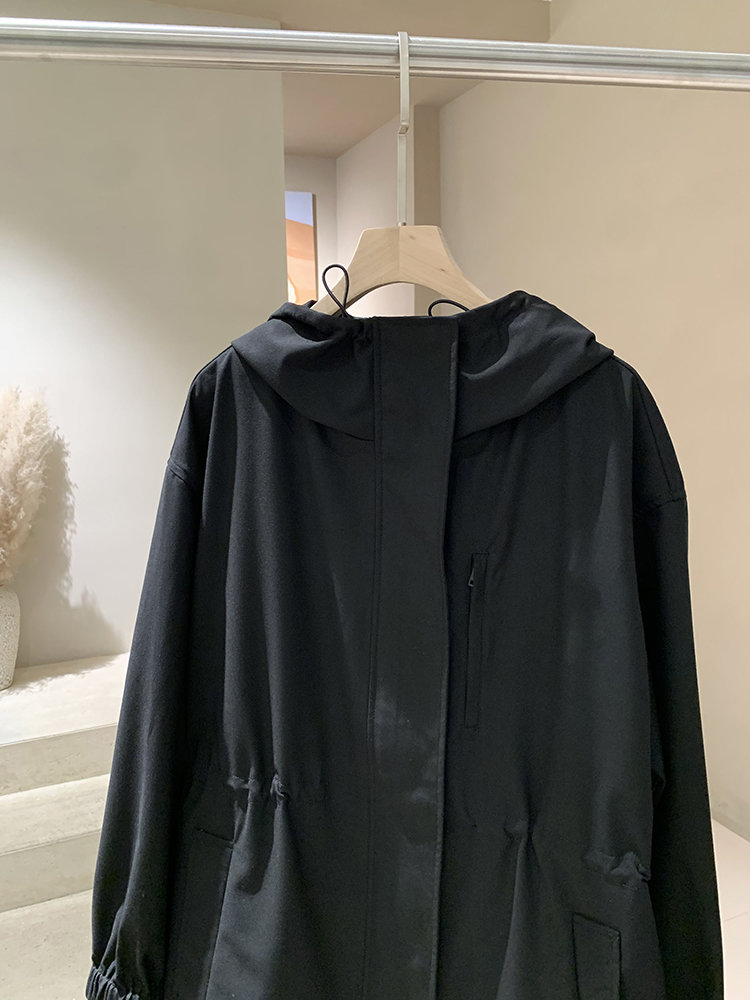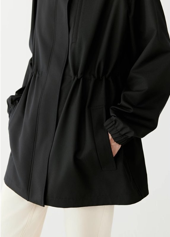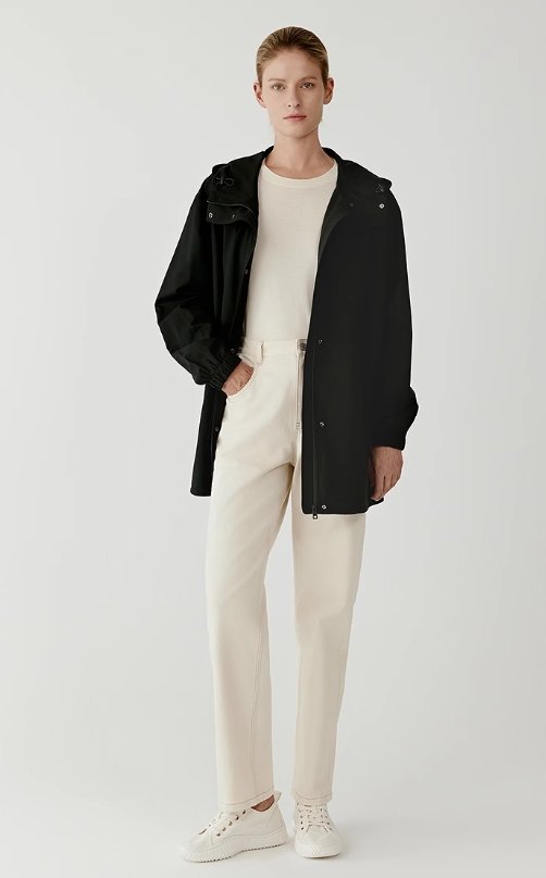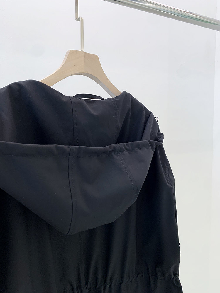禾家经典风衣-丝羊毛精纺平纹布连帽短风衣