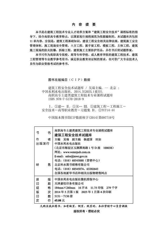 建筑工程安全技术试题库(高职高专土建类建筑工程技术专业课程试题库)
