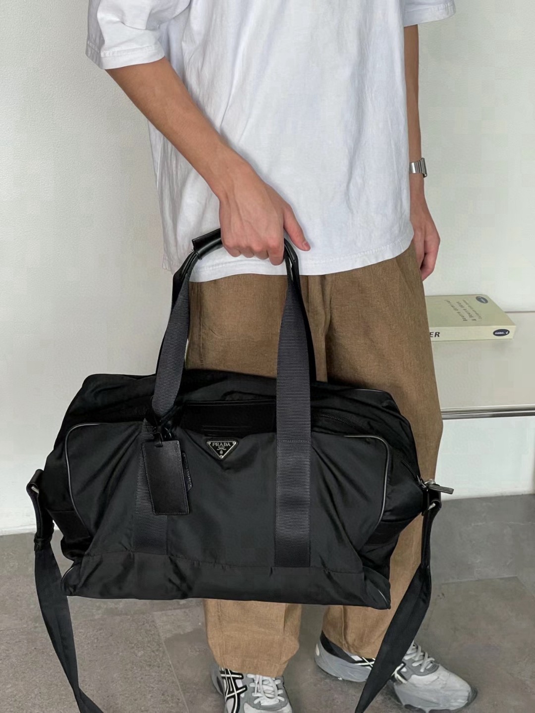 金属三角标 再生尼龙旅行袋/健身包 采用进降落伞材质配原版皮✔️原版银色五金,老师傅做工走线,质量超杠的,肯定物有所值。十分耐用,重量轻、防泼水又耐脏。