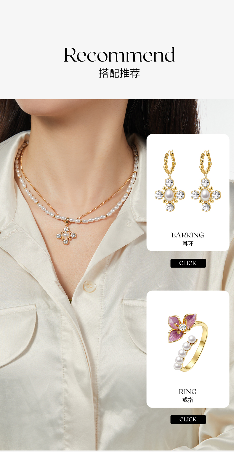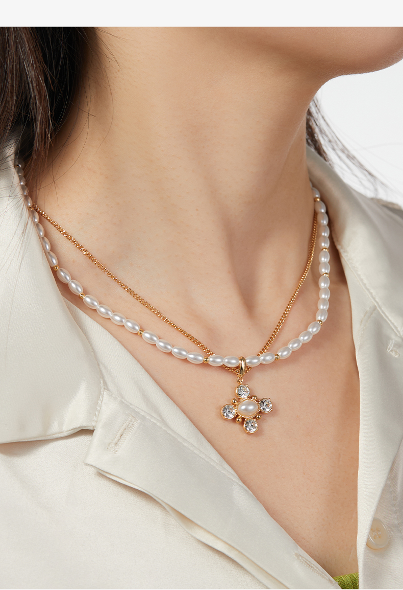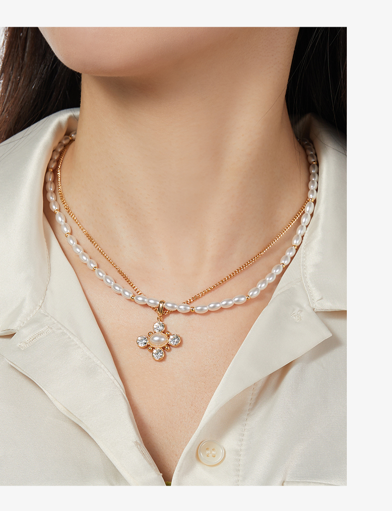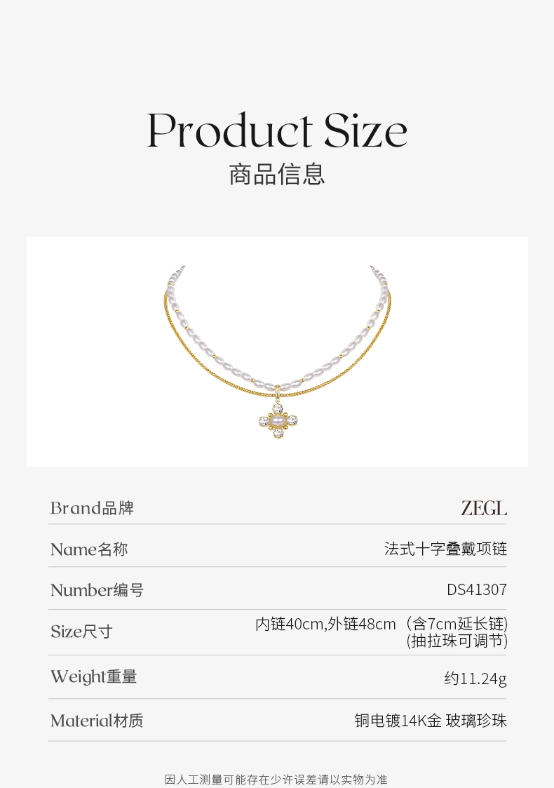 ZEGL设计师法式十字架系列叠戴人造小珍珠项链女款轻奢小众锁骨链