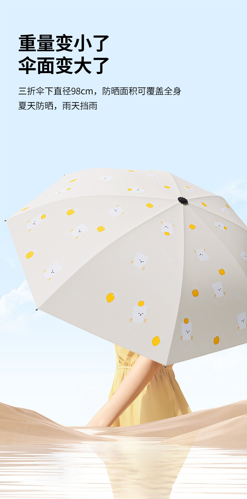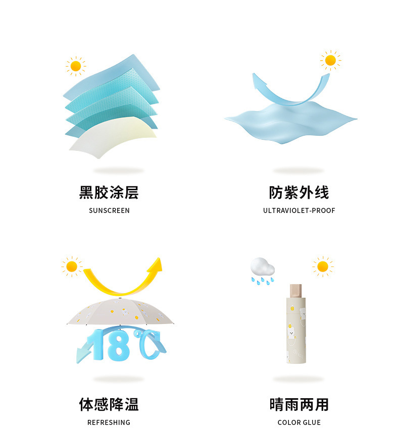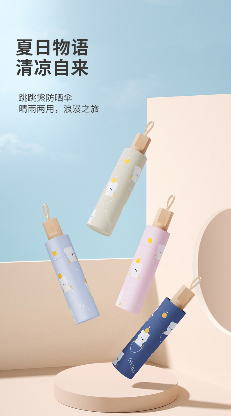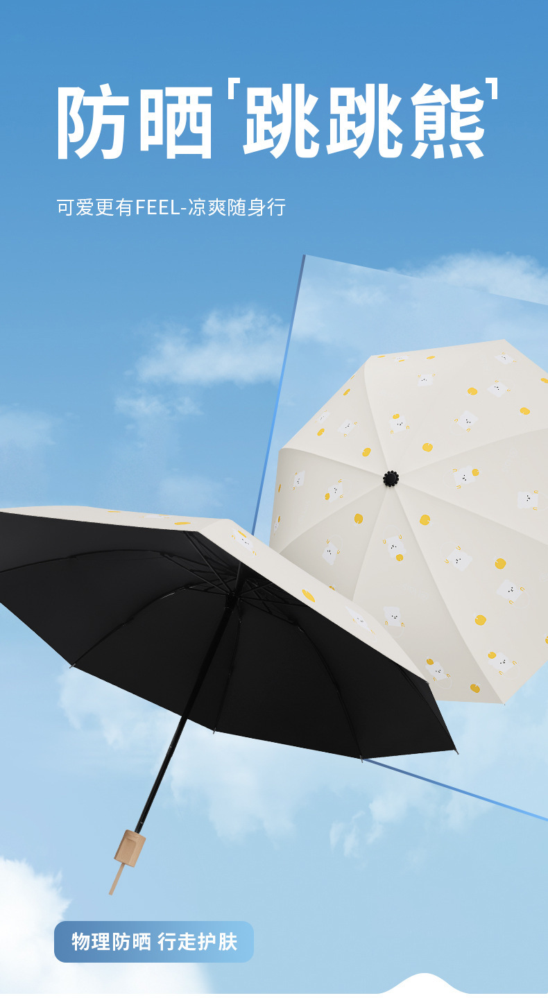 「数款可选!晴雨两用」小熊雨伞黑胶防晒遮阳伞 居家日用卡通晴雨伞两用防紫外线折叠太阳伞