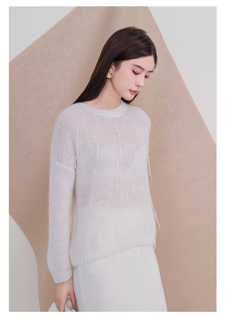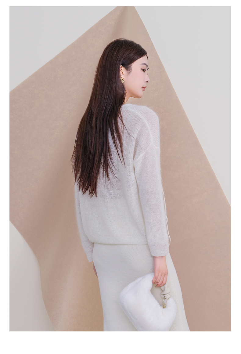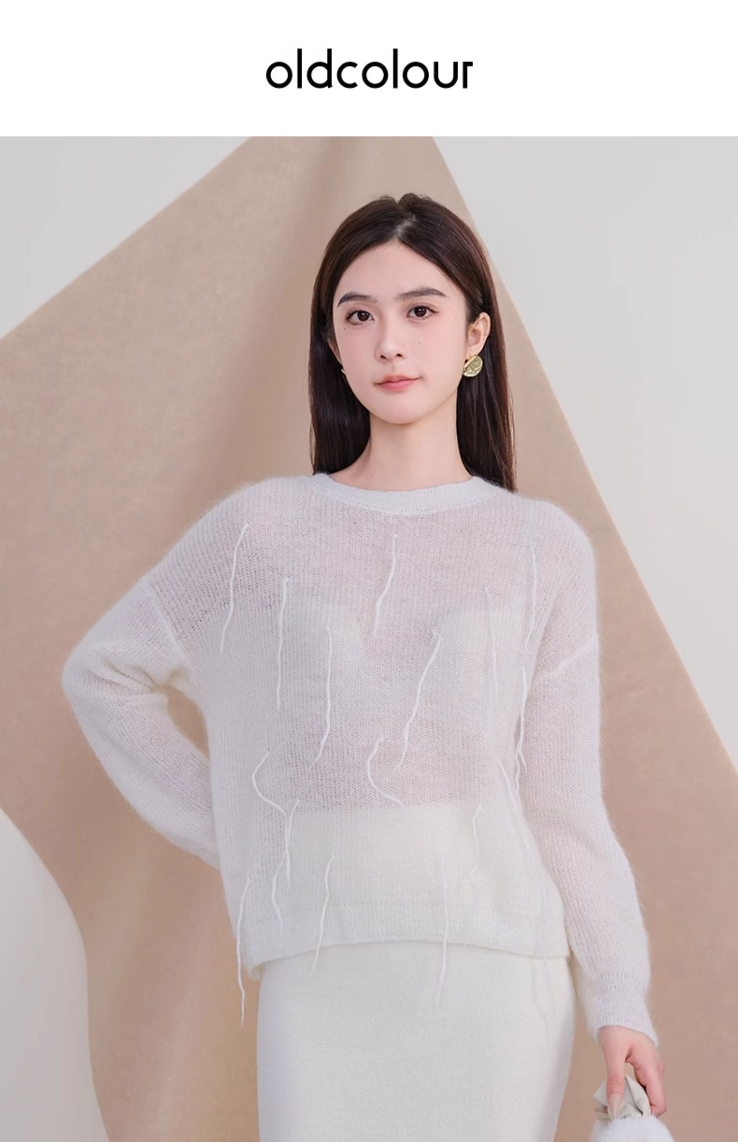 oldcolour欧珂冬新款时尚圆领长袖宽松纯色毛织套头衫女P460503A1
