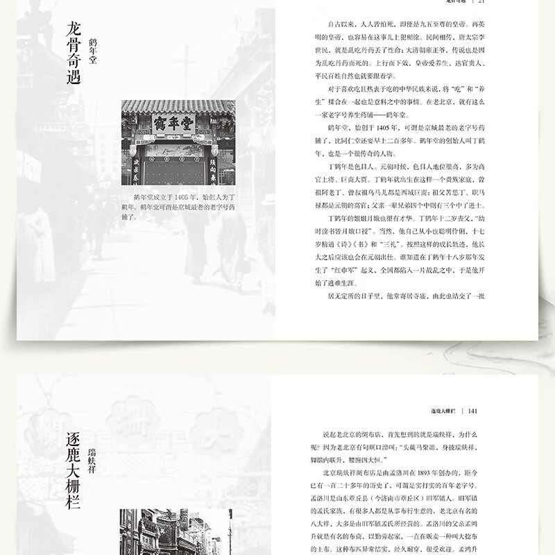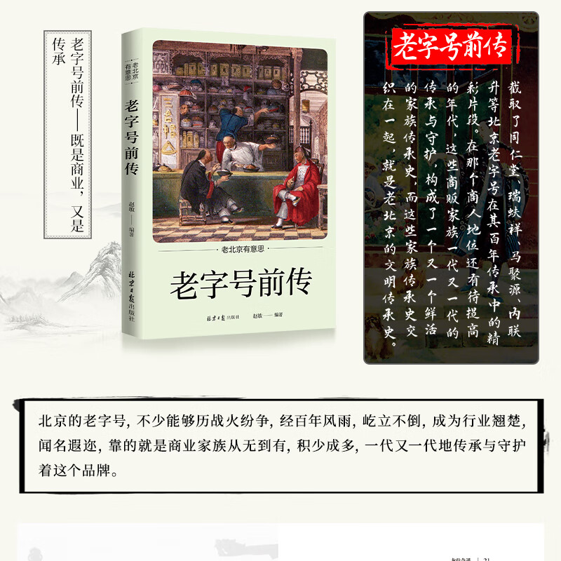 截取了同仁堂、瑞蚨祥、马聚源、内联升等这些北京老字号在其百年乃是数百年的传承中精彩而又蕴意深刻的片段,以讲故事的形式记录下来这些老字号的传承。在那个商人地位还有待提高的年代,这些商贩家族一代又一代的传承与守护,构成了一个有一个鲜活的家族传承史,而这些家族传承史交织在一起,就是老北京的文明传承史。这些老字号是北京的瑰宝,有着浓郁鲜明的北京特色。这些老字号对一些理念的坚持、对一些细节的坚守,已经成为老北京独有的气质。