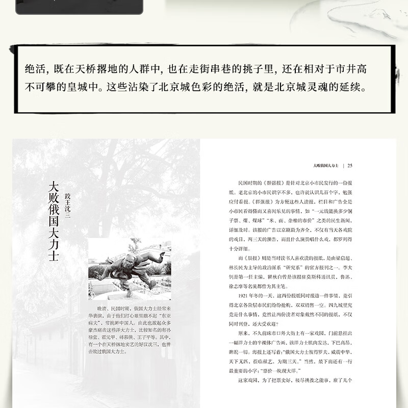 在讲述这些故事的过程中,作者花费了大量笔墨将老北京这块热土上诞生的“京味儿文化”记录了下来,描摹出最具特色的老北京韵味,将北京的历史文化、传统文化、民间文化和谐地融为一体。不仅如此,本书还配有大量珍贵的老照片,以让读者更直观地了解北京文化。